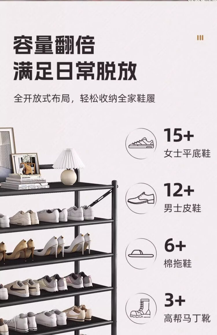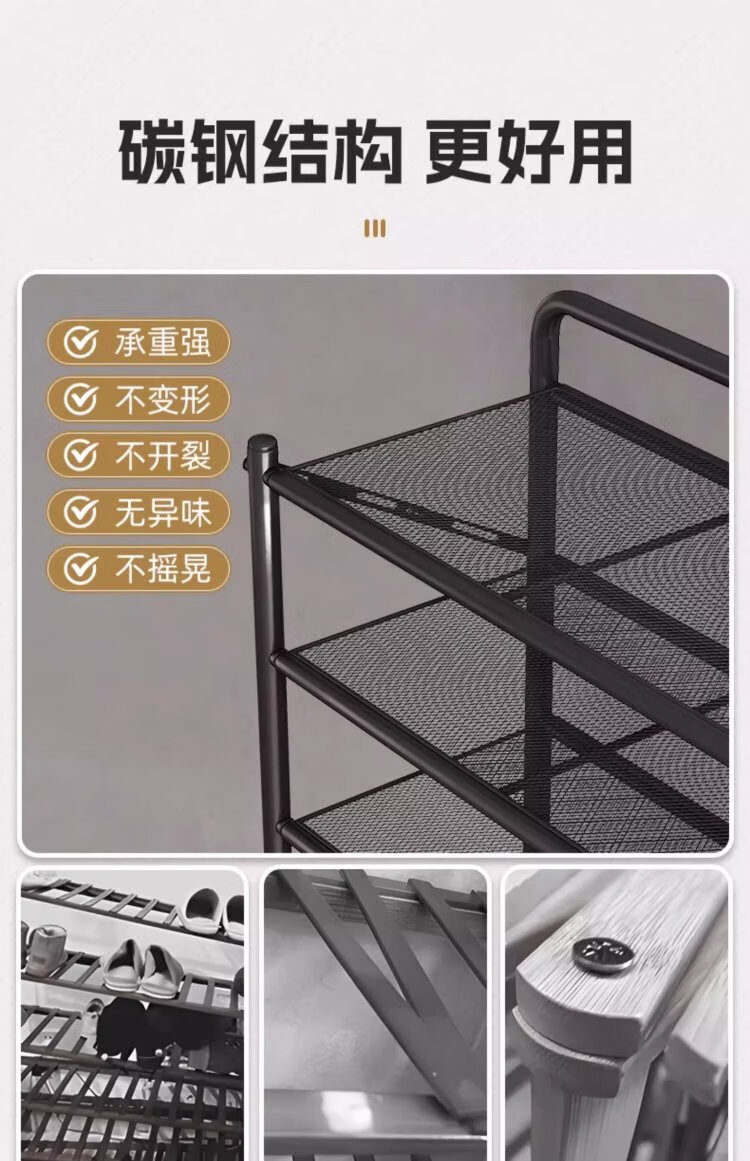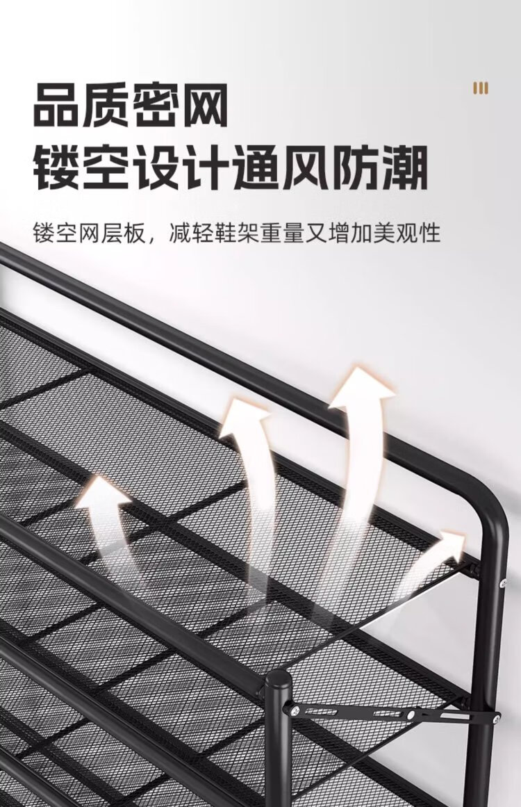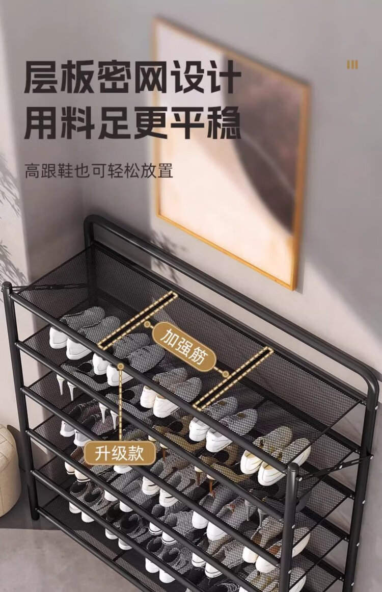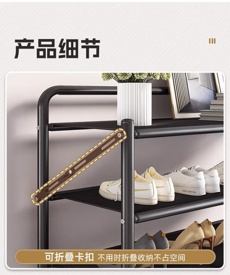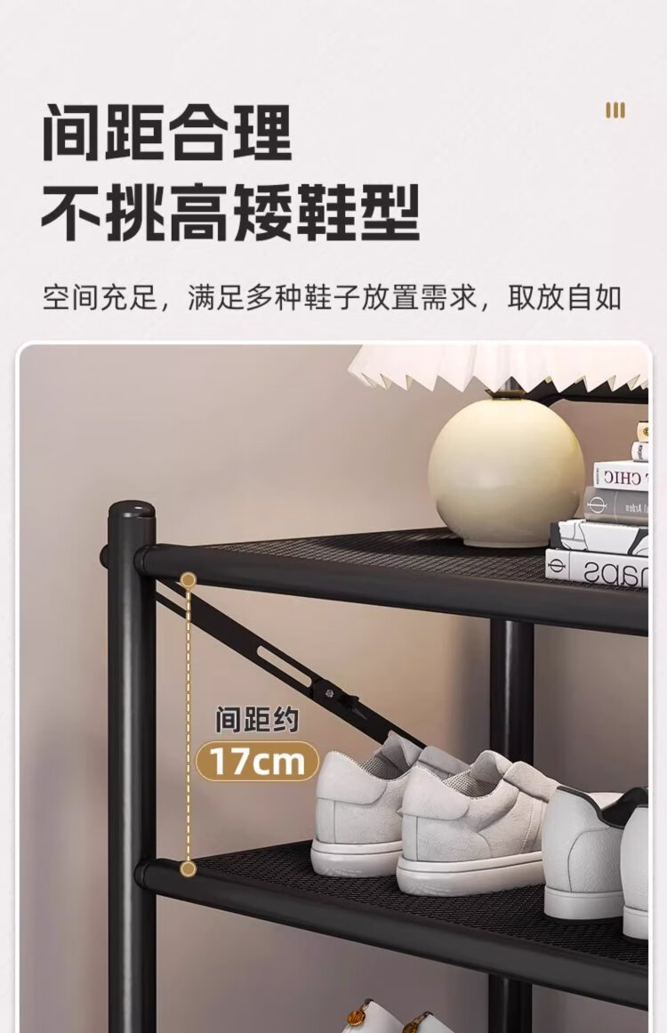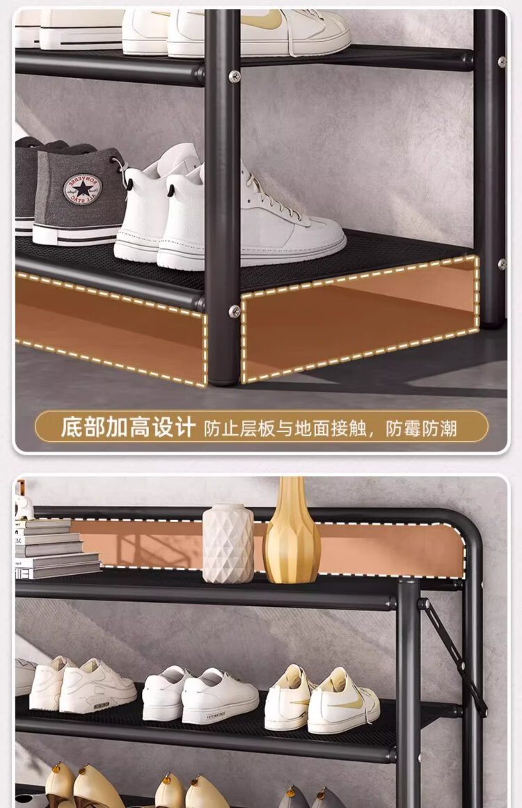 Yimo shoe rack home iron multi-layer installation-free foldable simple shoe cabinet home storage rack black four layers 70