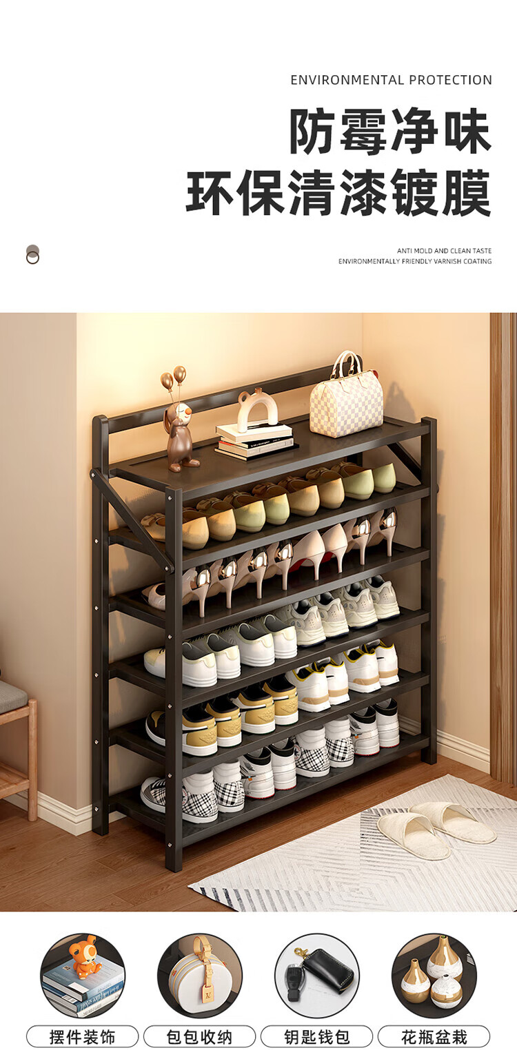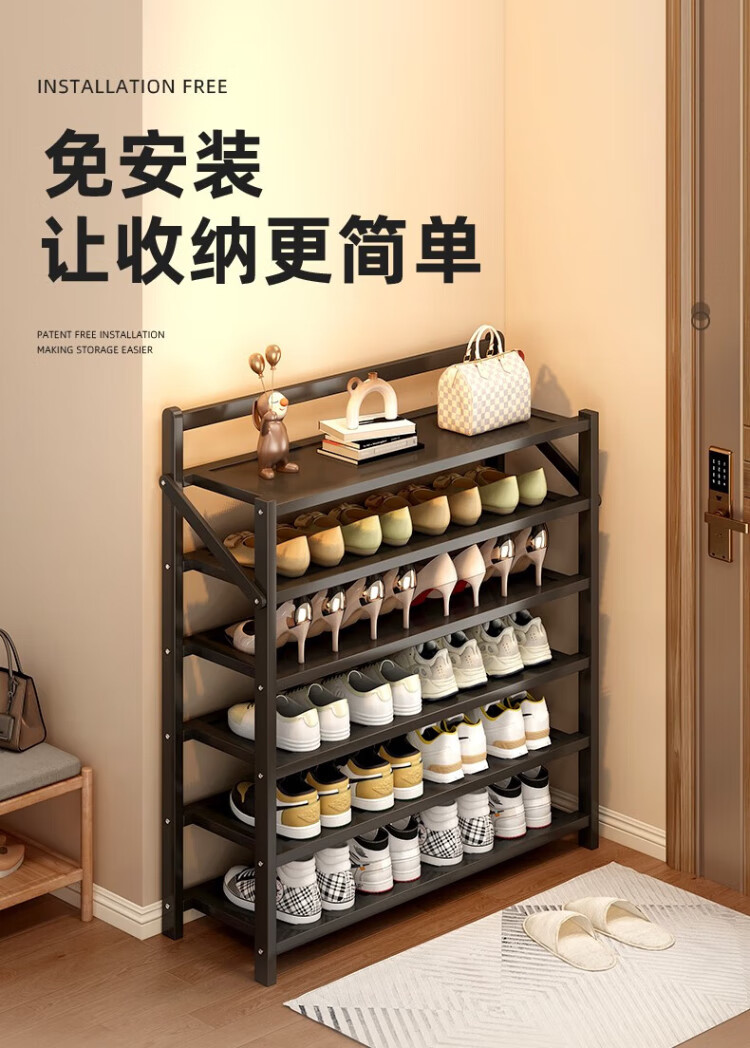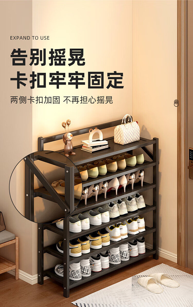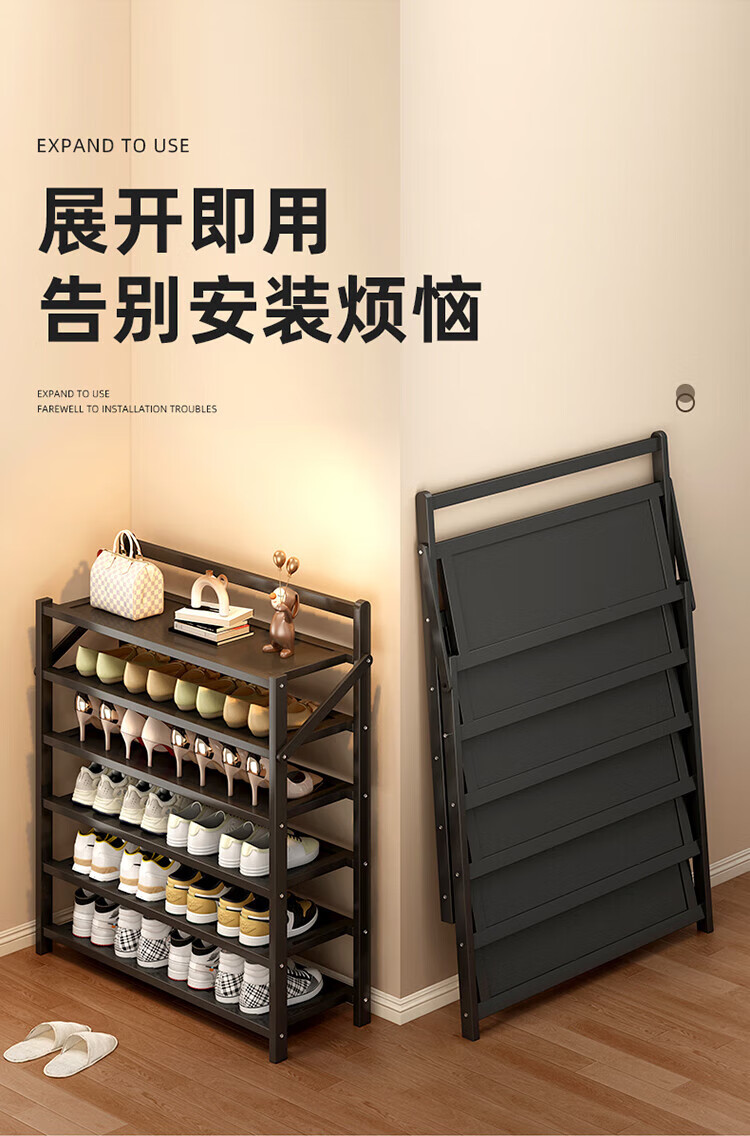 Millennium Washington shoe rack door multi-layer home installation-free folding simple door storage shoe rack black 4 layers 70