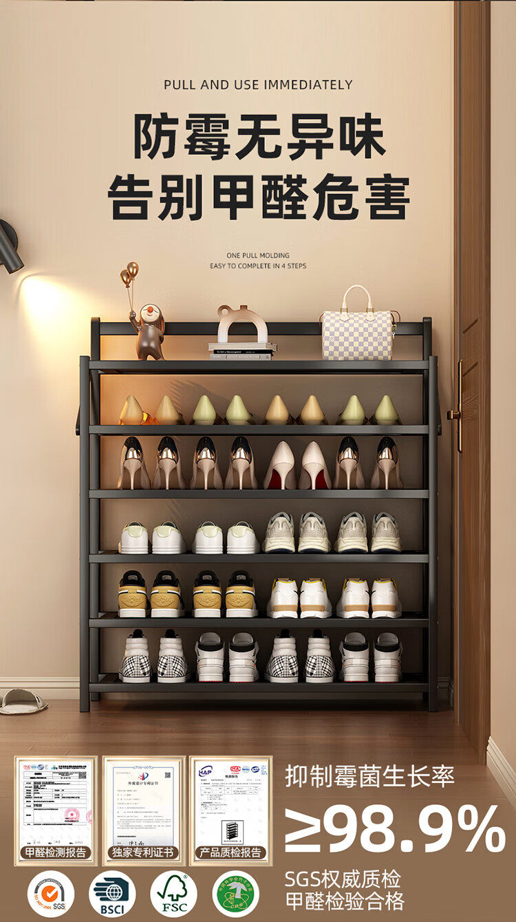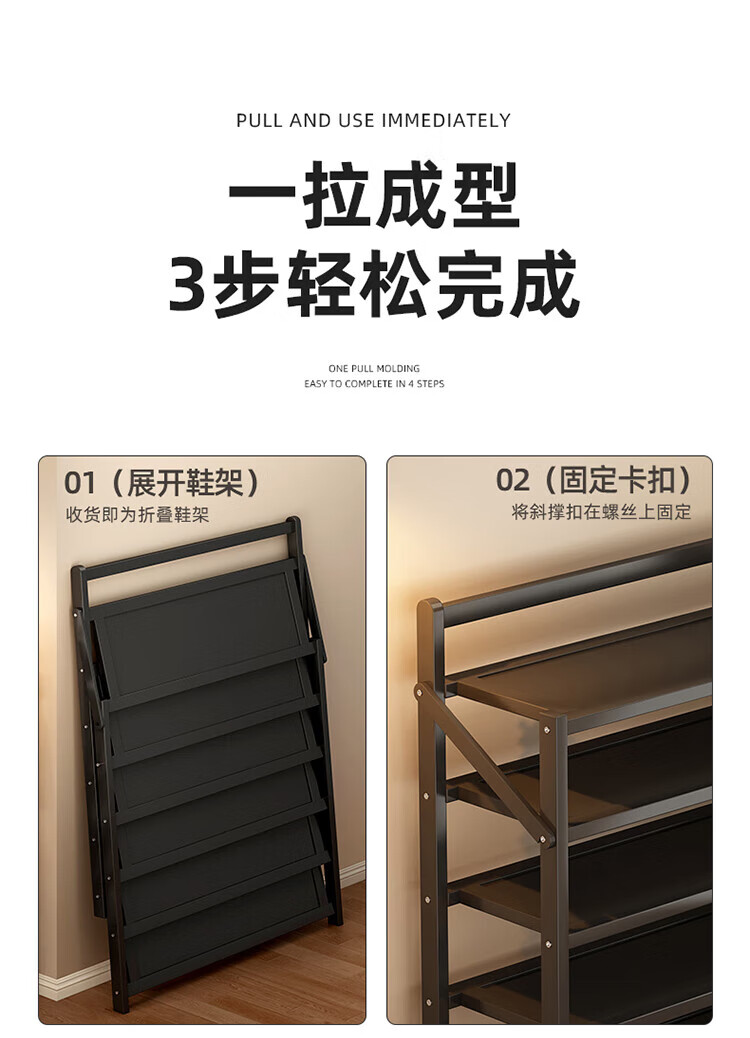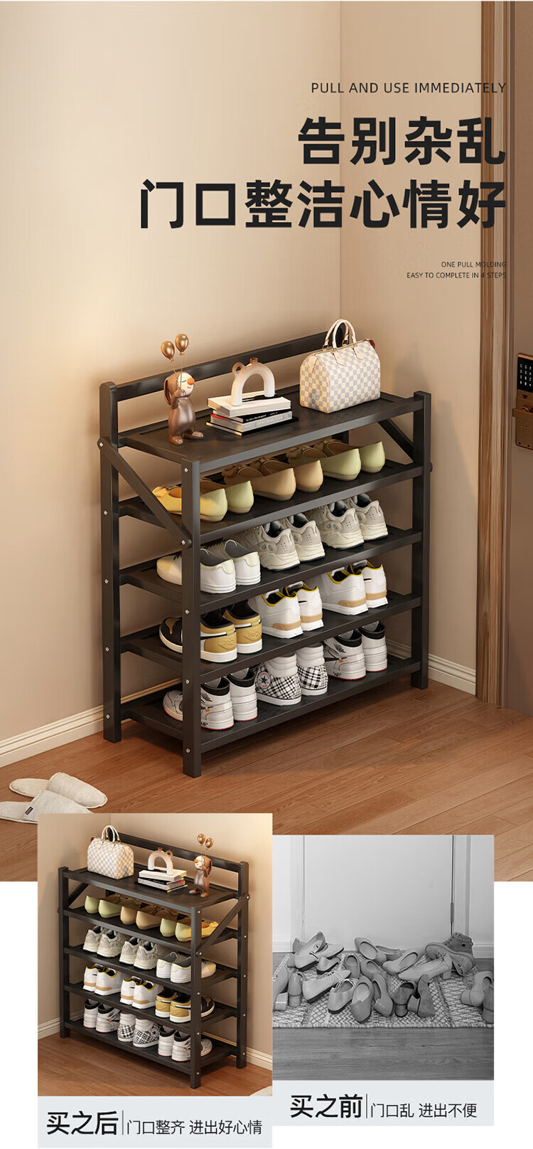 Millennium Washington shoe rack door multi-layer home installation-free folding simple door storage shoe rack black 4 layers 70
