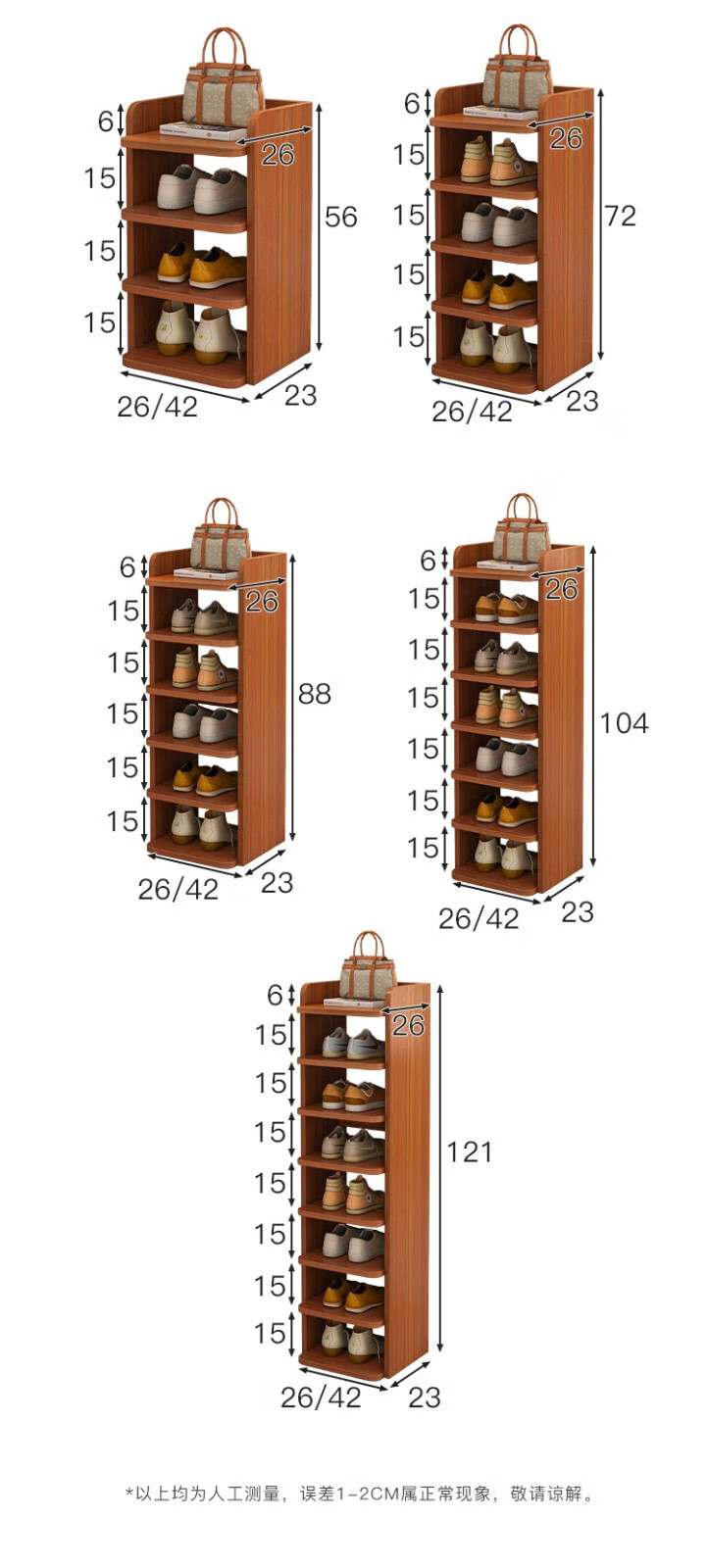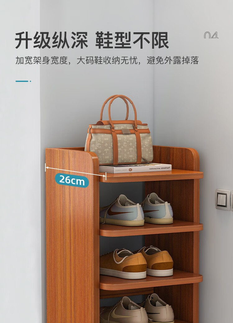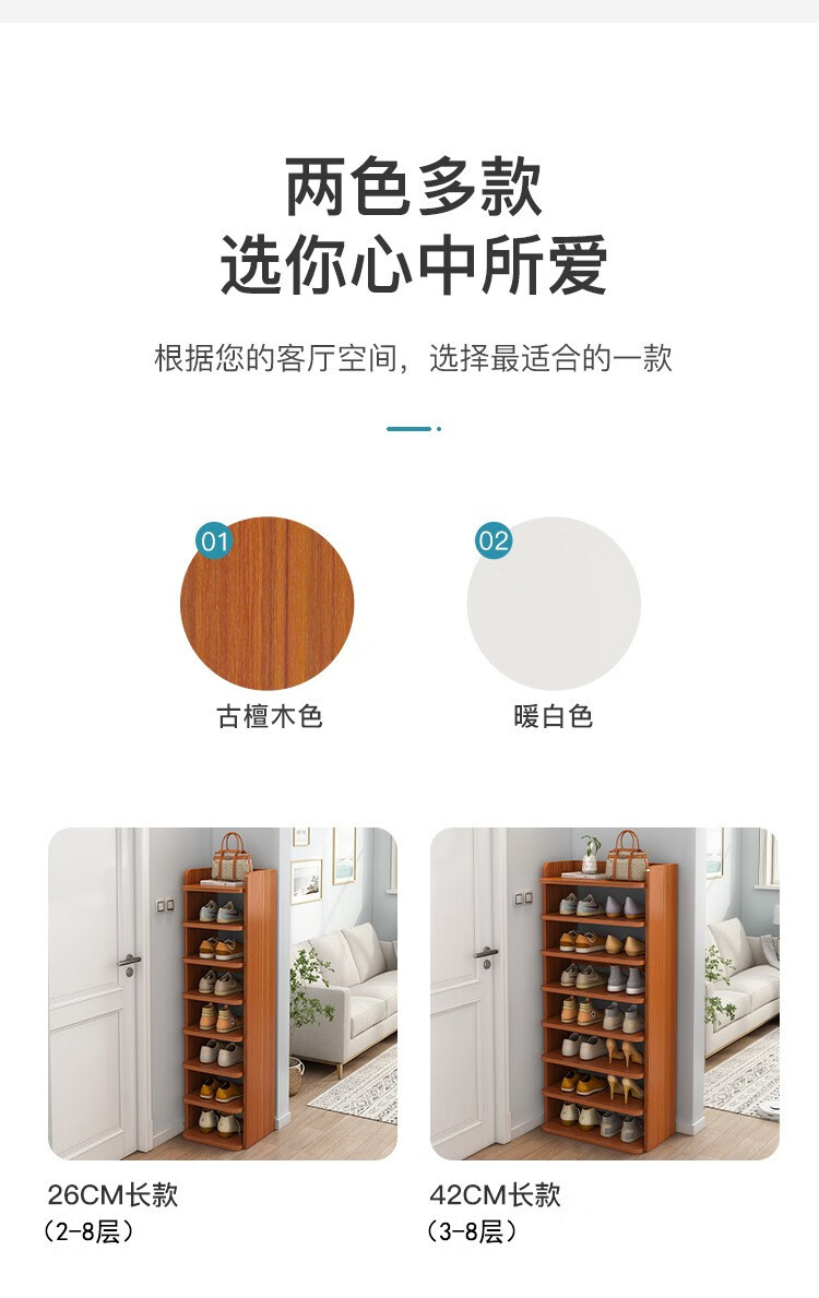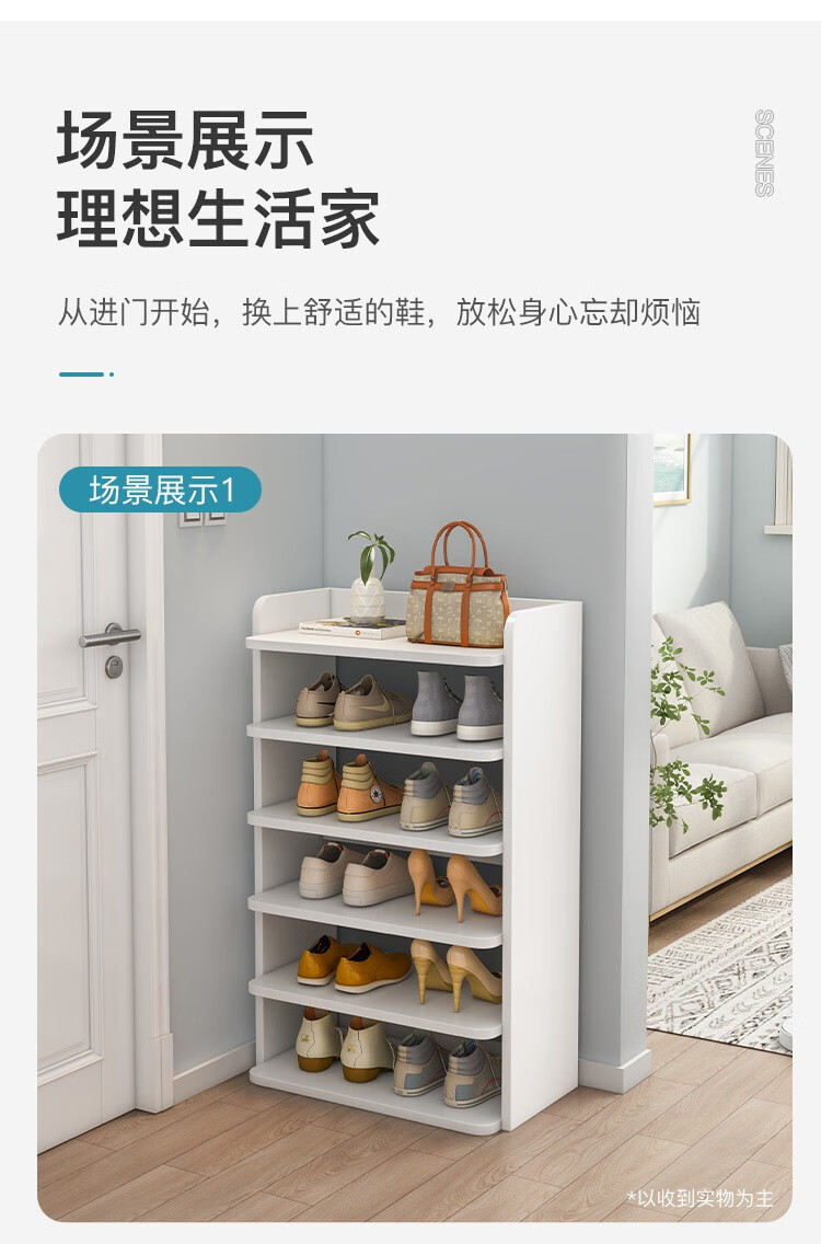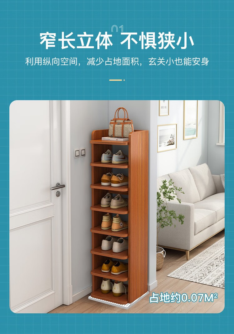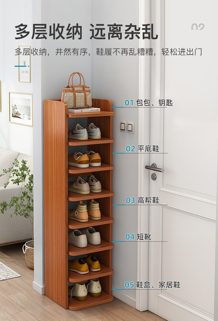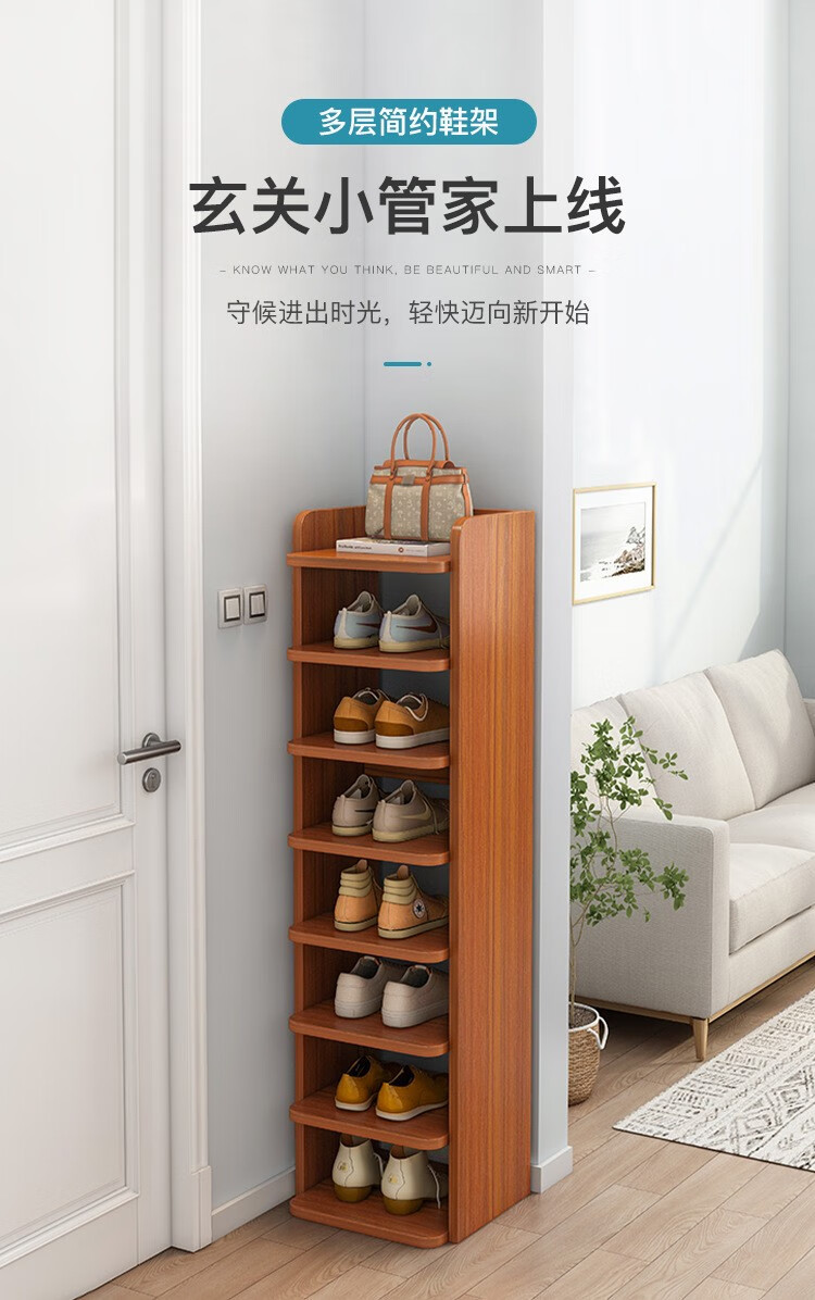 Mansha Beauty Shoe Rack Home Door Layered Partition Strong and Stable Simple Multi-layer Storage Narrow Long Three-dimensional Shoe Rack Warm White 7 Layers Narrow 26*26*104