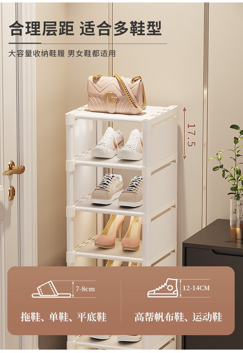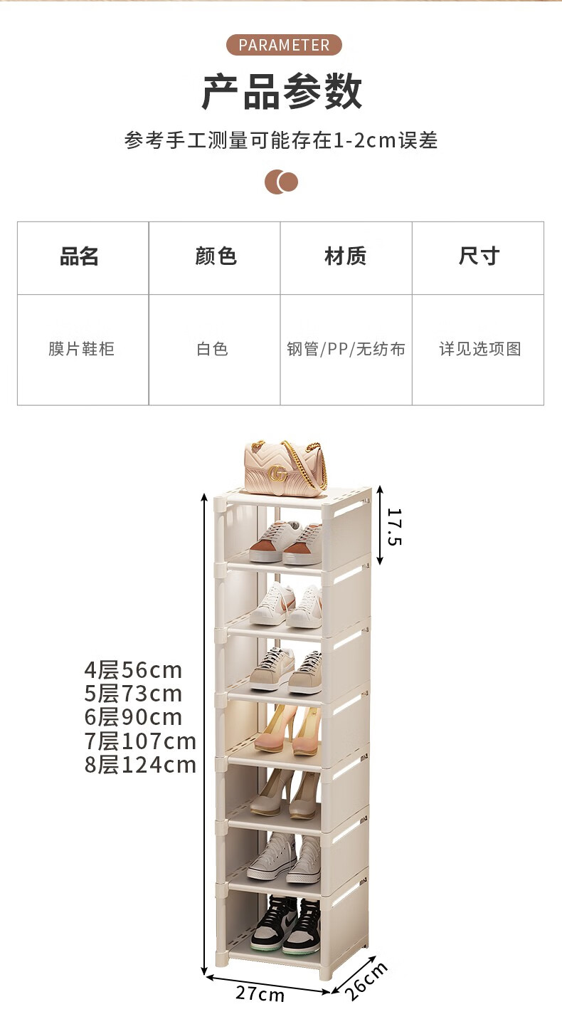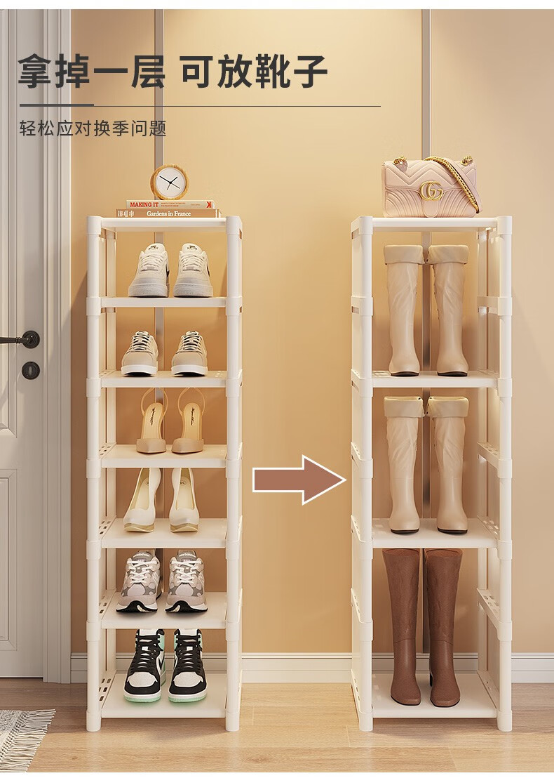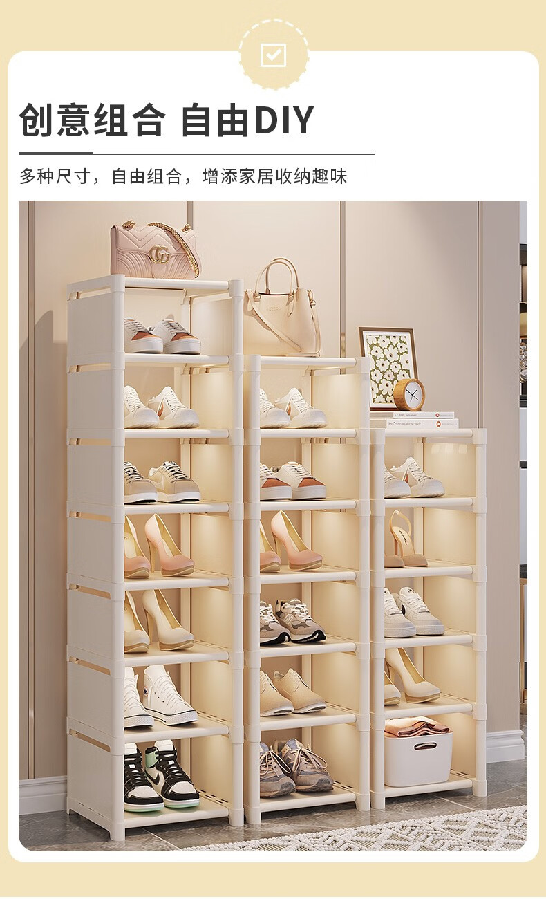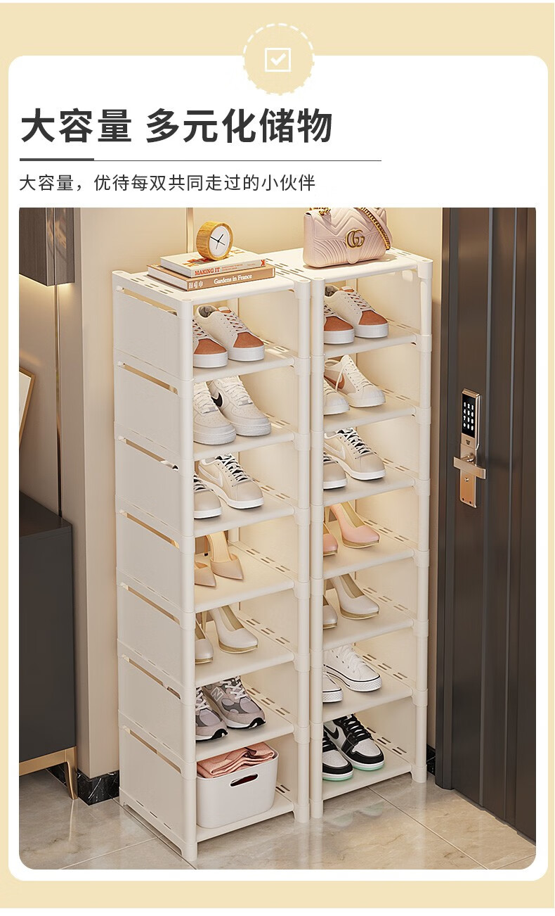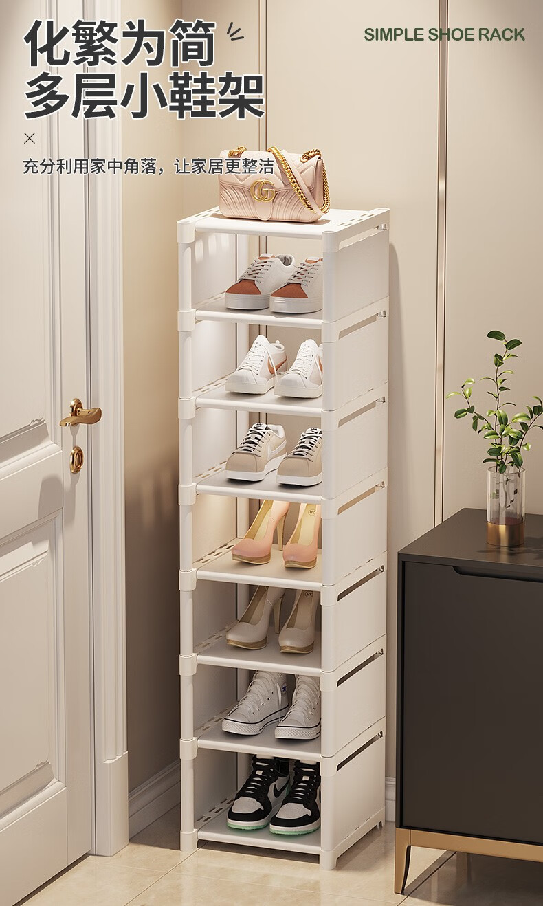 Lohas time single row simple shoe rack door multi-layer household shoe storage narrow shoe rack storage rack dormitory shoe rack white 8 layers