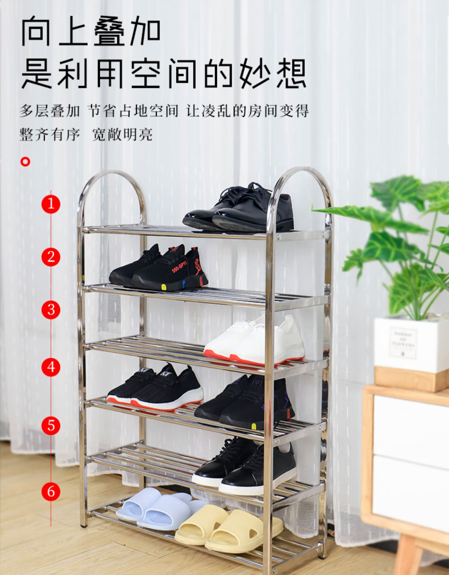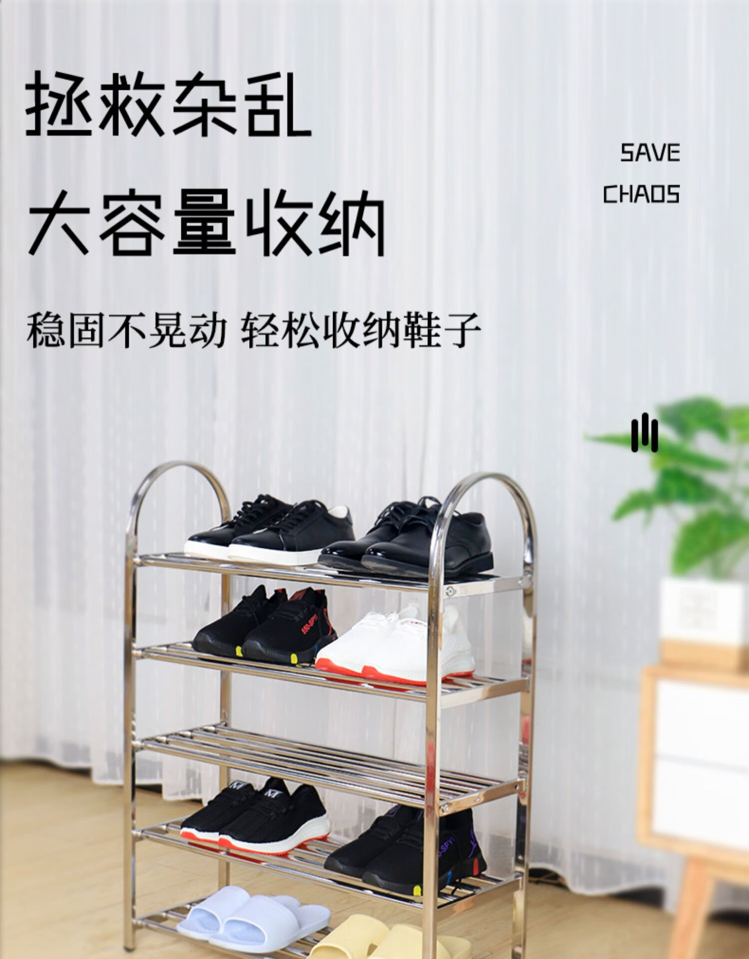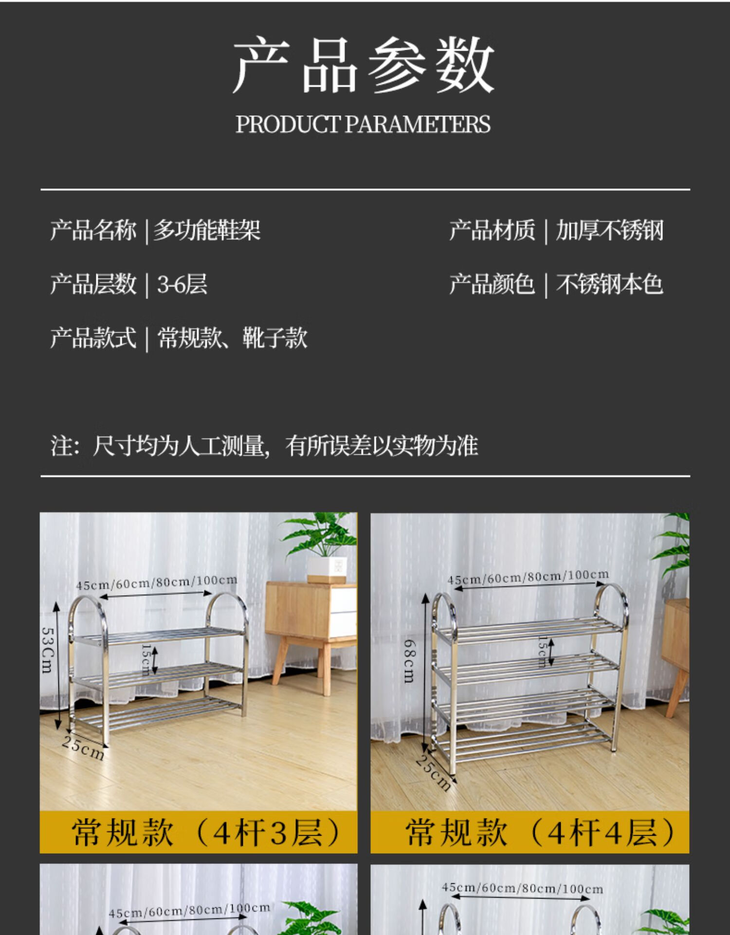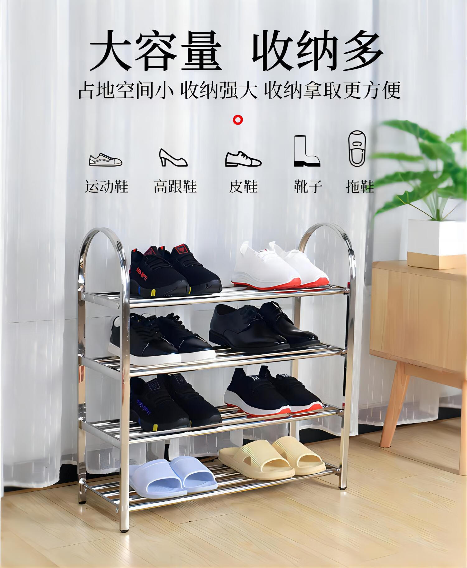 Lunar exploration stainless steel shoe rack simple home indoor good-looking dormitory door multi-layer shoe storage cabinet 2025 storage rack three layers long 45 cm (four poles)