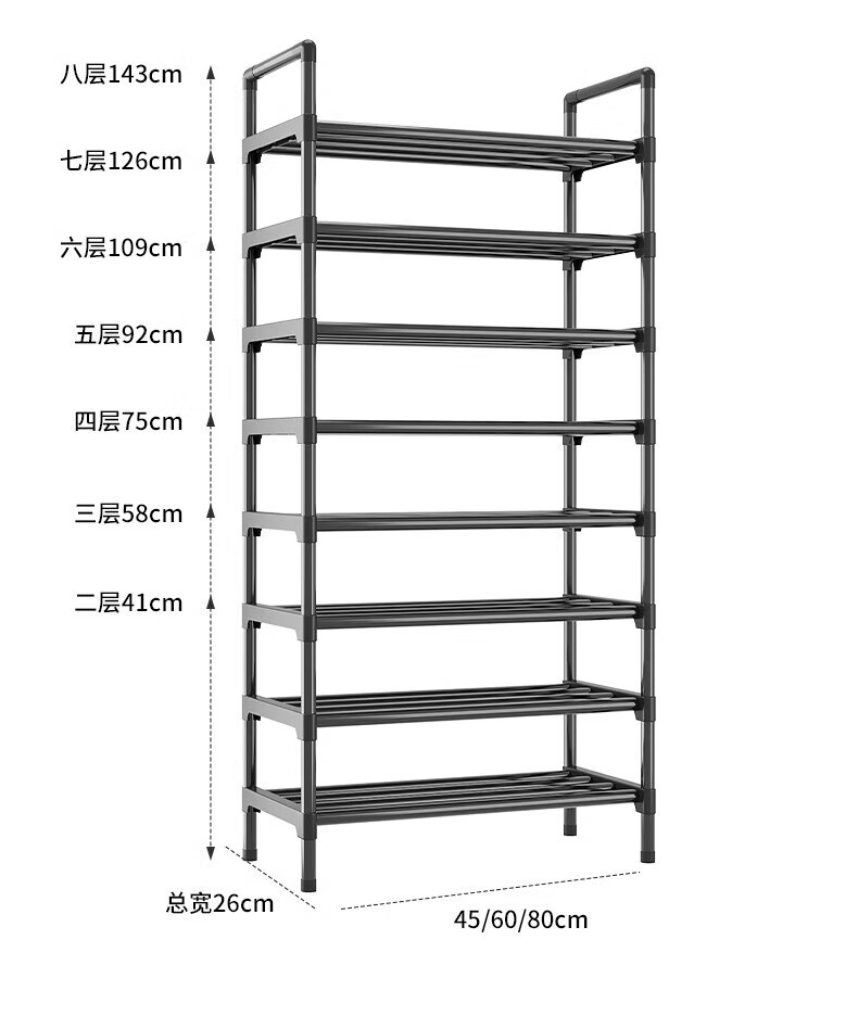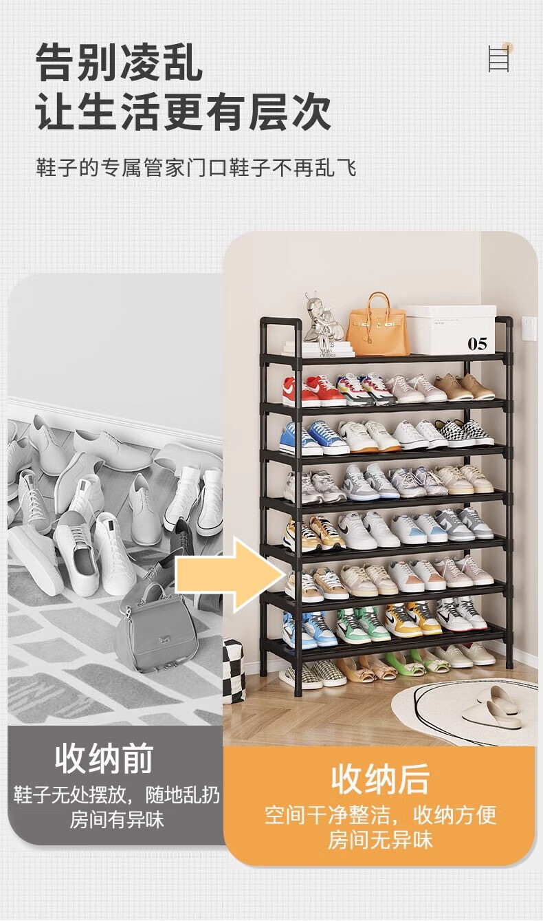 Nifeng simple shoe rack door multi-layer household shoe storage rack indoor shoe rack dormitory shoe rack multi-functional storage rack 7 layers 4 steel pipes per layer widened + 80cm long