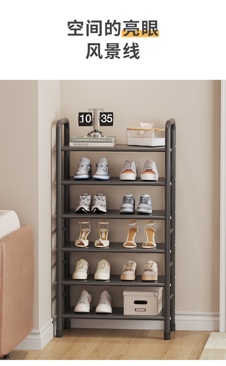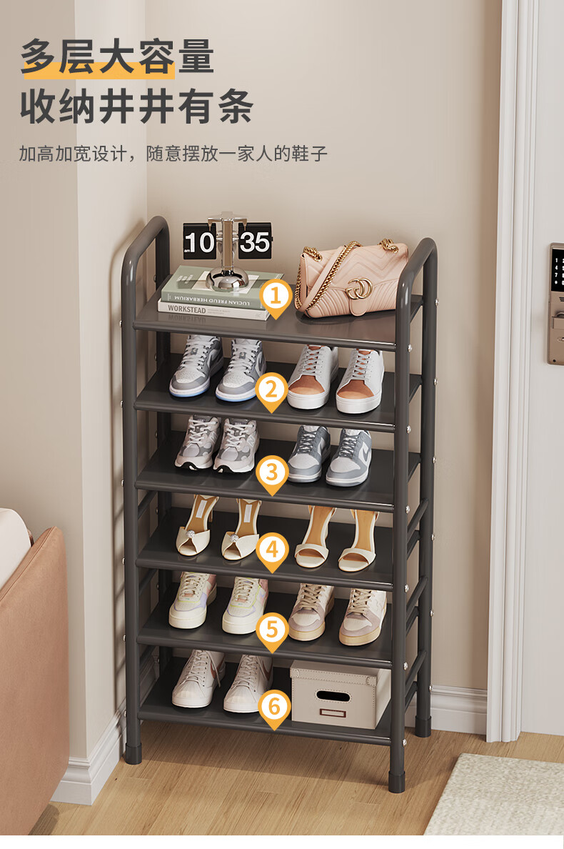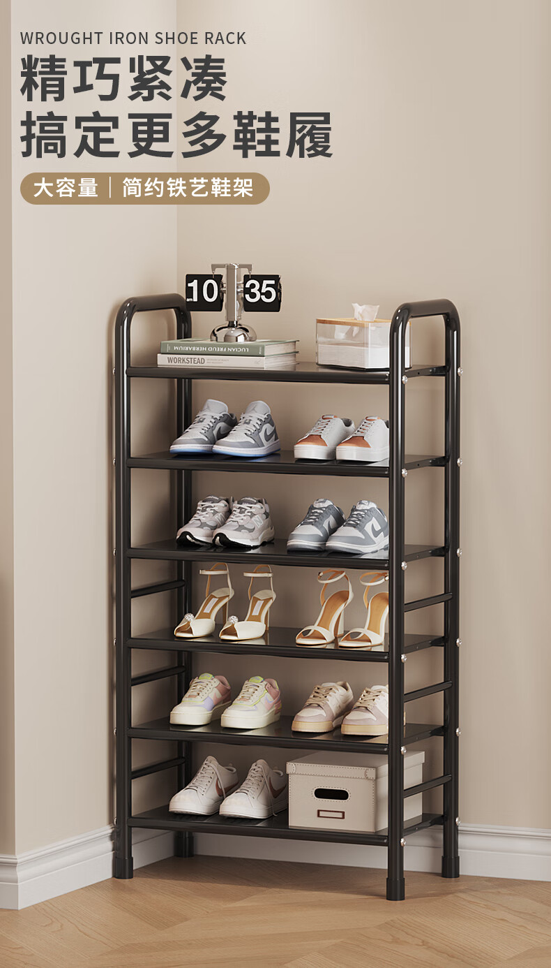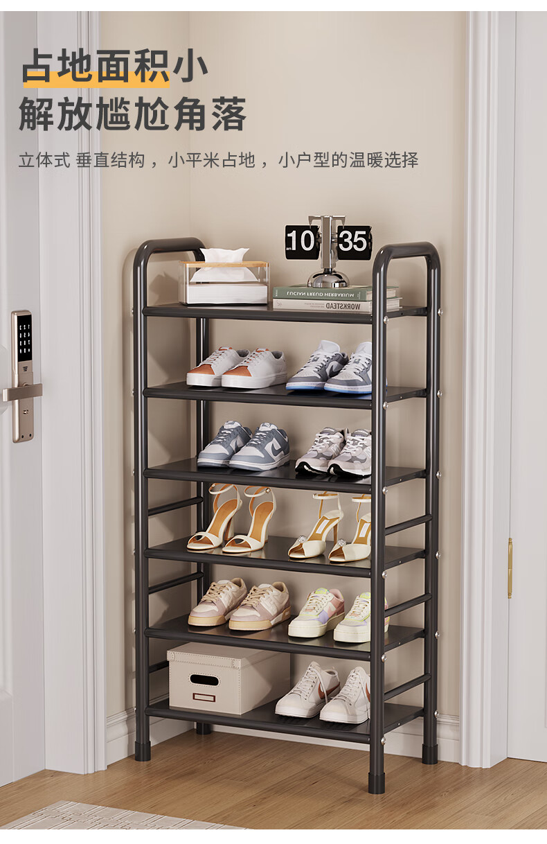 Howl Castle metal shoe rack door multi-layer household shoes 2025 new shoe rack storage rack small dust-proof simple shoe rack four layers - black all metal