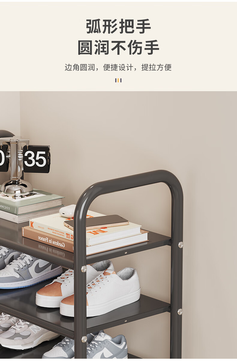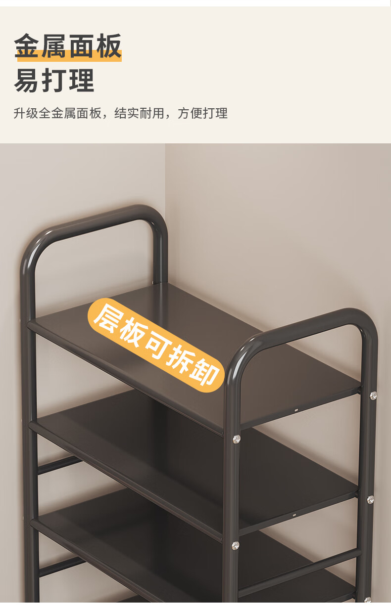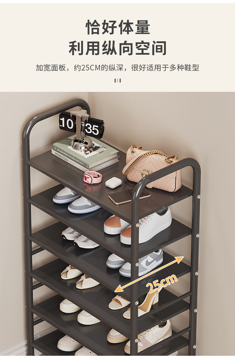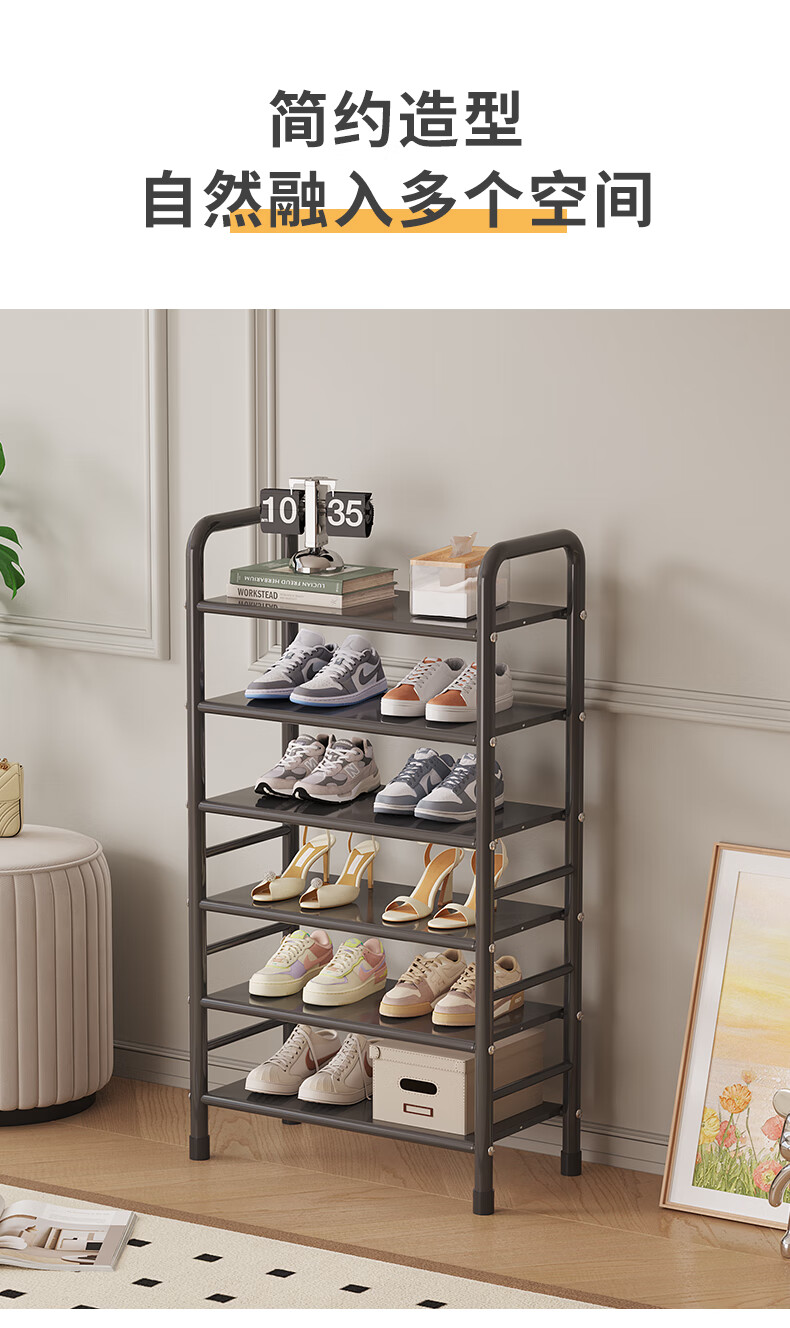 Howl Castle metal shoe rack door multi-layer household shoes 2025 new shoe rack storage rack small dust-proof simple shoe rack four layers - black all metal