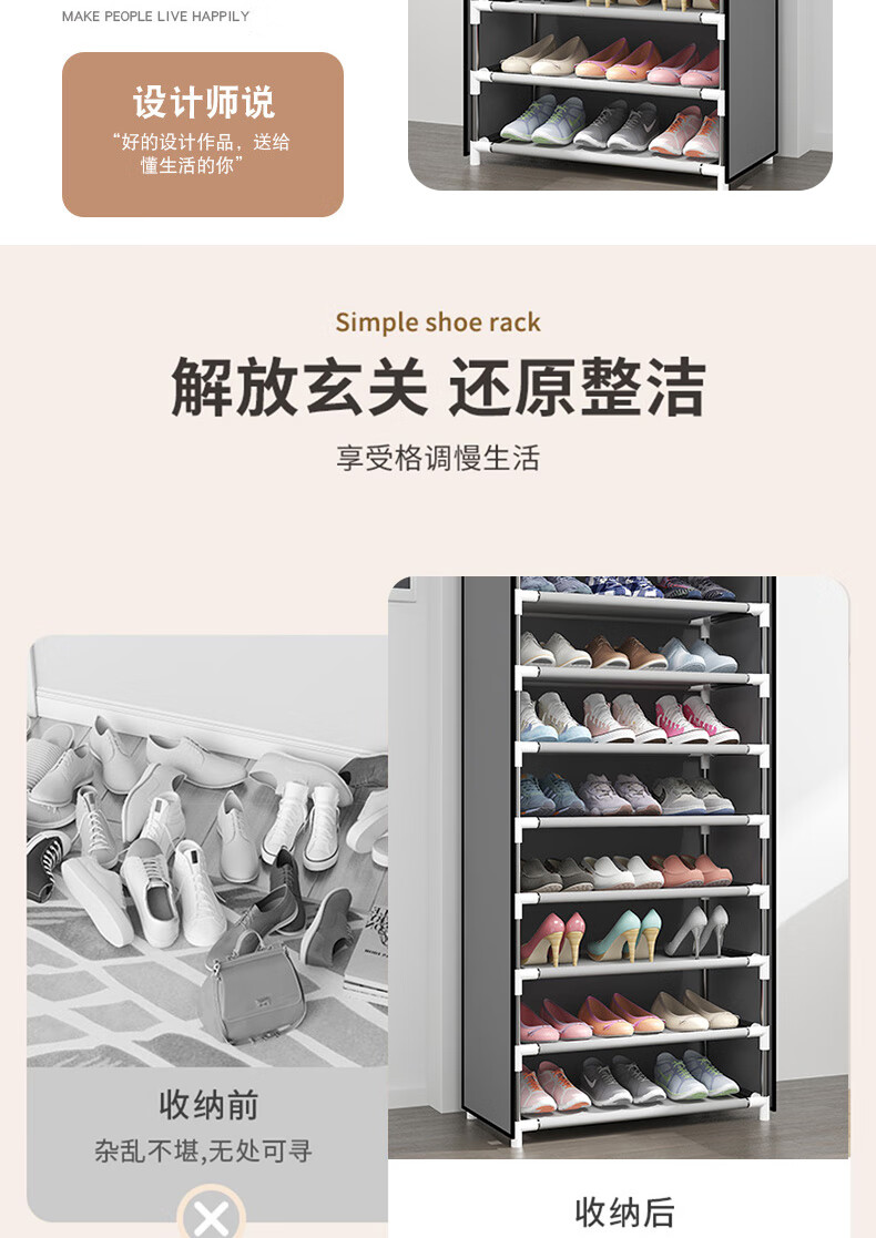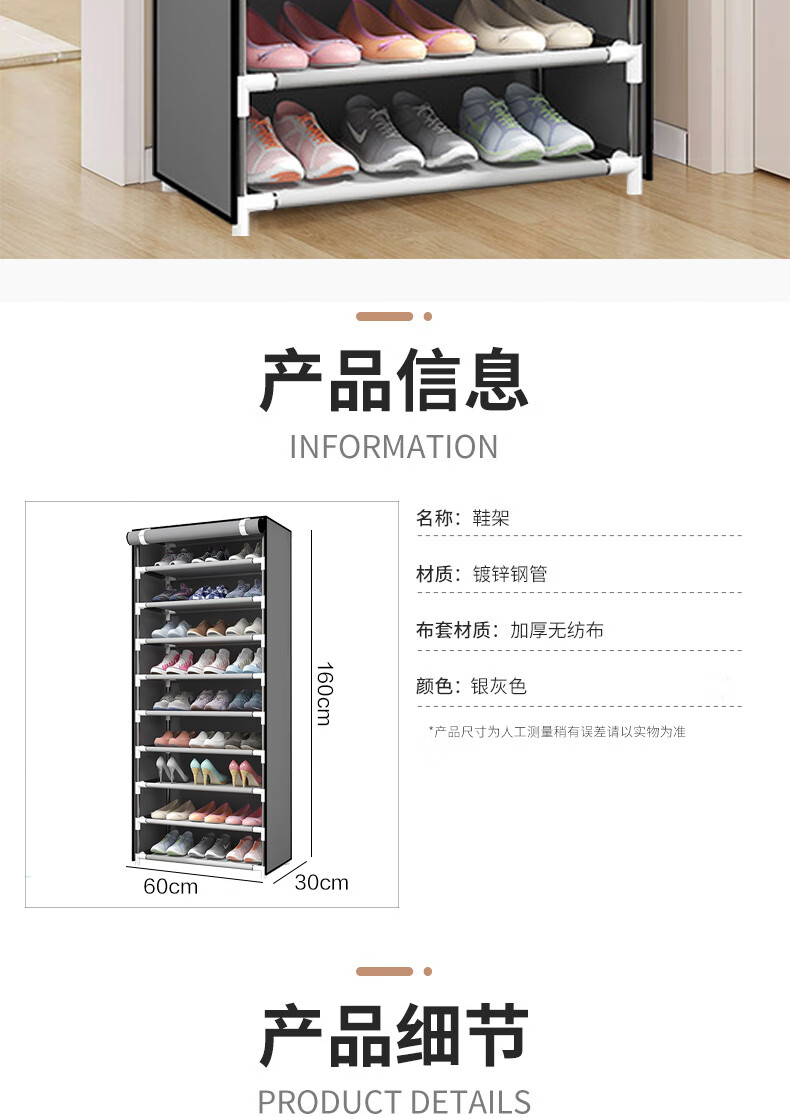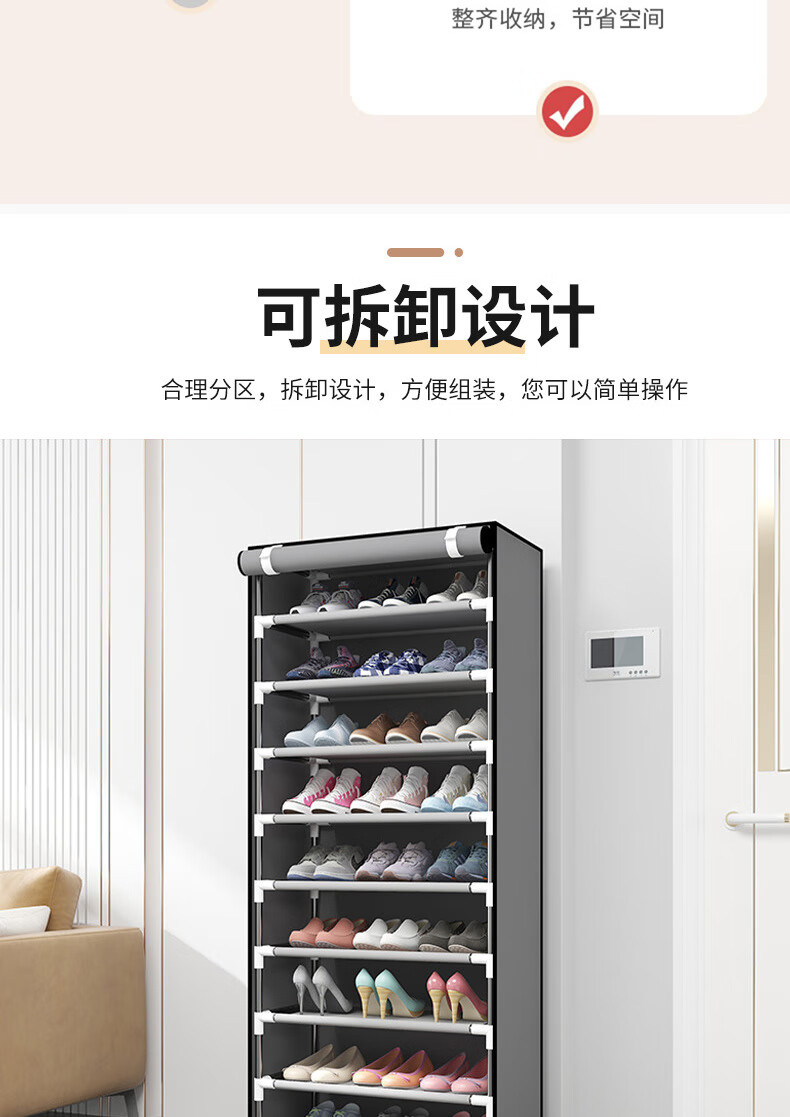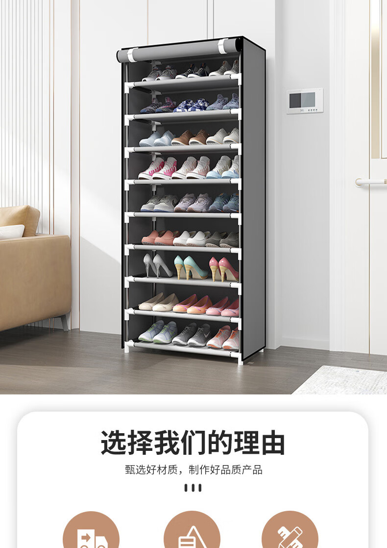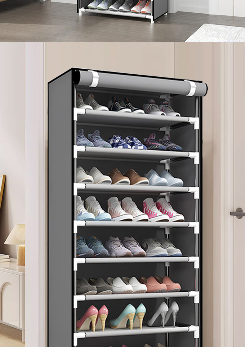 Bo Naling simple shoe rack multi-story rental house large-capacity storage shoe cabinet steel frame non-woven student dust-proof shoe rack storage rack ten-layer nine-grid silver-gray shoe rack