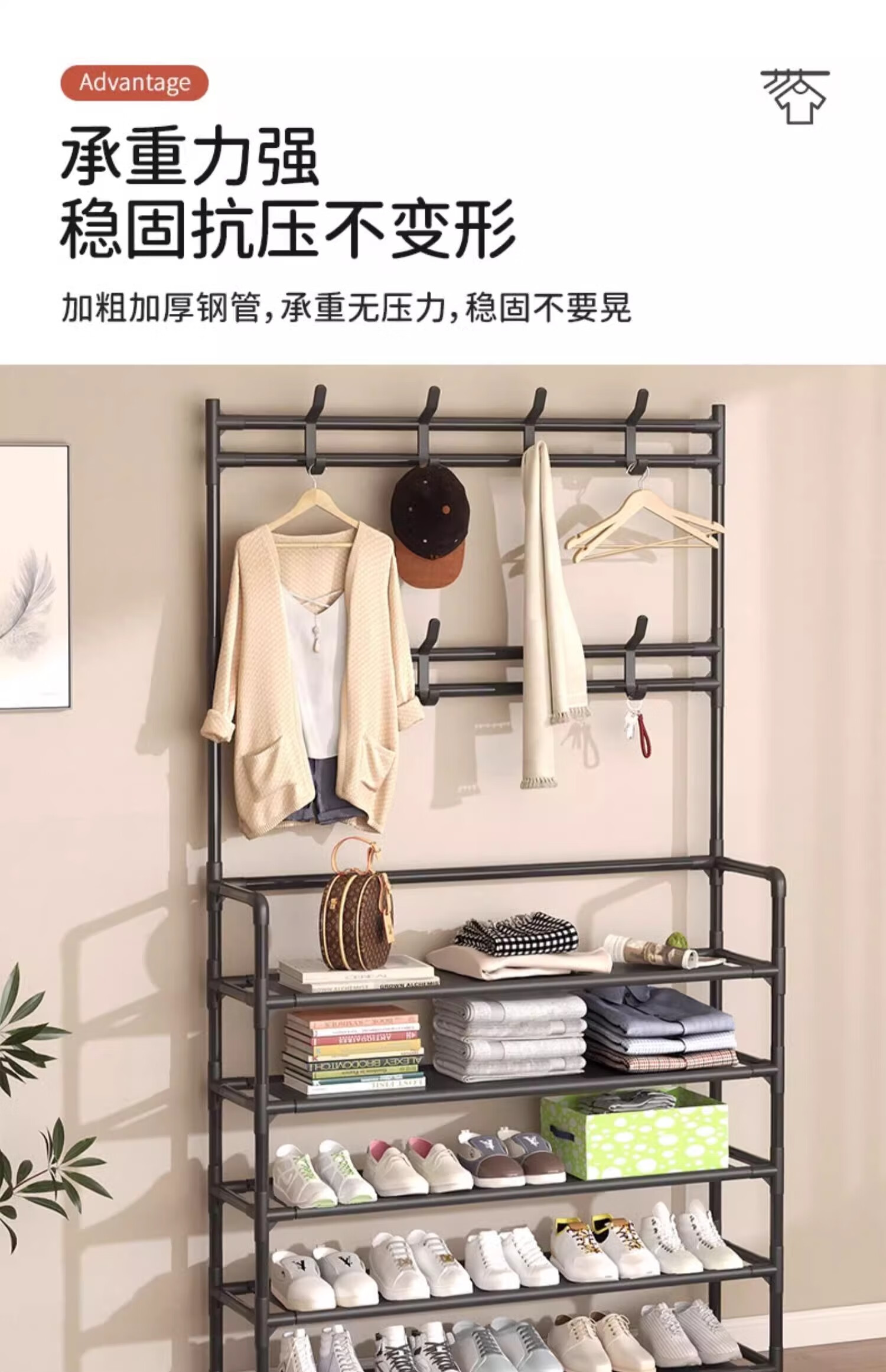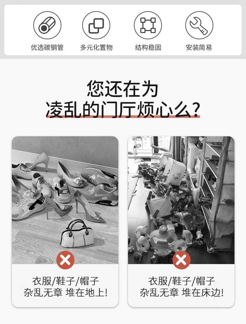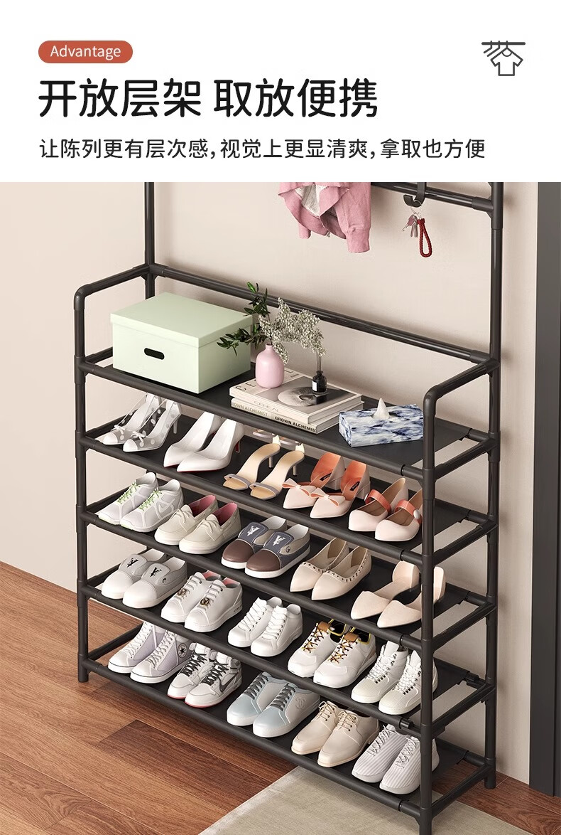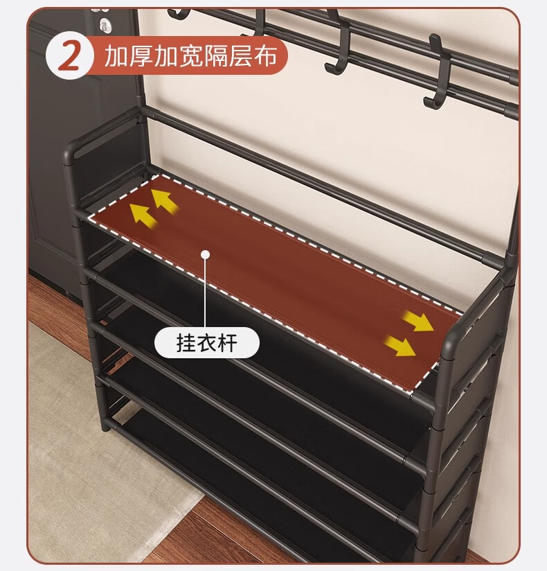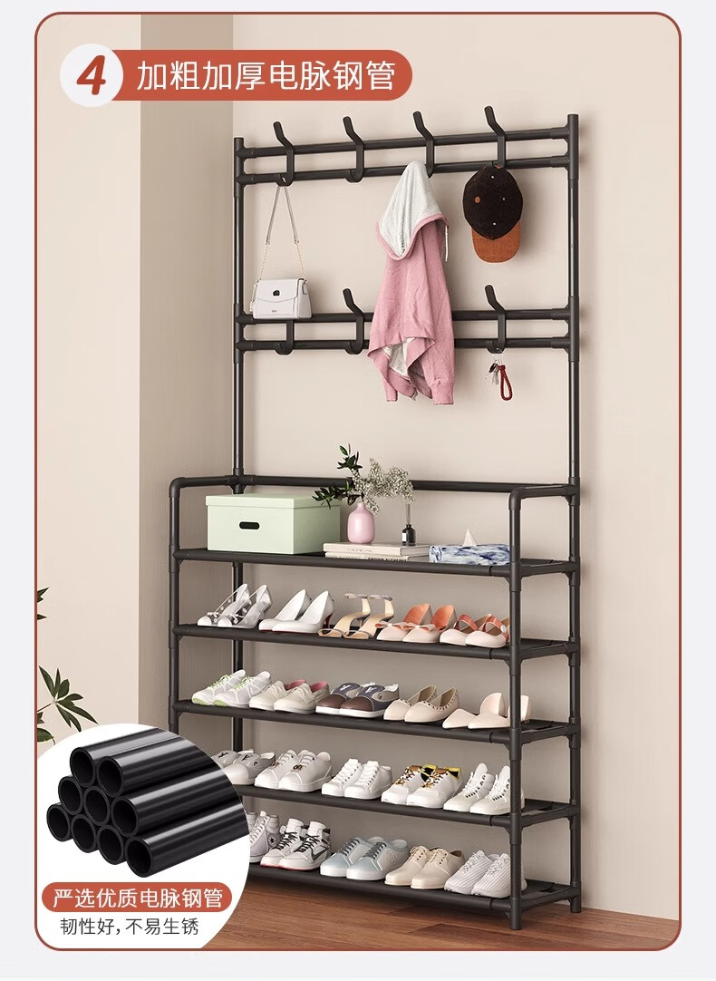 Xinwujia Multifunctional Shoe Rack, Clothes and Hat Integrated Household Entry Door Storage Rental Layer Simple, Strong and Durable Black Four Layers Long 60 Damage Compensation Guaranteed