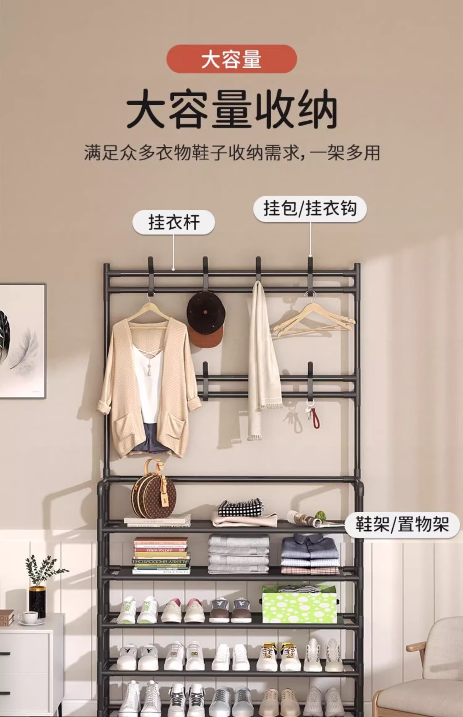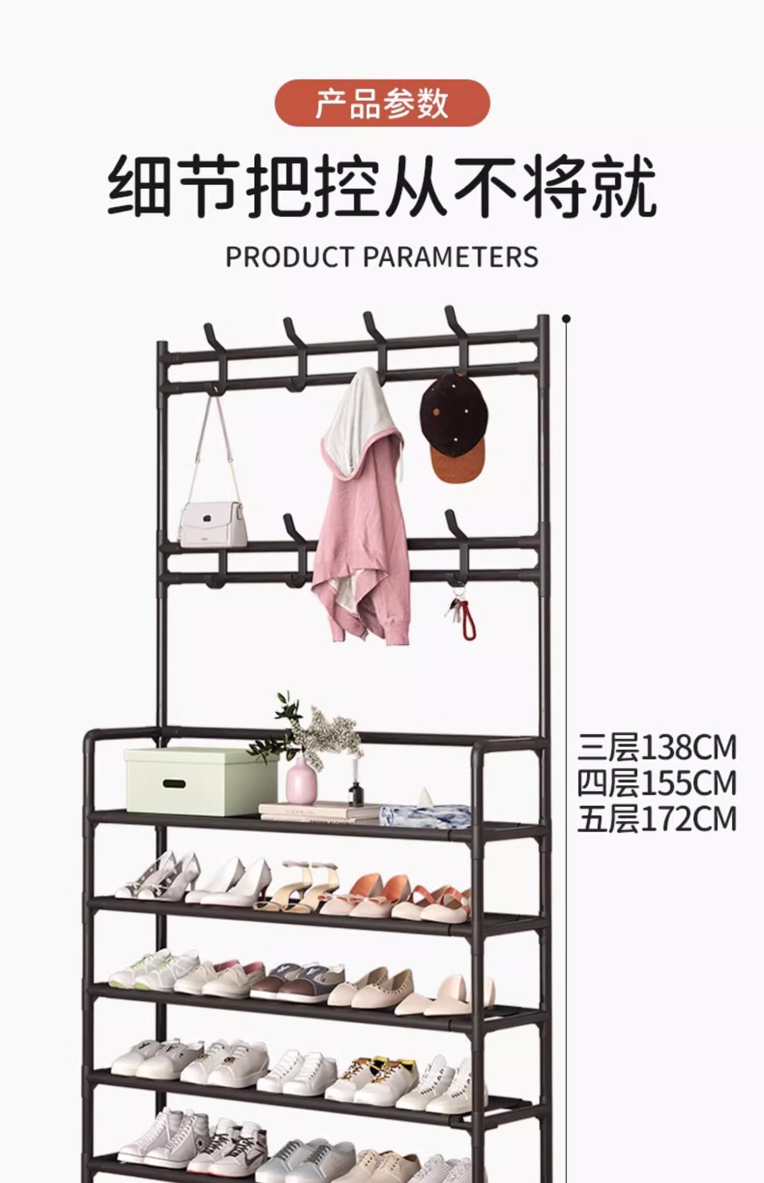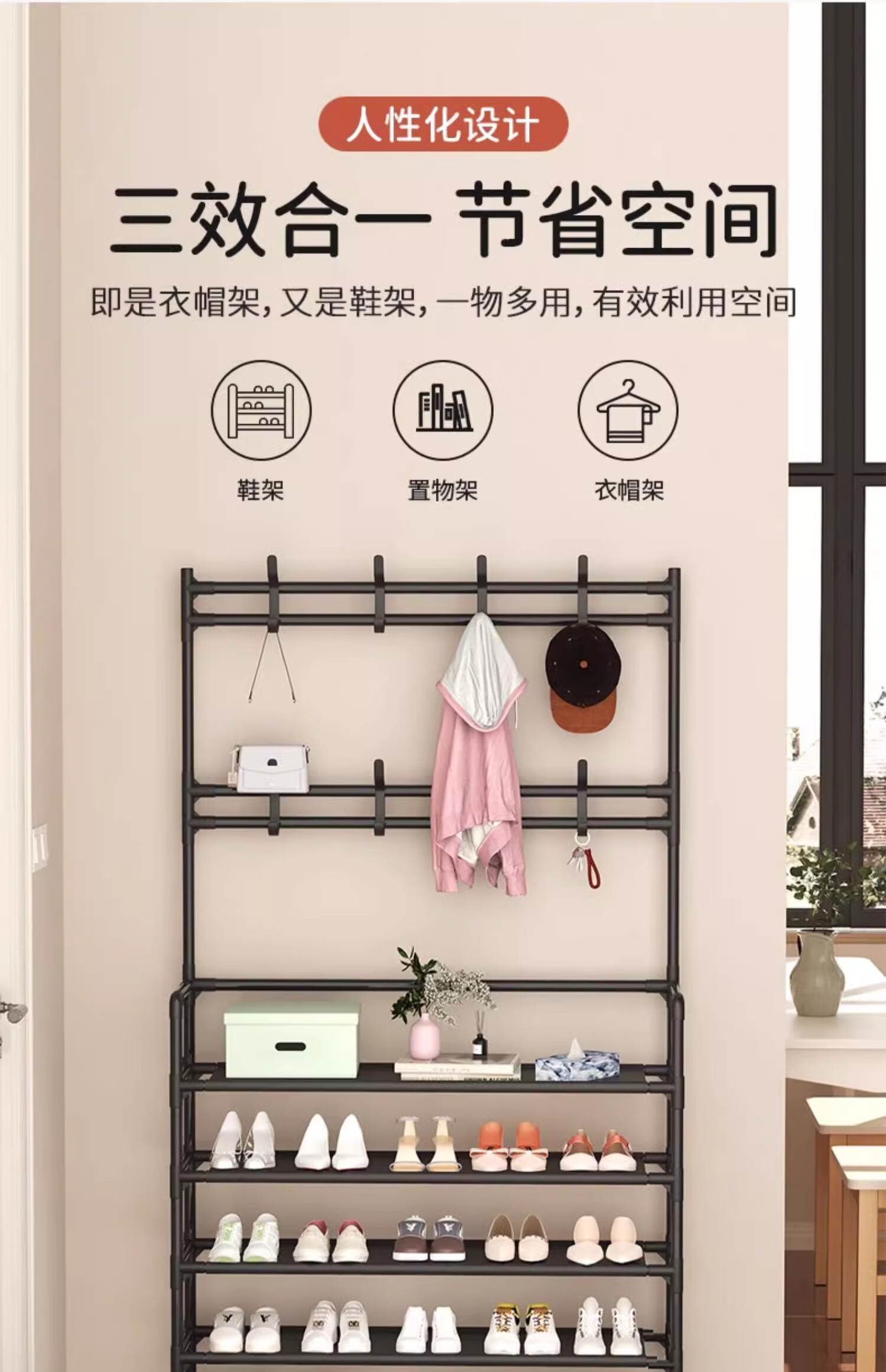 Xinwujia Multifunctional Shoe Rack, Clothes and Hat Integrated Household Entry Door Storage Rental Layer Simple, Strong and Durable Black Four Layers Long 60 Damage Compensation Guaranteed