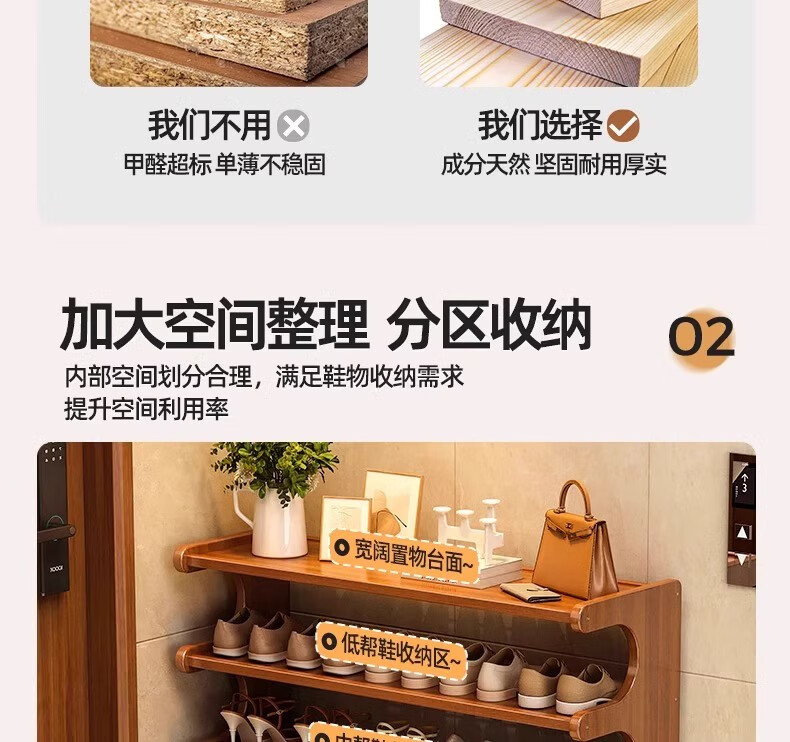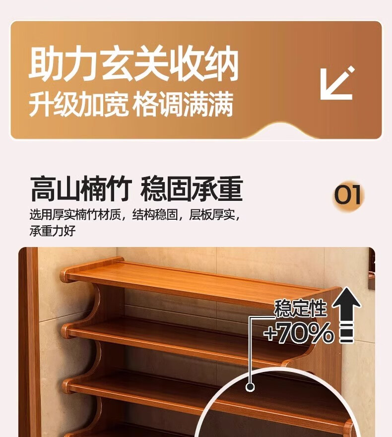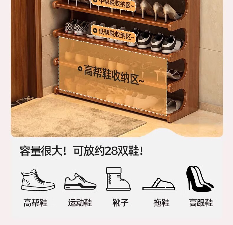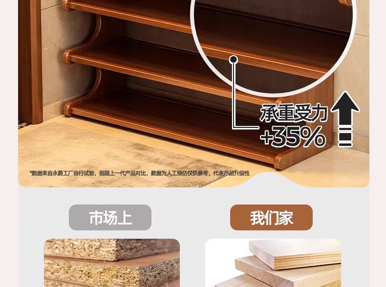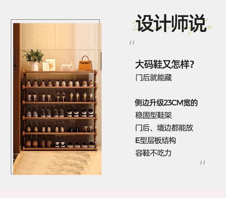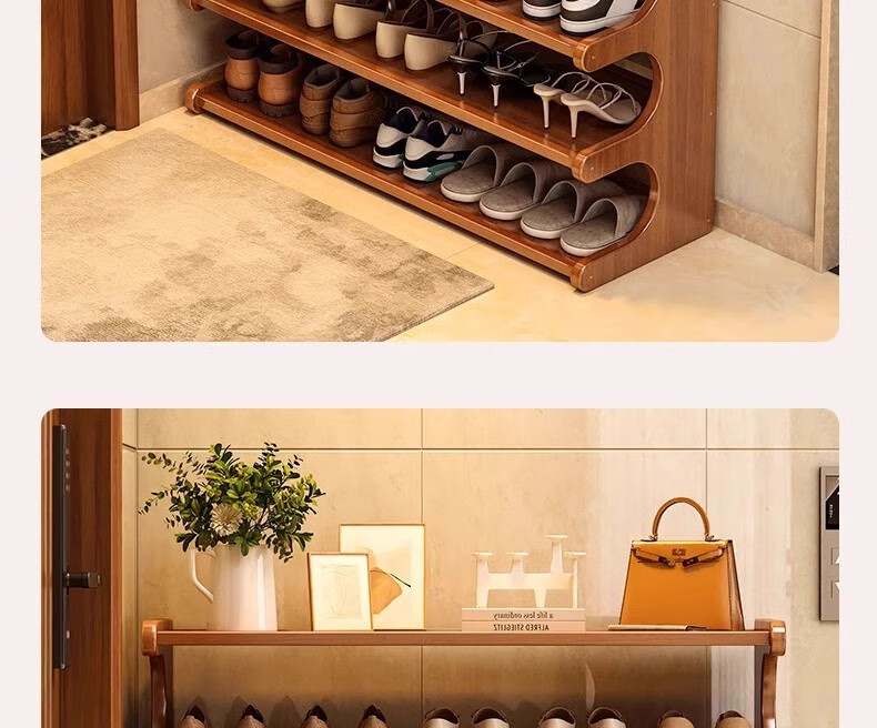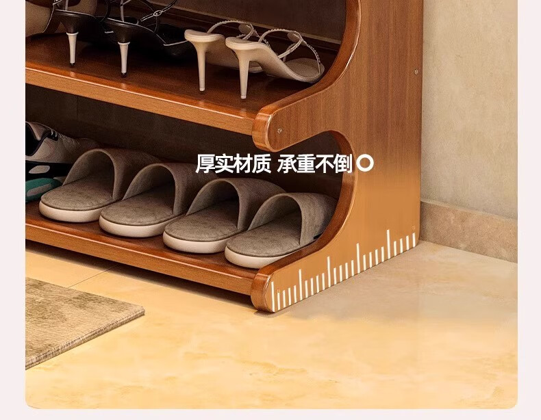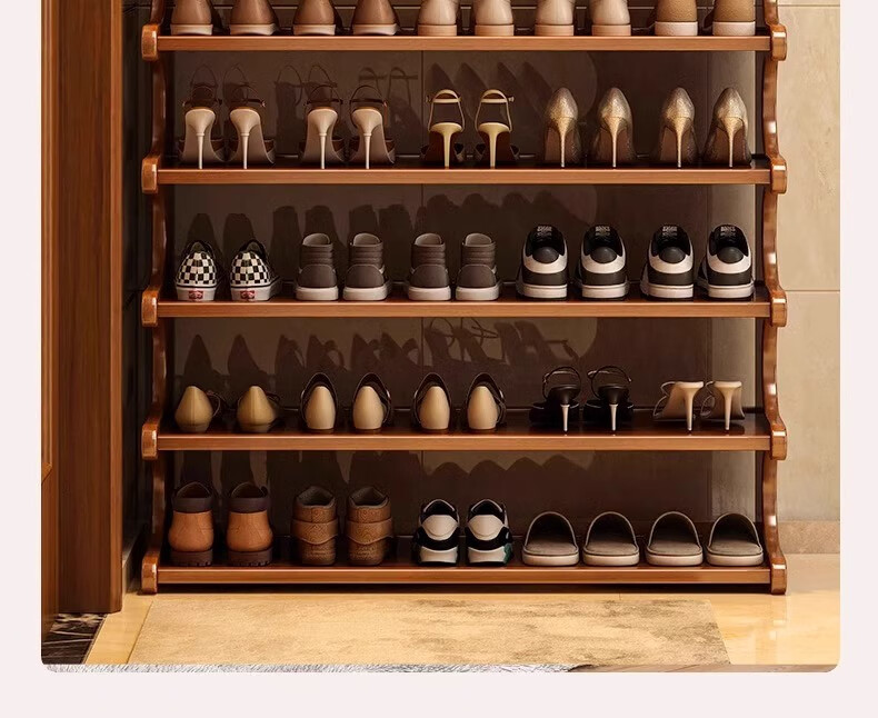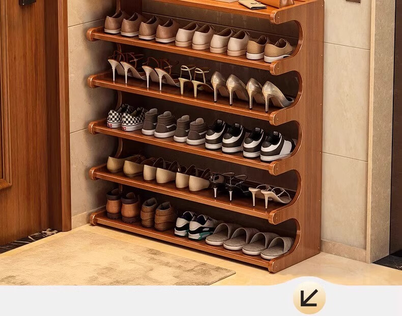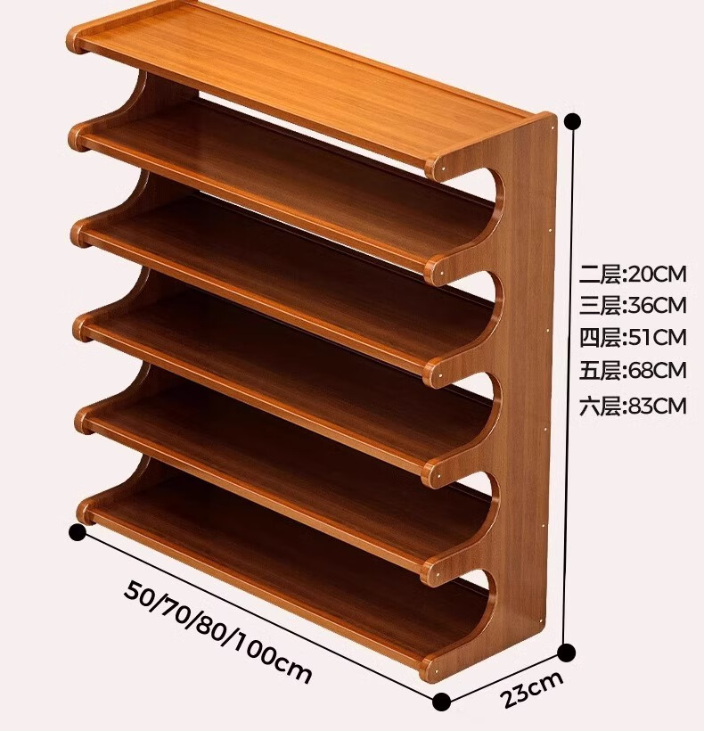 Yubai Wooden Shoe Rack New Nanzhu Simple Shoe Rack Dormitory Simple Shoe Cabinet Home Shoe Rack E-Shaped Shoe Rack Storage Rack Student Brown 6 Layers 100cm Long Recommended by the Store Manager