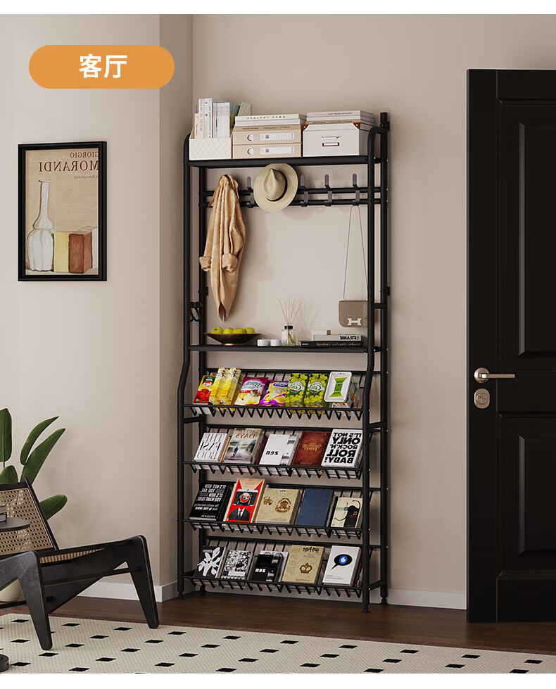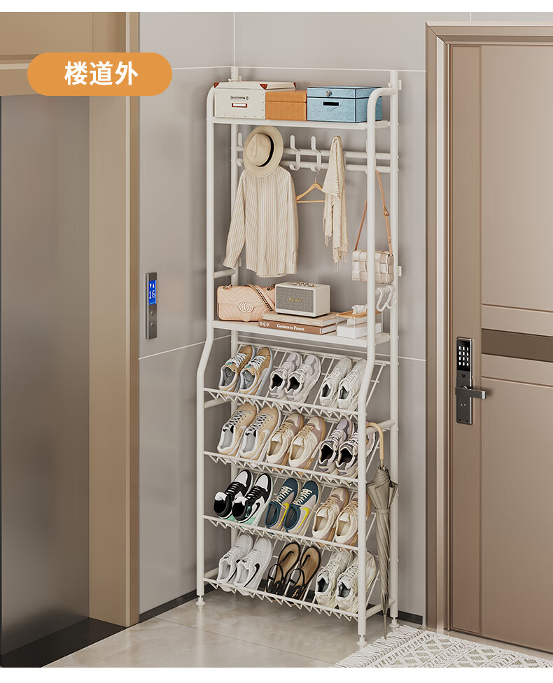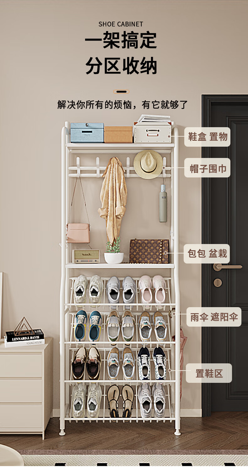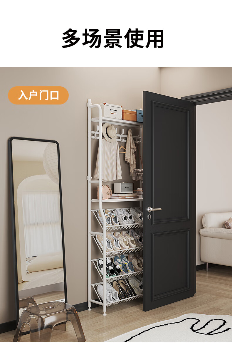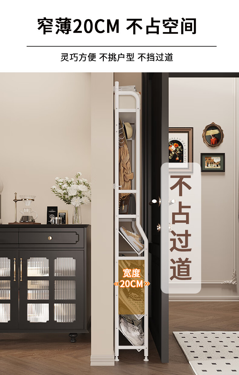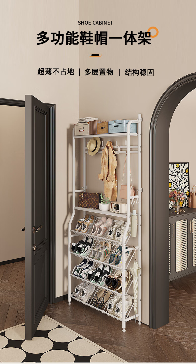Lohas Time Ultra-thin Entry Door Shoe Rack Door Multi-layer Household Shoe Storage Rack Multi-functional Shoe and Hat Integrated Rack Storage Rack Cream White Shoe and Hat Integrated Rack - Large Length 83
