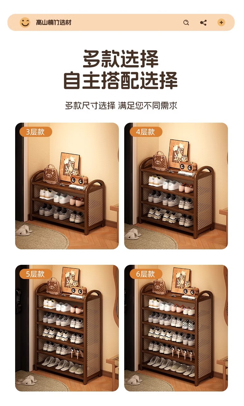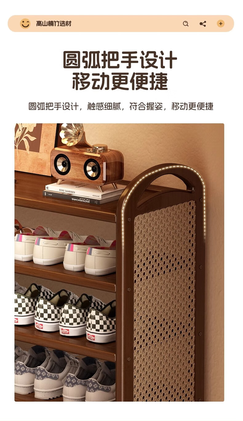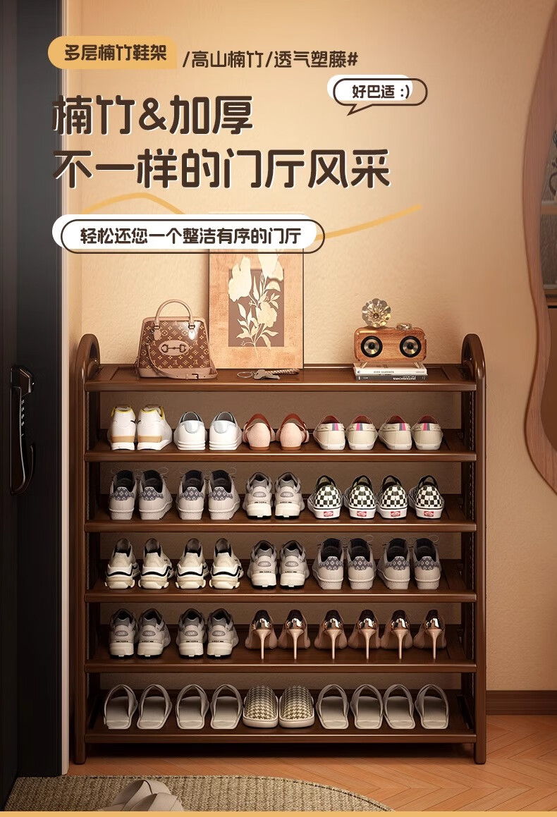 Nifeng household shoe rack multi-layer doorway second-hand shoe cabinet rental dormitory entrance door entrance plastic rattan shoe storage rack 4 layers 50cm thickened laminate plastic rattan side rack