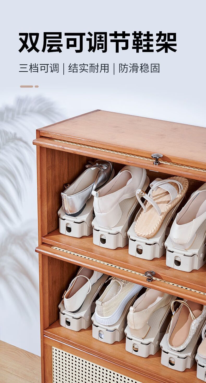 Qinkai adjustable shoe rack to store shoes artifact double-layer shoe bracket home shoe cabinet layered partition dormitory simple shoe cabinet high quality and durable 10 sets four-speed adjustment