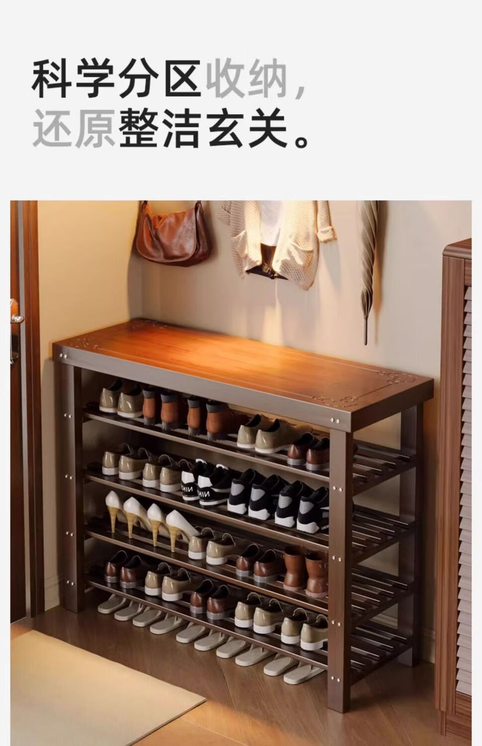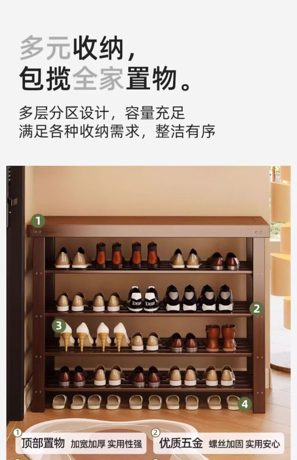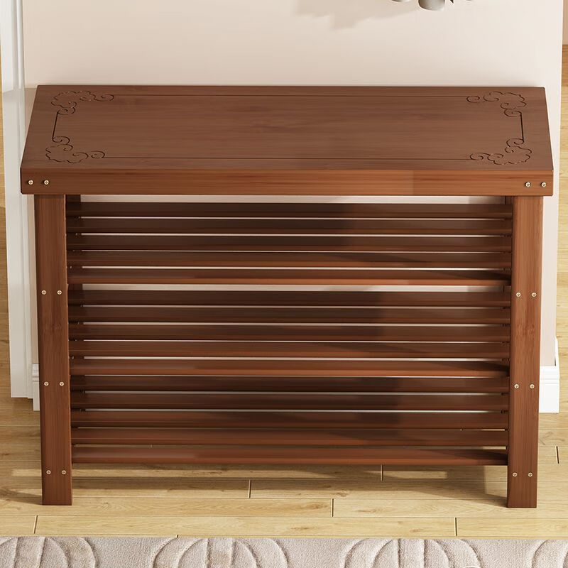 Splott Shoe Cabinet Changing Shoe Stool Door Can Sit At Home Door Shoe Rack Multi-Layer Household Solid Wood Porch Cabinet Storage Rack Carved Shoe Rack (Walnut Color) 4-Layer 80cm Widening and Thickening + Installation Tools
