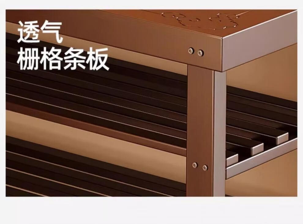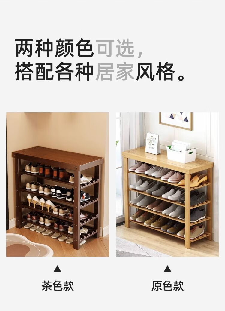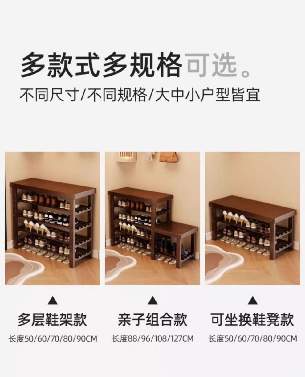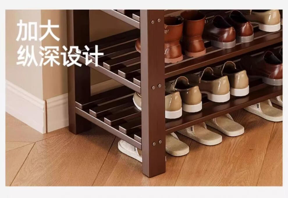 Splott Shoe Cabinet Changing Shoe Stool Door Can Sit At Home Door Shoe Rack Multi-Layer Household Solid Wood Porch Cabinet Storage Rack Carved Shoe Rack (Walnut Color) 4-Layer 80cm Widening and Thickening + Installation Tools