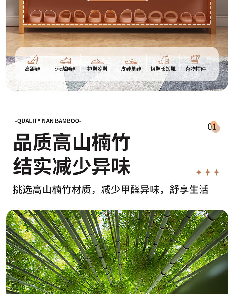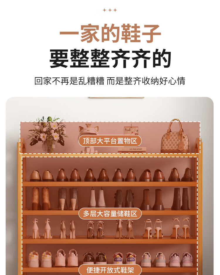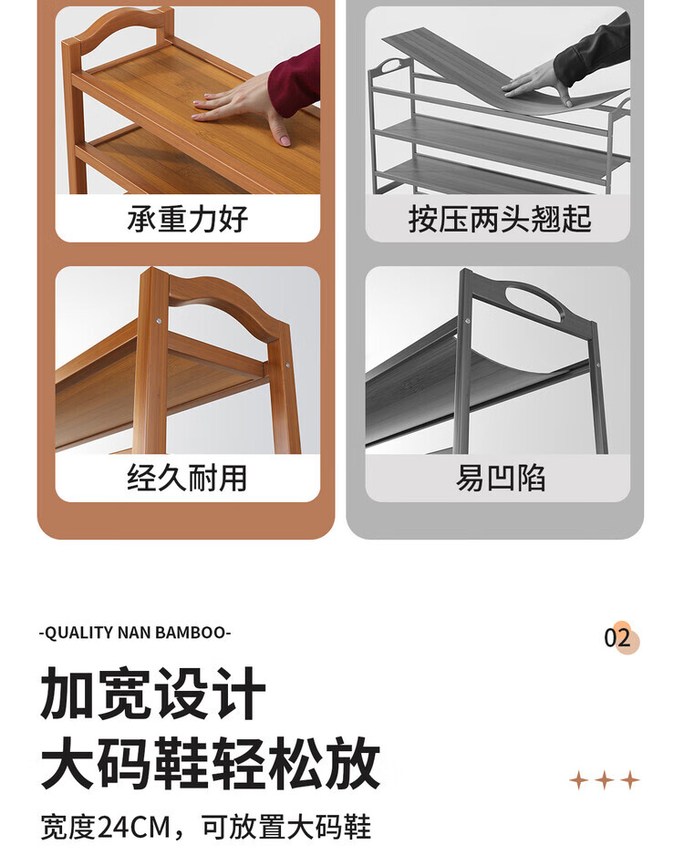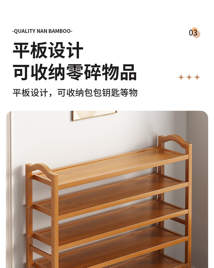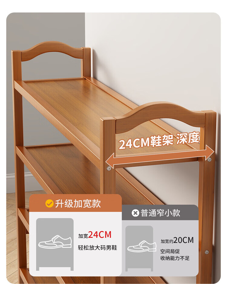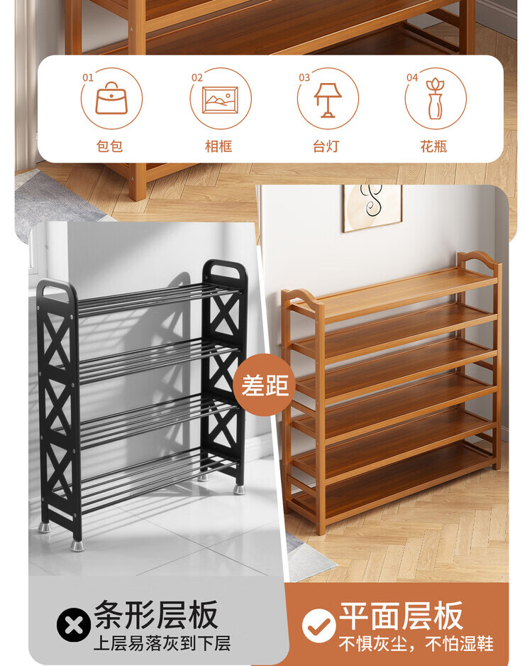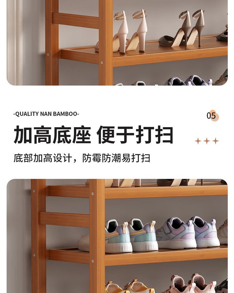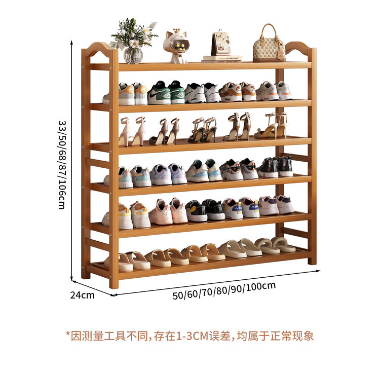 Mu Shuangfu Simple Nanzhu Shoe Rack Multi-layer Home Door Storage Rack Entry Small Narrow Shoe Rack Indoor Shoe Cabinet for Rental House Thickening and Bold Ancient Brown-5 Layers 100cm