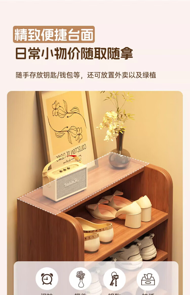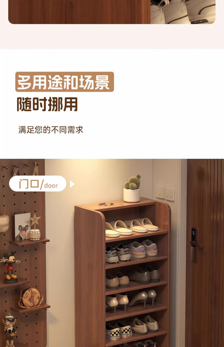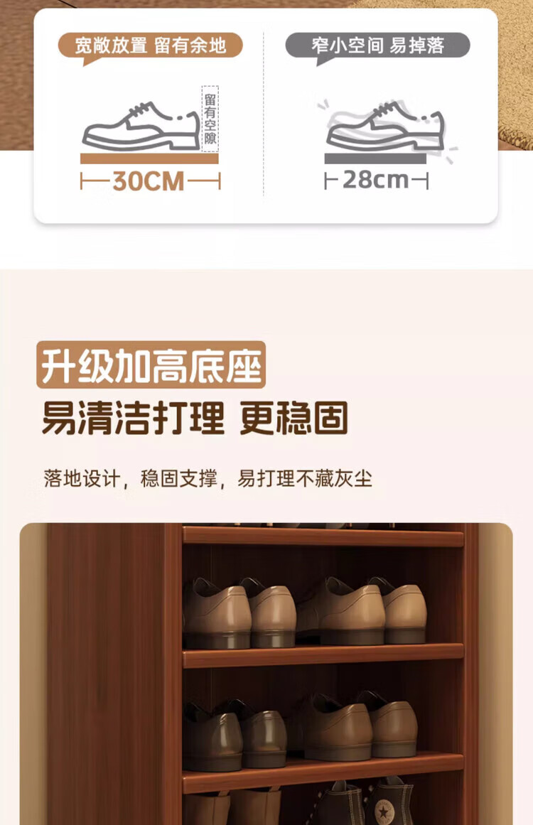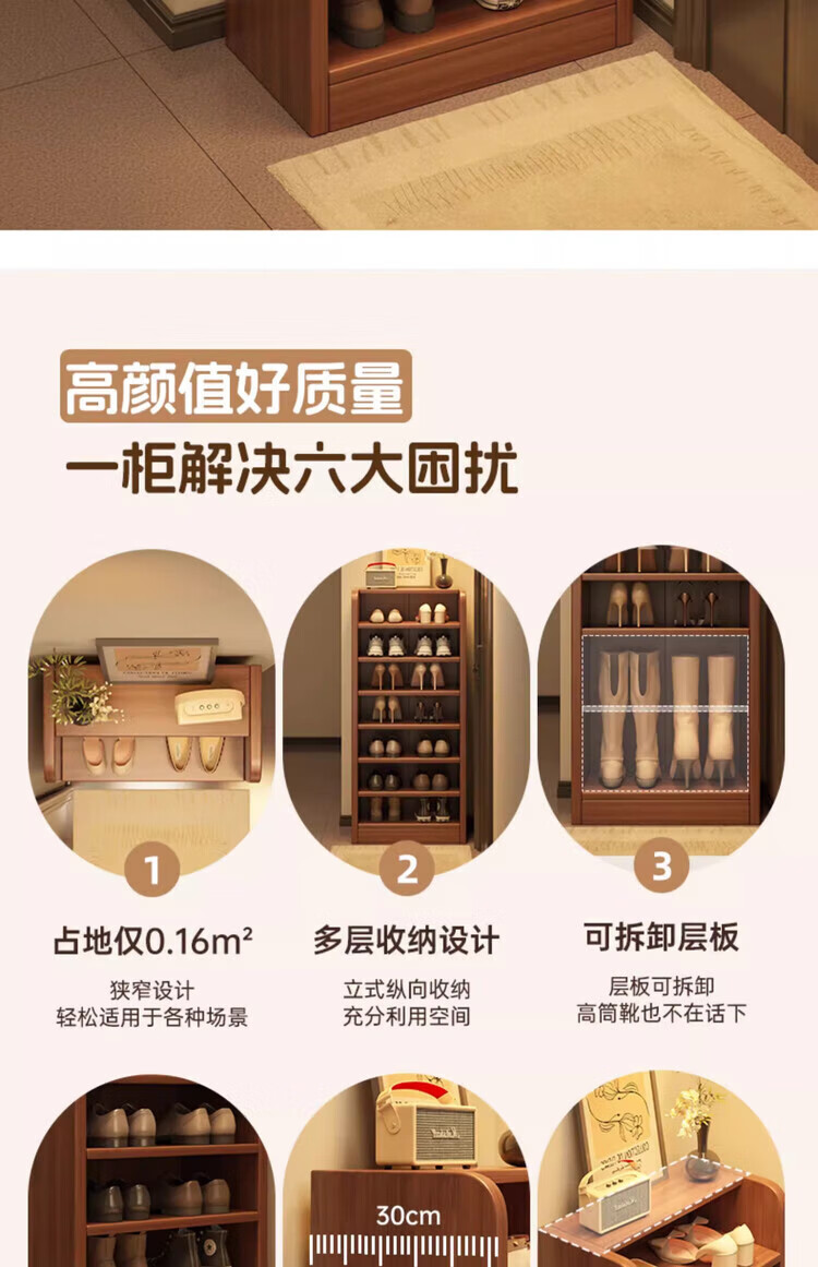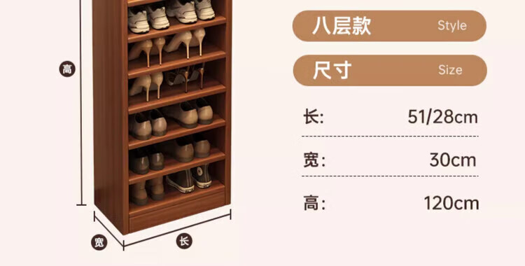Solid wood shoe rack multi-layer home door indoor good-looking shoe storage artifact 2025 new small narrow dust-proof shoe cabinet solid wood core walnut color 51*30*120cm