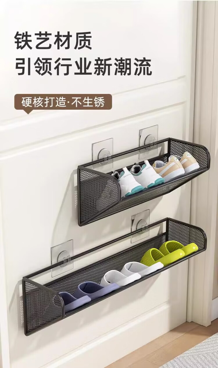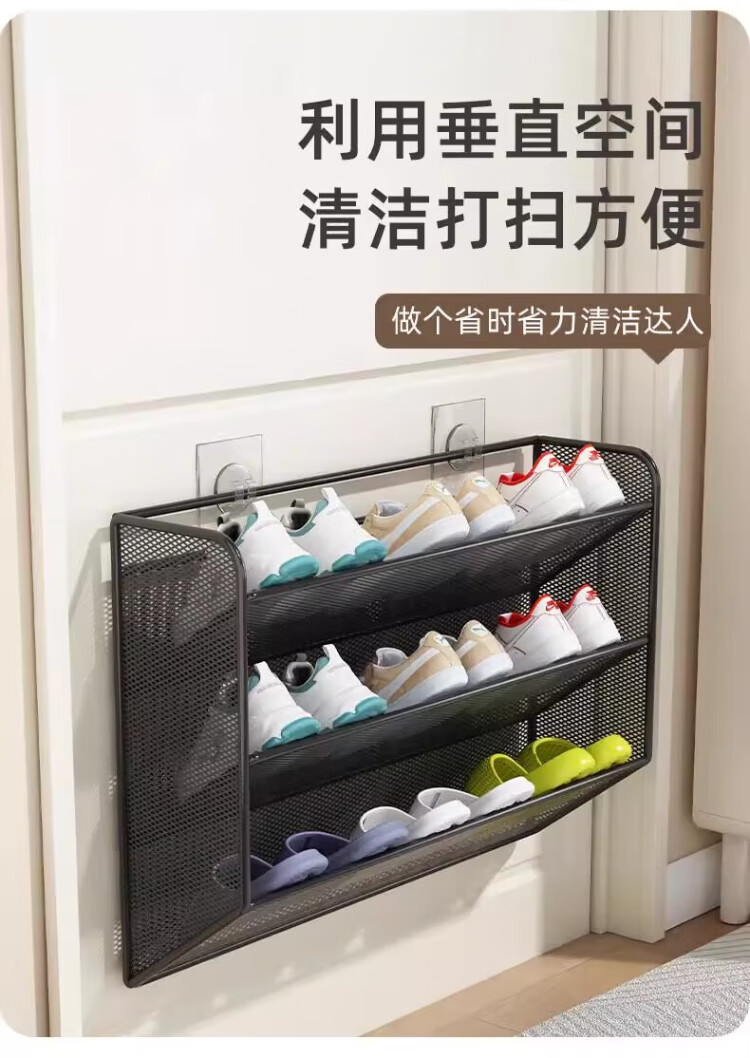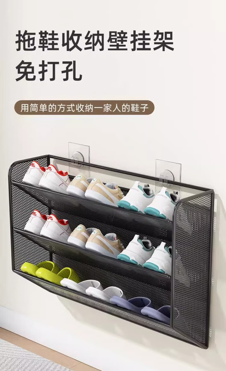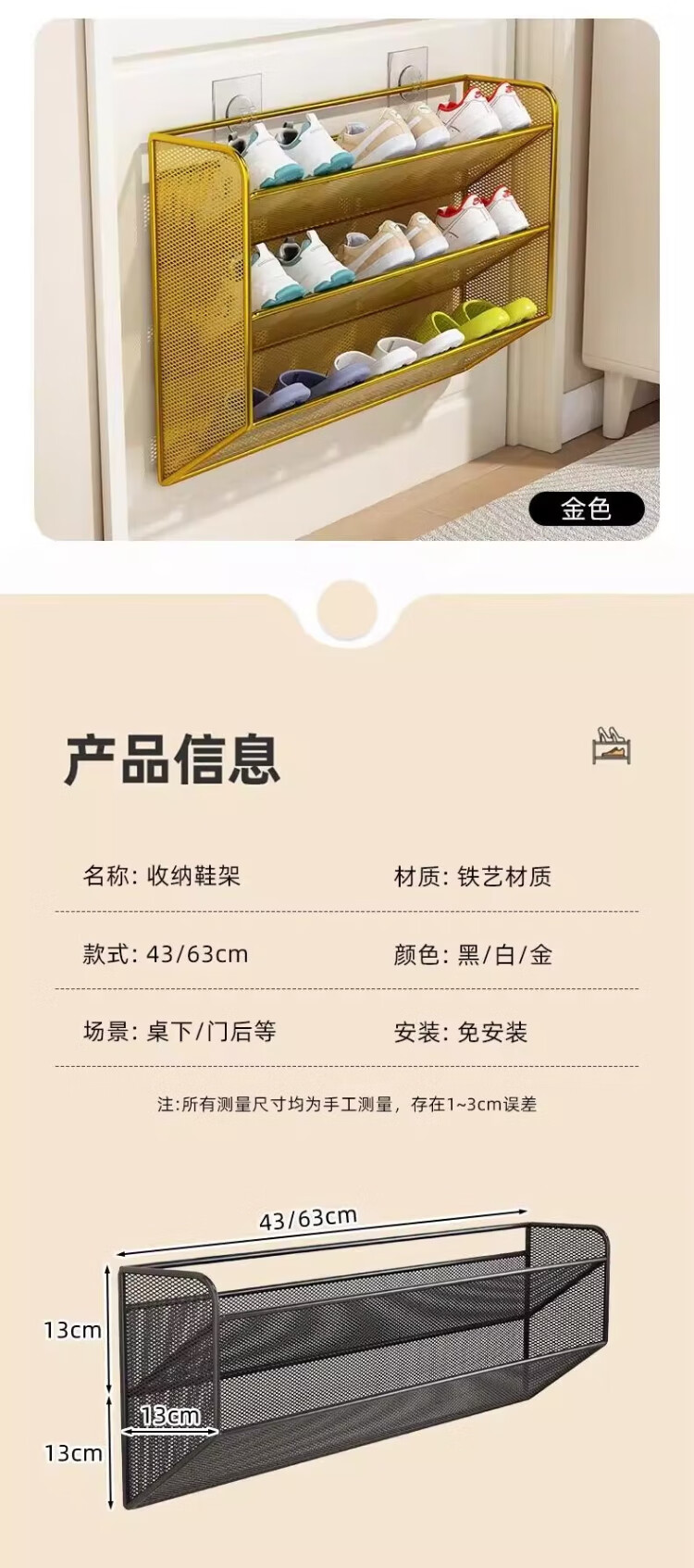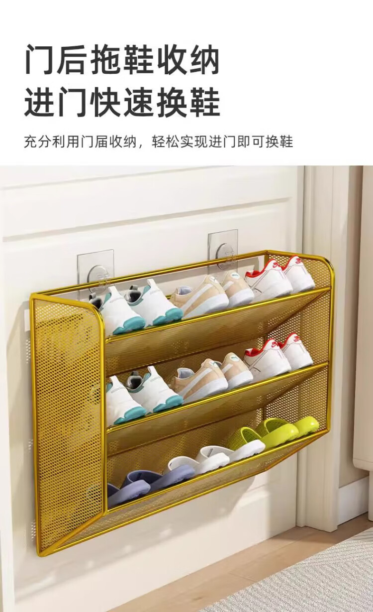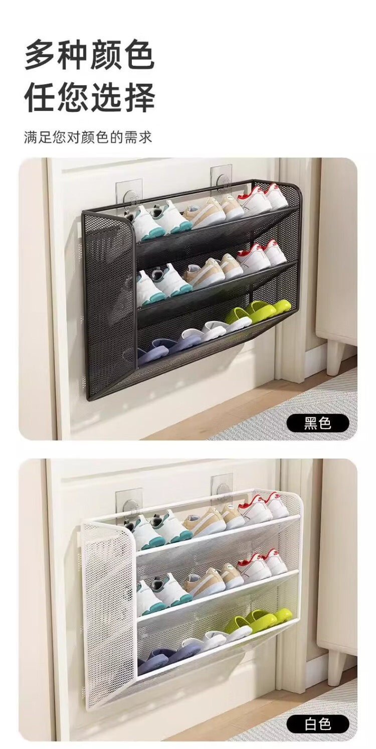 Lin's Boy Shoe Rack Storage Rack Household Door Behind Wall-mounted Storage Artifact Wall Multi-layer Small Shoe Rack Shoe Cabinet No Punching Elegant White_Large Three Layers No Specifications