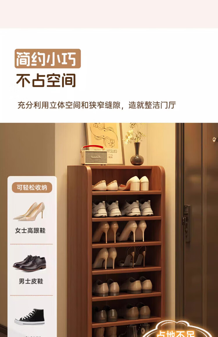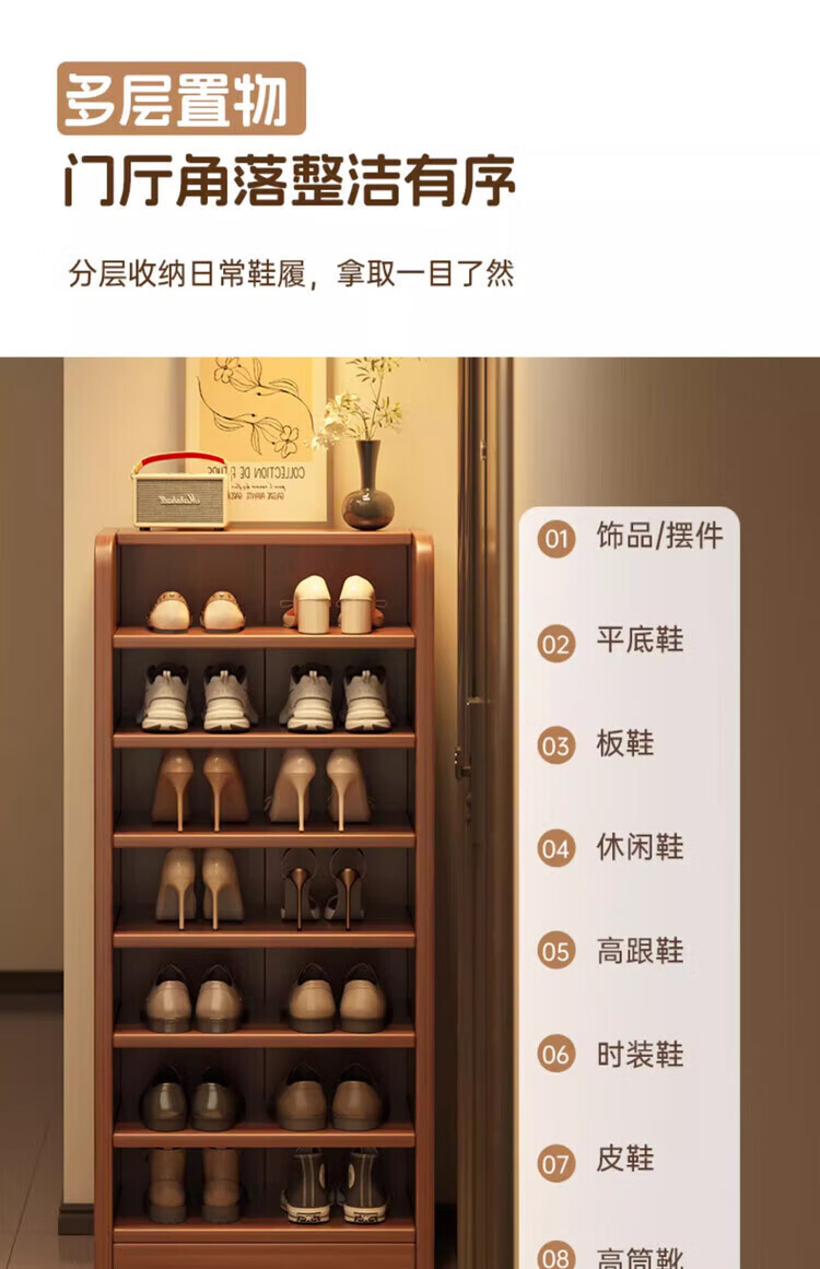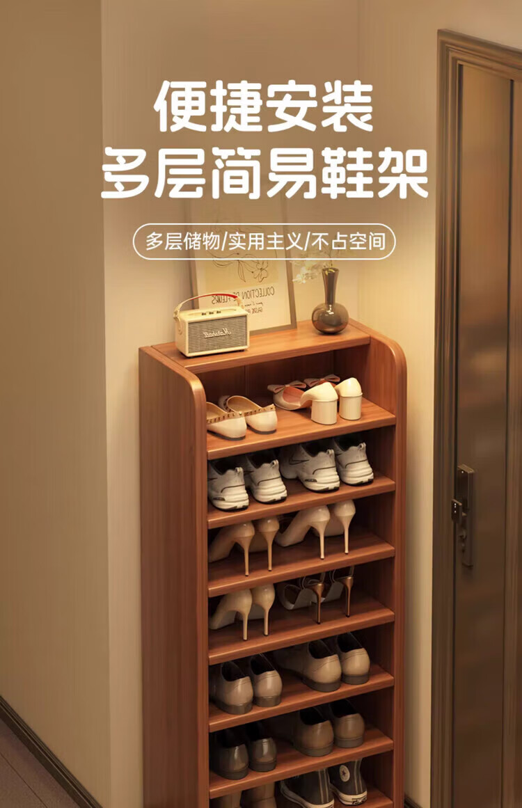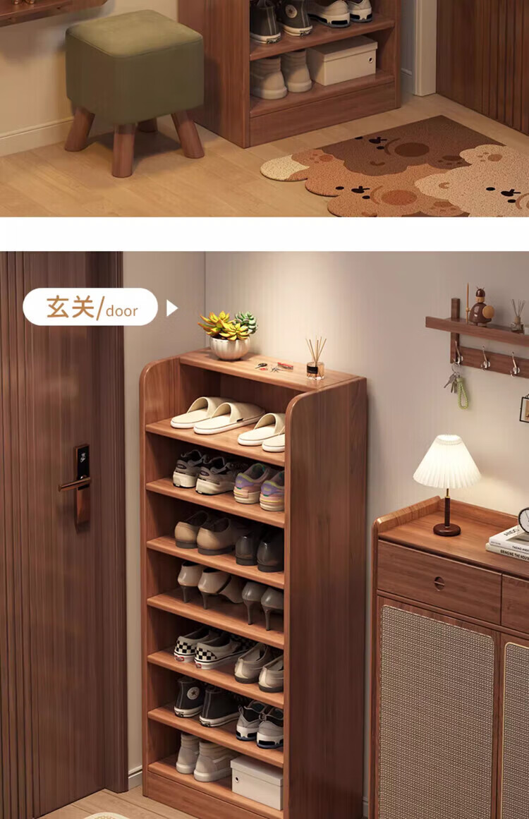 Solid wood shoe rack multi-layer home door indoor good-looking shoe storage artifact 2025 new small narrow dust-proof shoe cabinet solid wood core walnut color 51*30*80cm