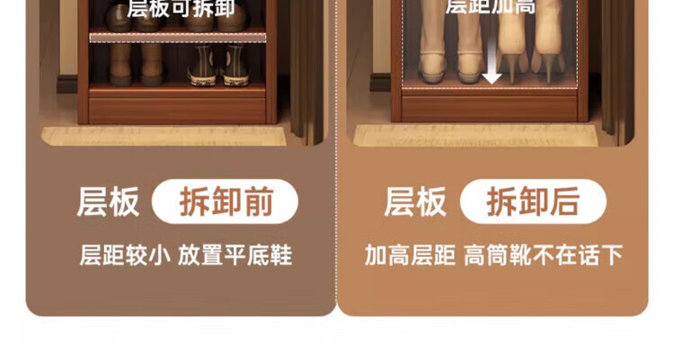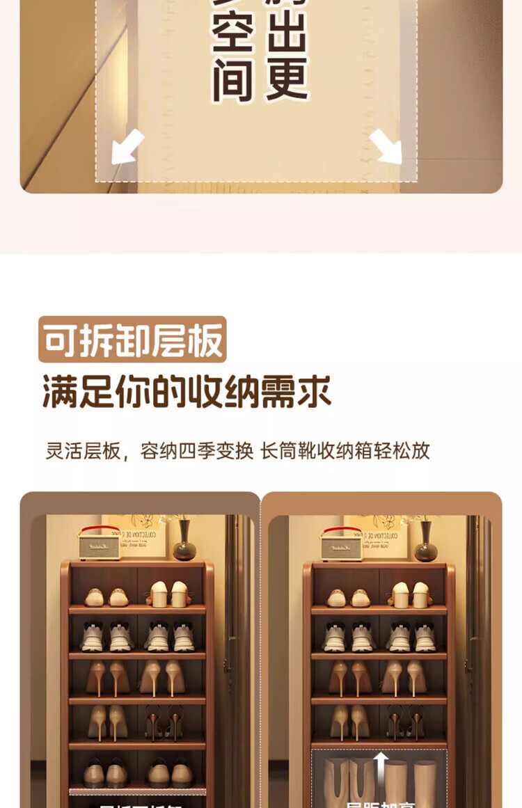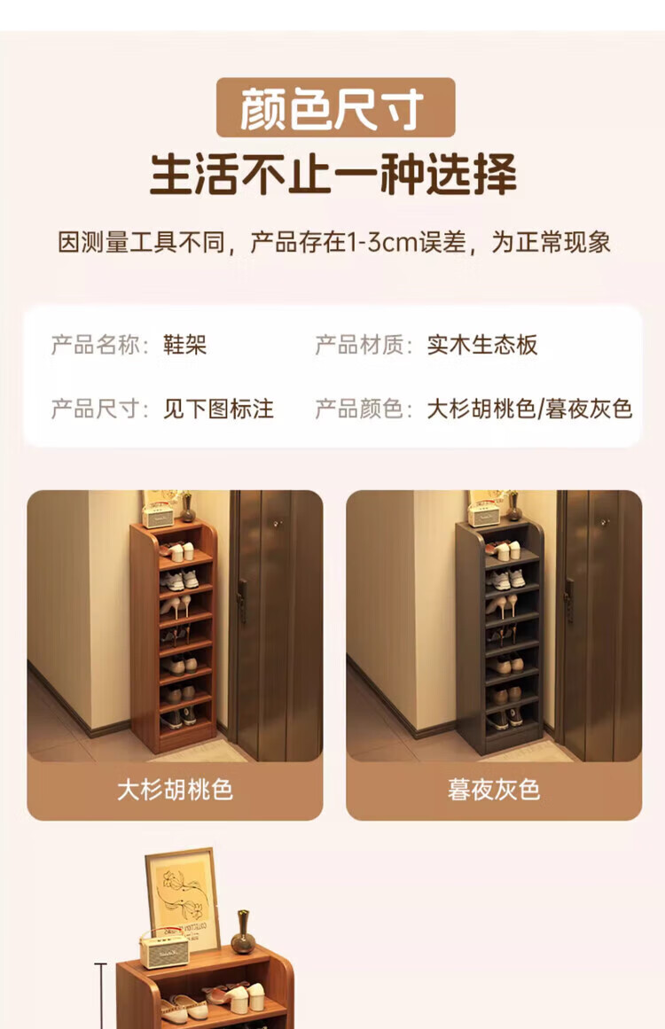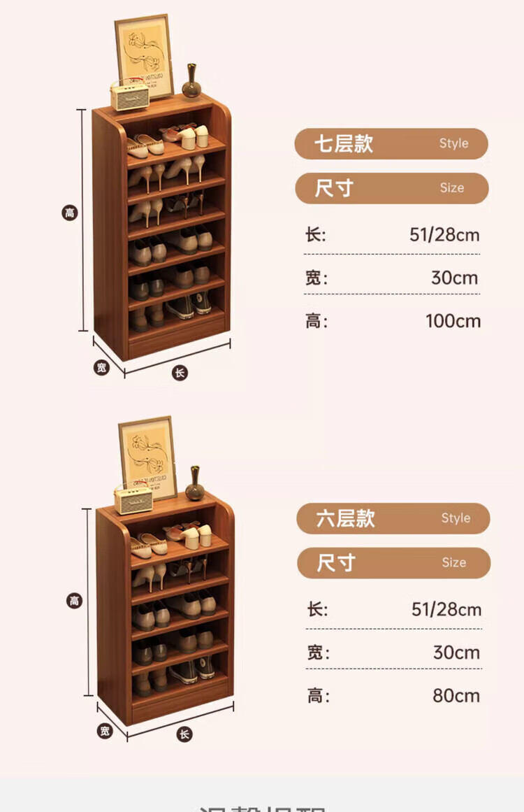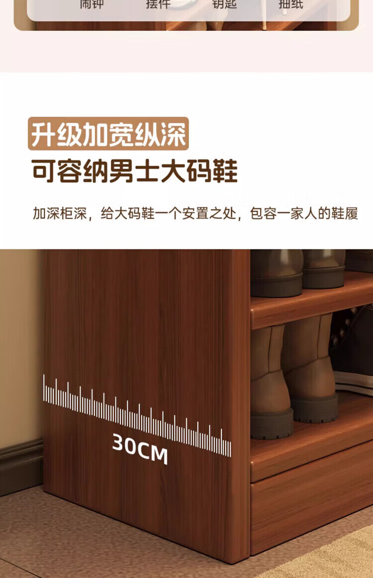 Solid wood shoe rack multi-layer home door indoor good-looking shoe storage artifact 2025 new small narrow dust-proof shoe cabinet solid wood core walnut color 51*30*80cm