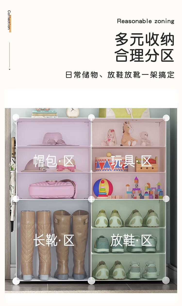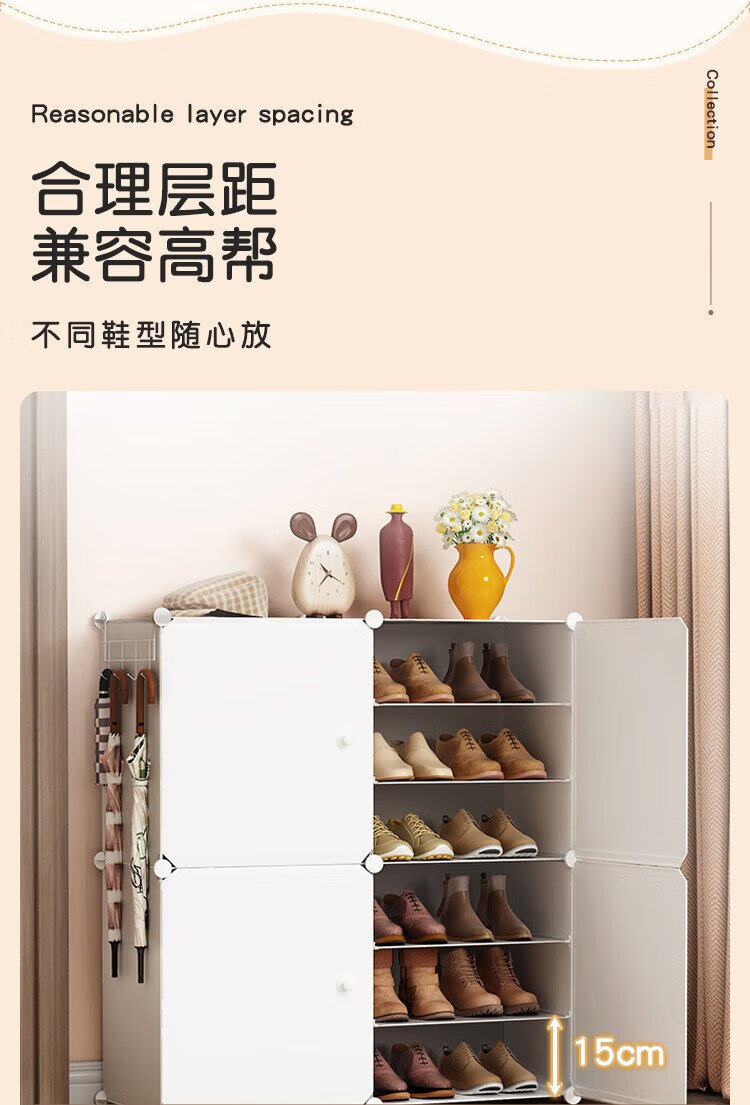 Anya simple shoe cabinet door shoe rack multi-layer dustproof entrance plastic storage resin assembly two rows six layers