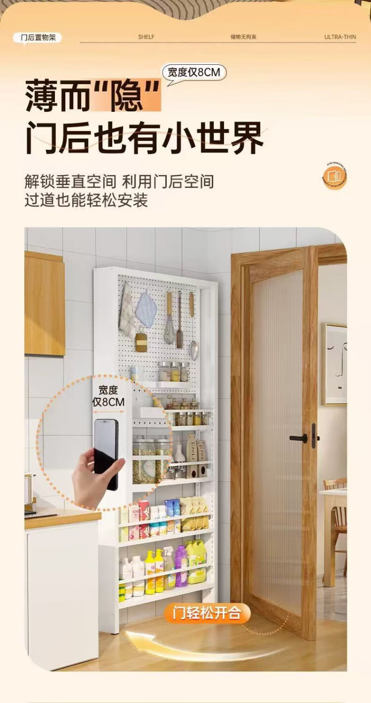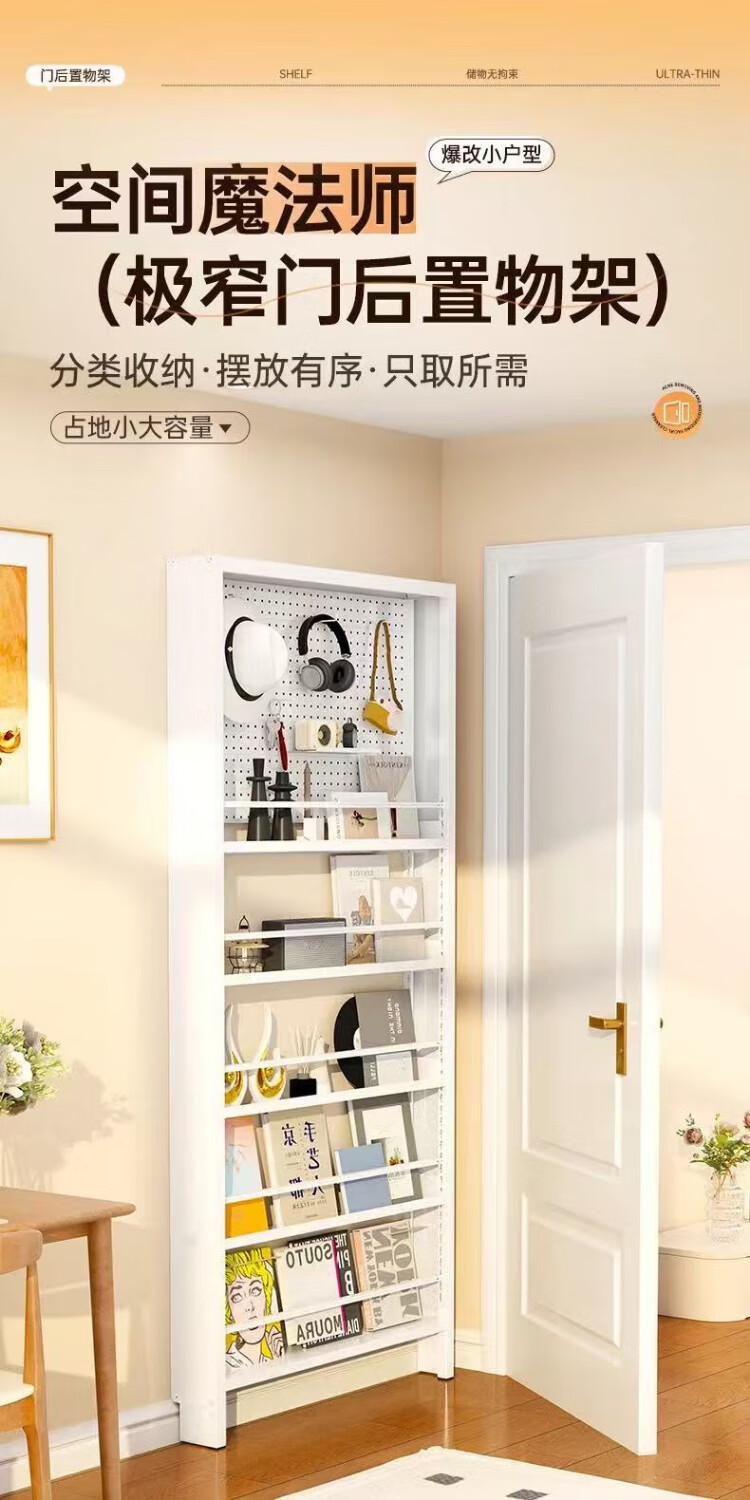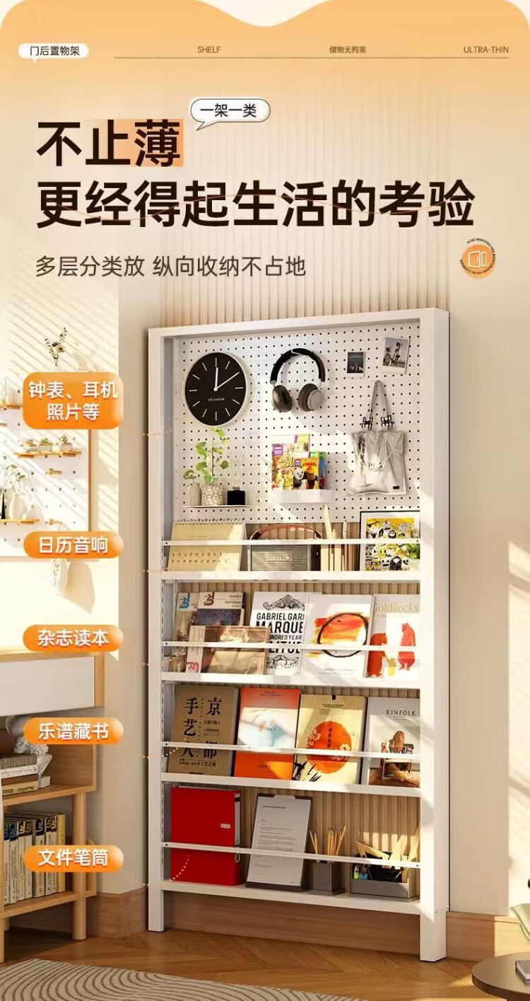 Fukai Xiangmen back hole board storage rack ultra-thin bookshelf one wall extremely narrow floor-standing storage locker three 60*150