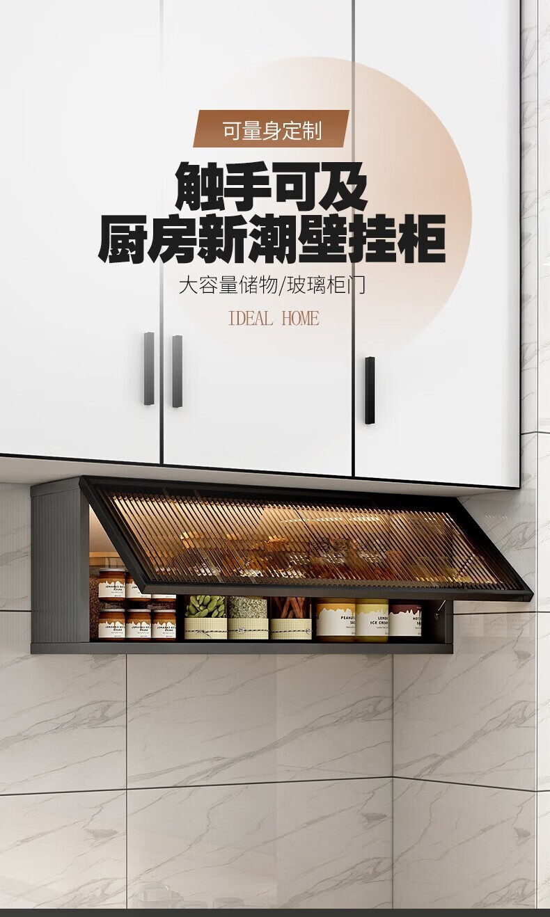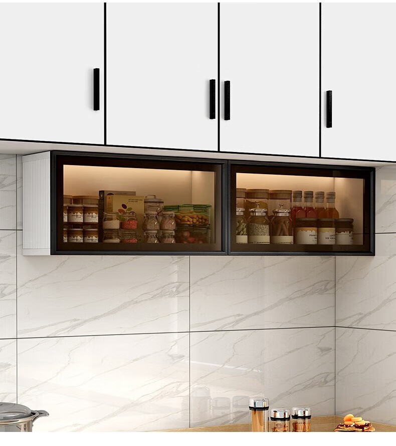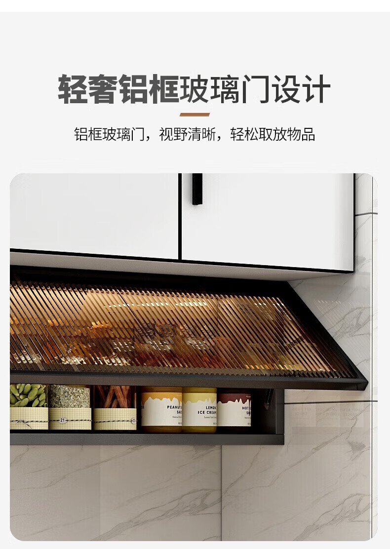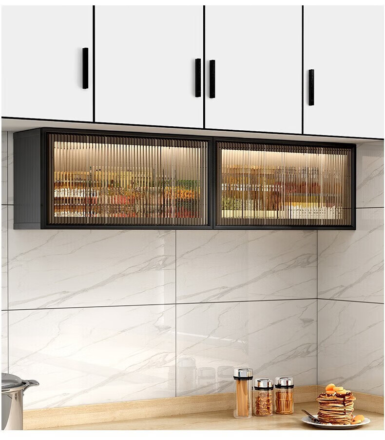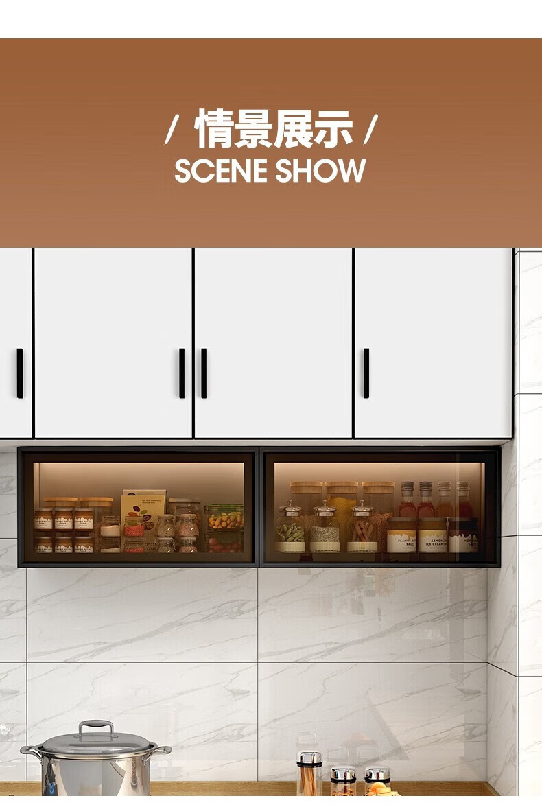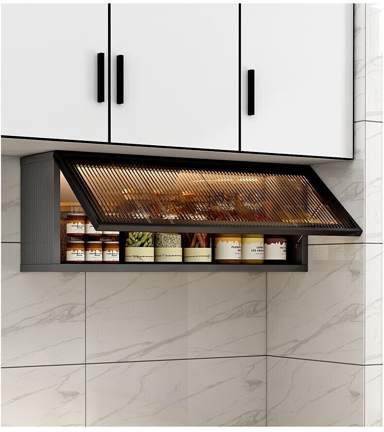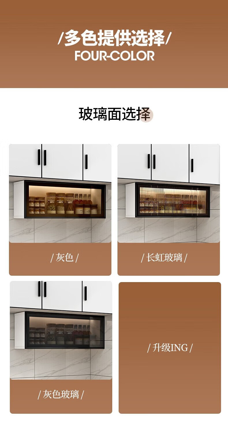Pinjing aluminum alloy wall cabinet kitchen wall cabinet lower spice cabinet storage cabinet glass flip cabinet honeycomb aluminum wall cabinet storage rack flip up width 50 gray cabinet height 33 depth 22 no back panel no light brown glass