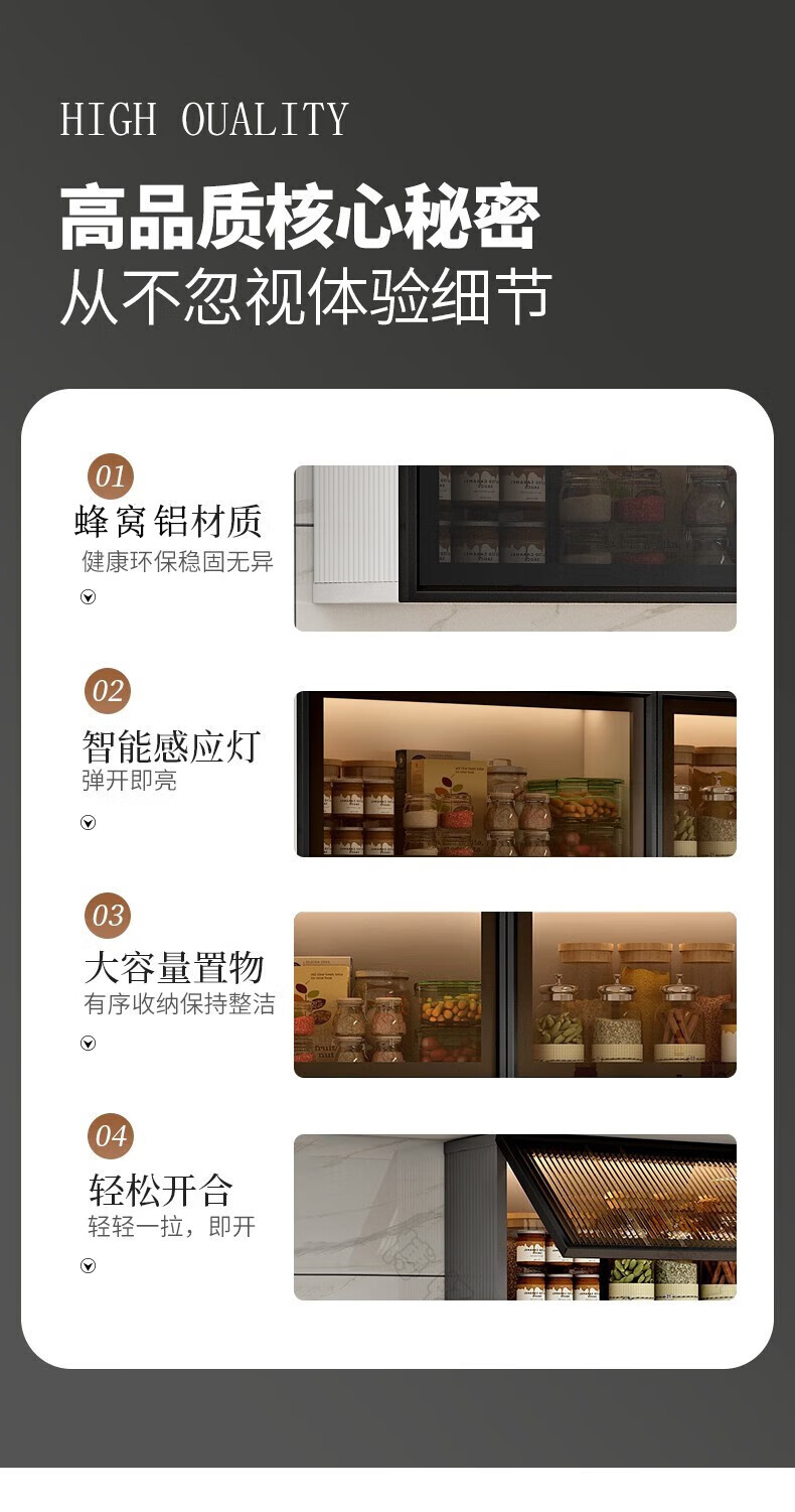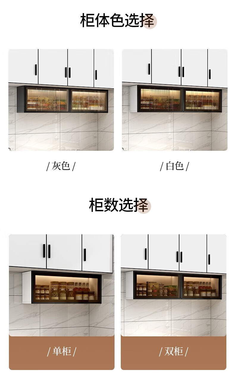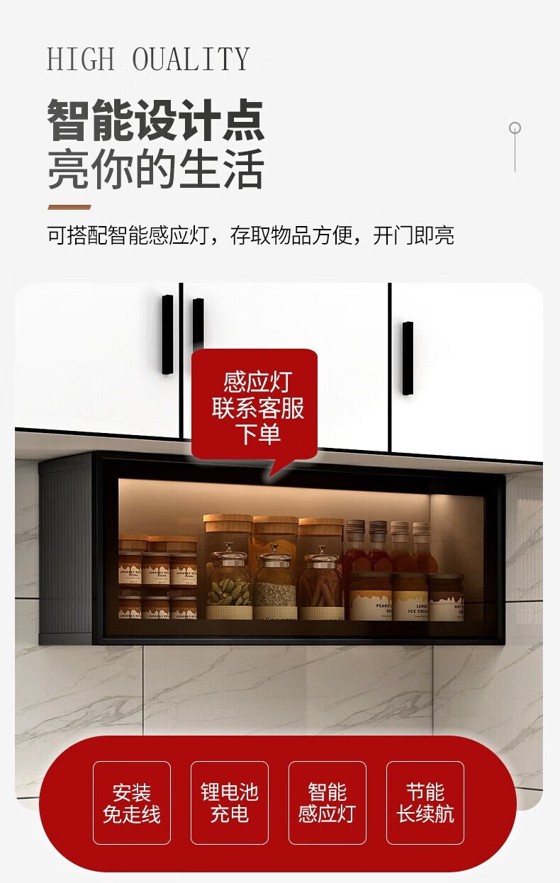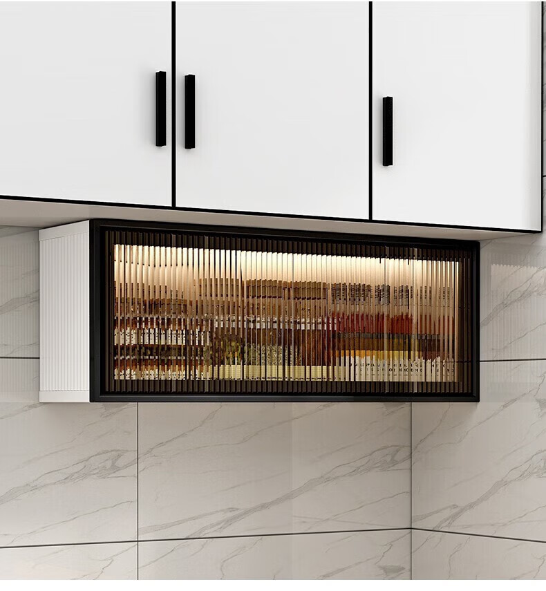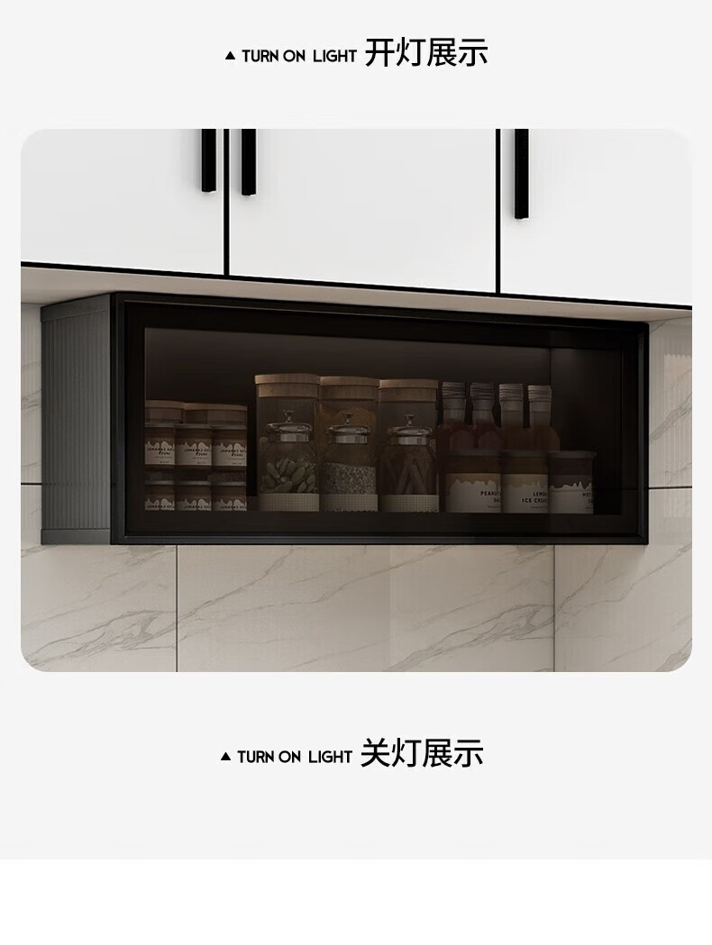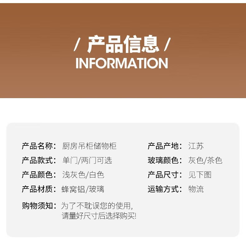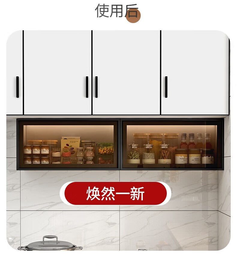 Pinjing aluminum alloy wall cabinet kitchen wall cabinet lower spice cabinet storage cabinet glass flip cabinet honeycomb aluminum wall cabinet storage rack flip up width 50 gray cabinet height 33 depth 22 no back panel no light brown glass