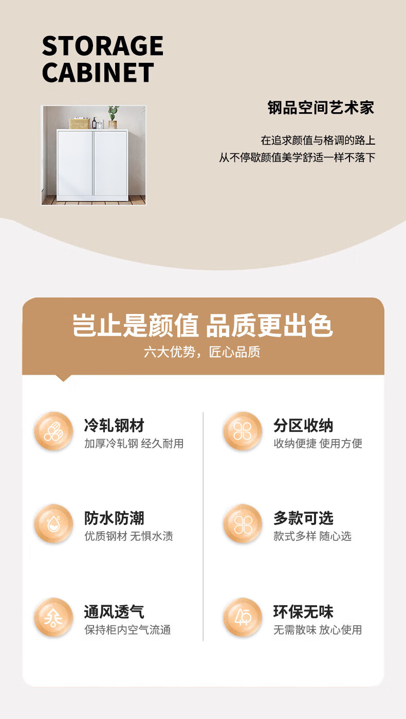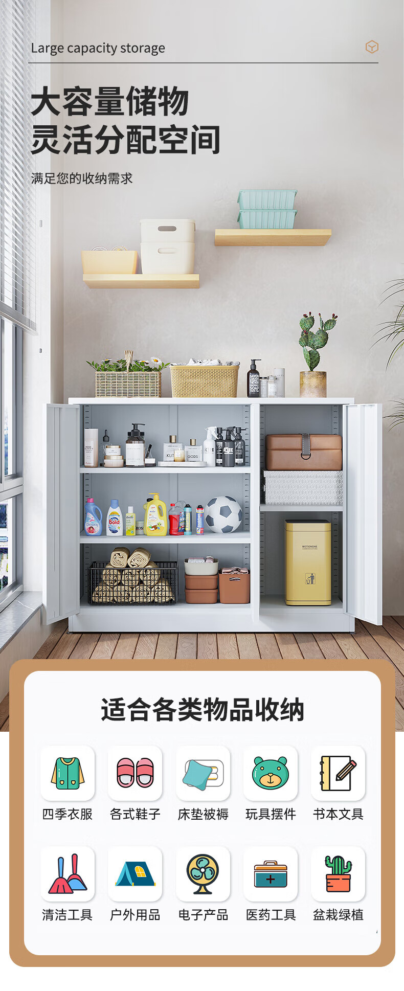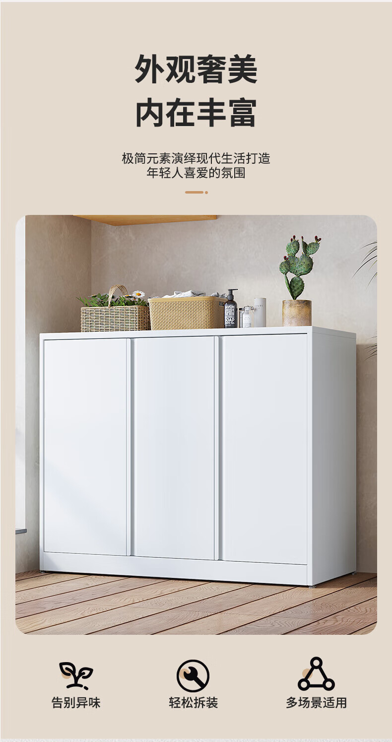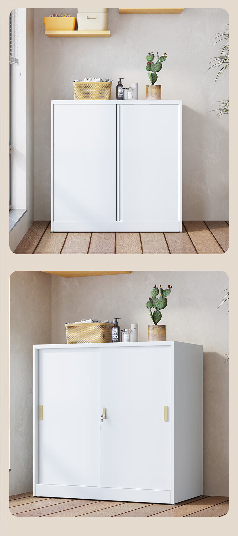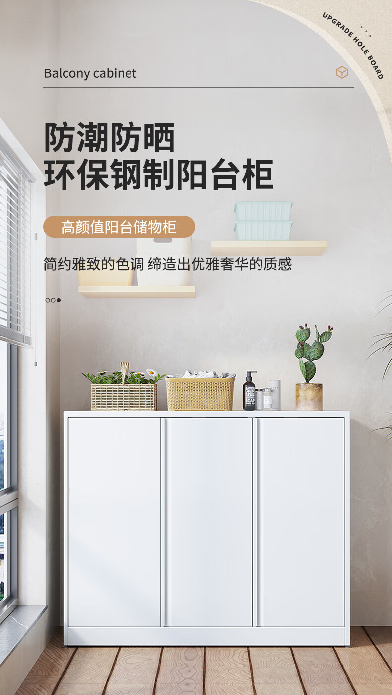 Balcony cabinet storage cabinet low cabinet waterproof corridor floor-standing multi-layer iron bay window cabinet household steel storage cabinet password lock length 120 width 50 height 100 three open - white