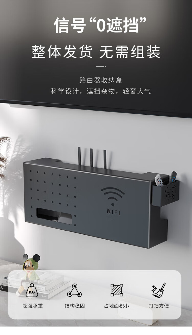 Shuranjia router storage box high-looking wireless wifi TV set-top box storage rack light cat storage rack black 06