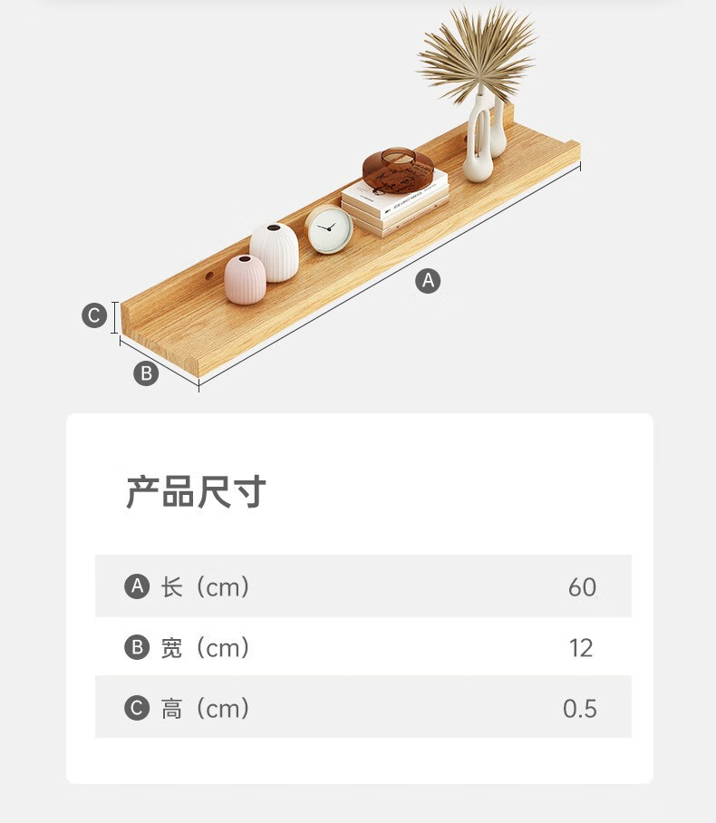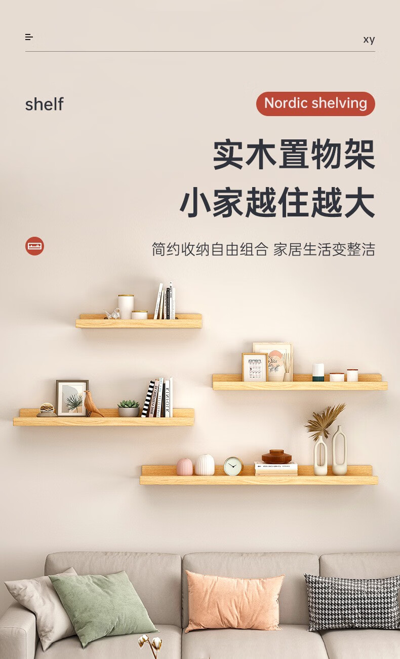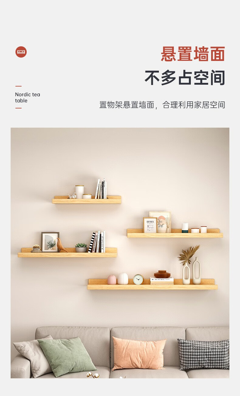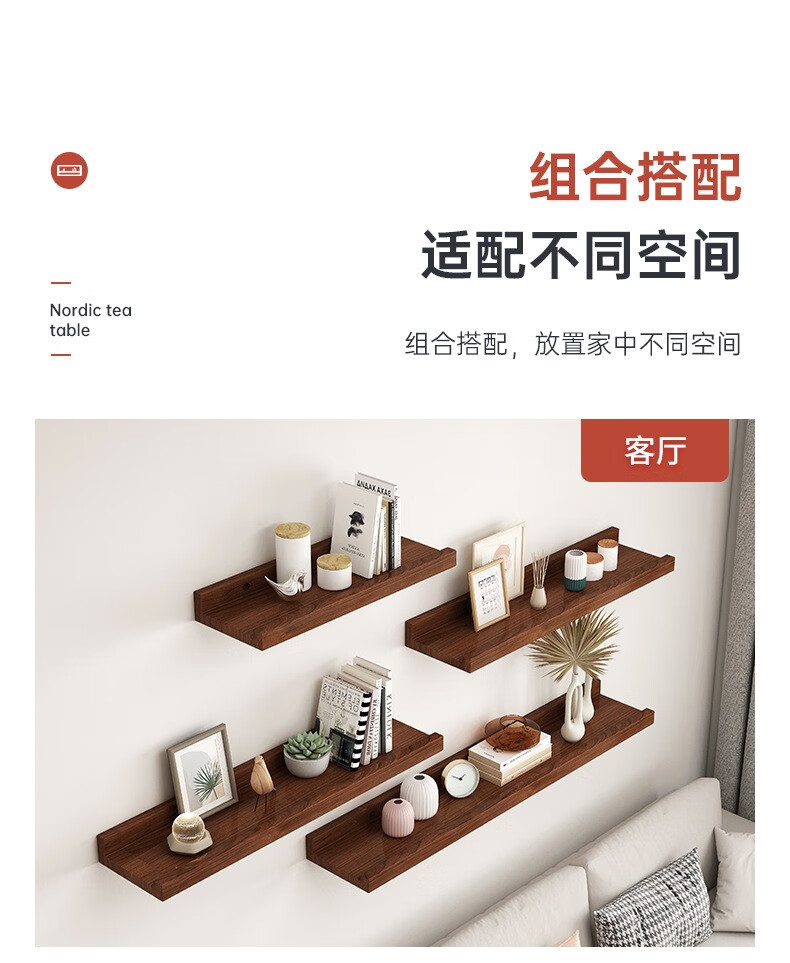 Yupinjia solid wood partition wall storage rack, wall punch-free one-word shelf storage rack, solid wood color 60*12