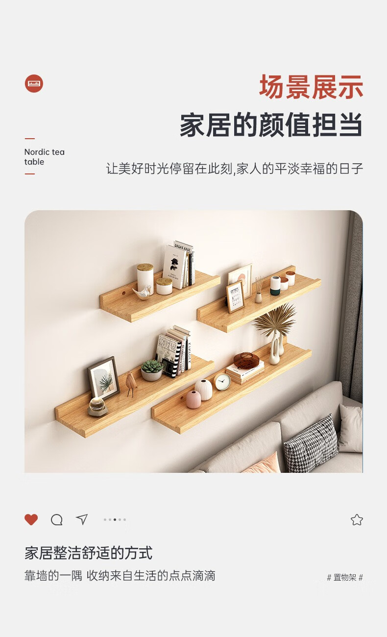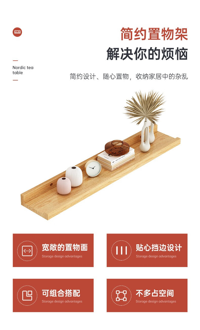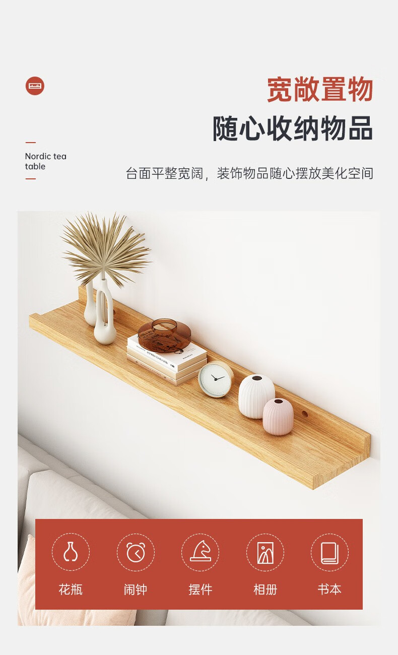 Yupinjia solid wood partition wall storage rack, wall punch-free one-word shelf storage rack, solid wood color 60*12