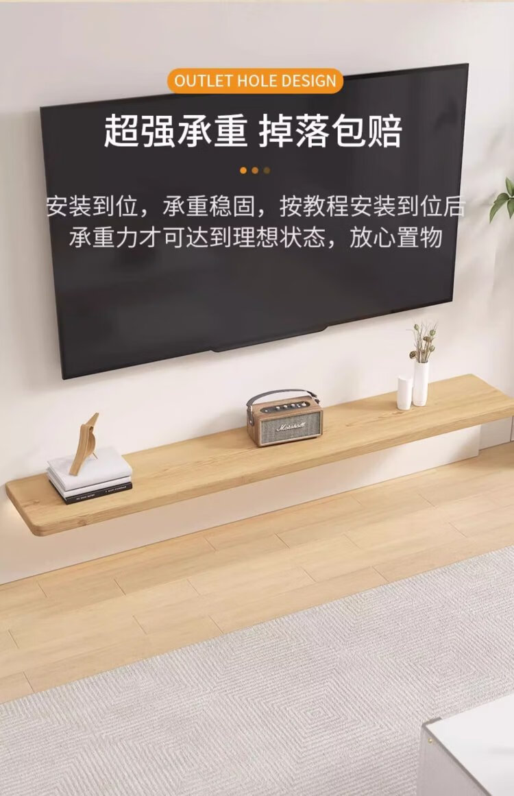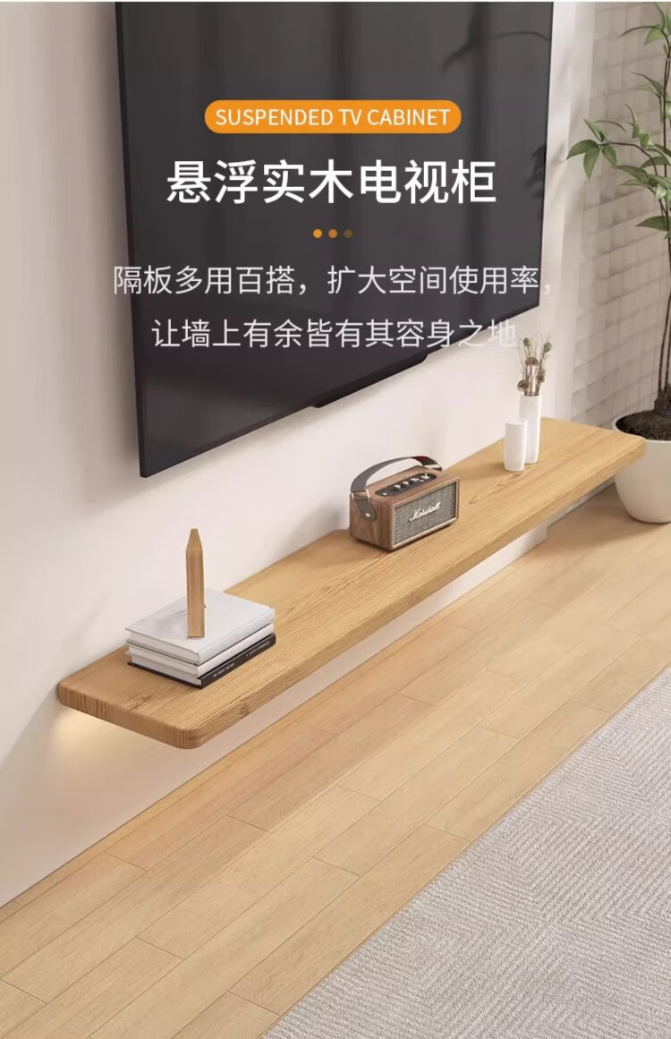 Lin's boy sofa rear shelf living room wall solid wood paint-free partition suspended wall TV cabinet one-word partition solid wood color 80*24cm upgraded and thickened