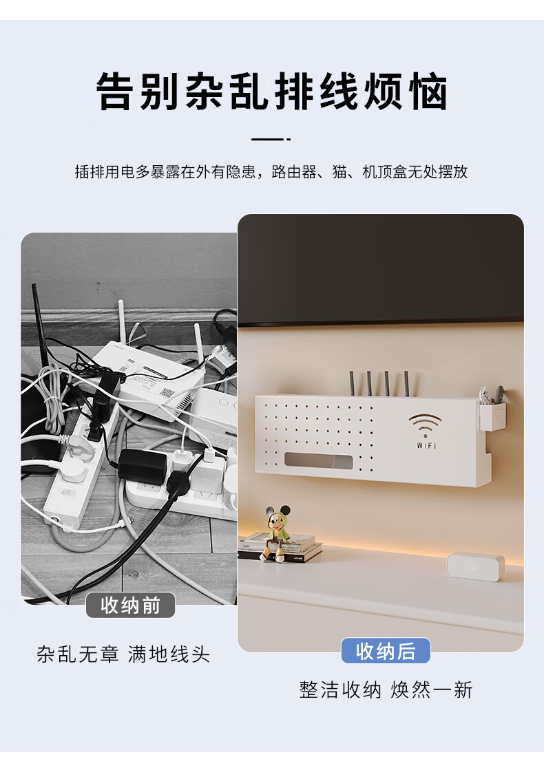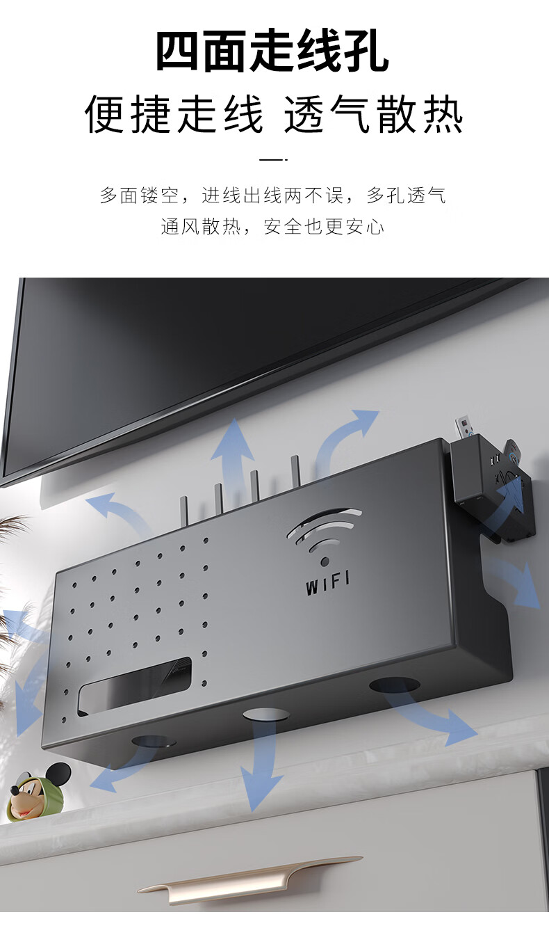 Suijiang wall-mounted router storage box TV set-top box storage rack wireless wifi light cat placement rack blocking decoration router storage rack customizable size ready to disassemble and use hollow out does not block the signal