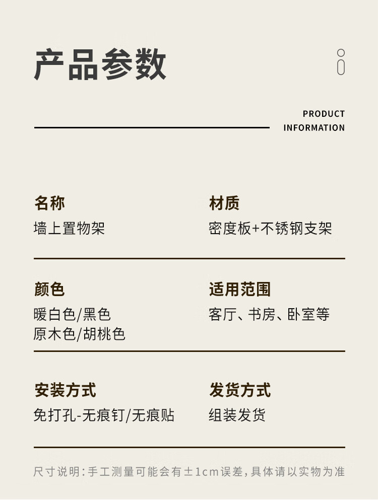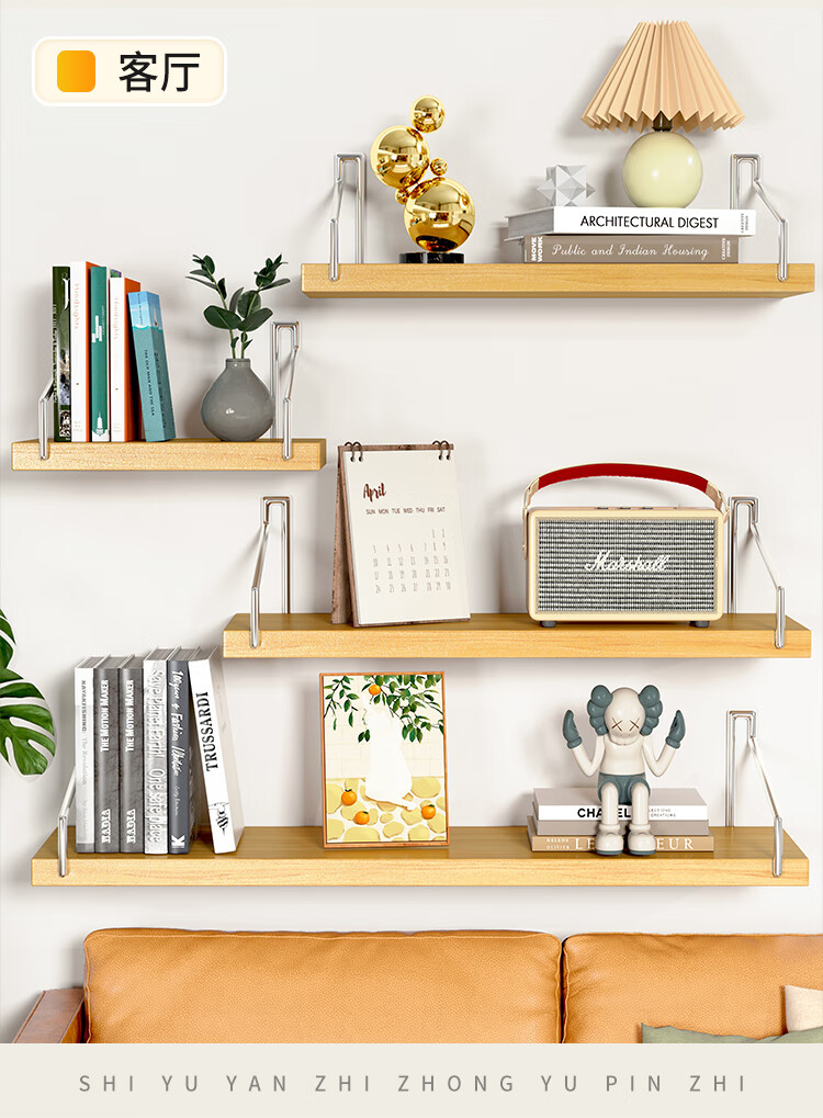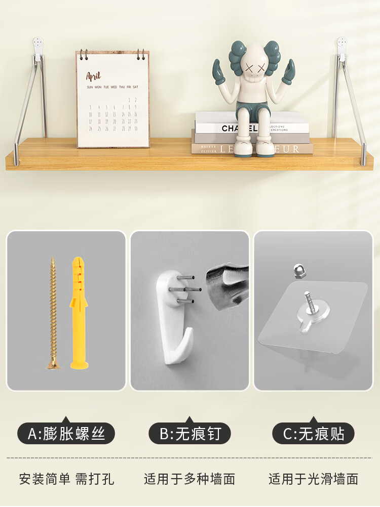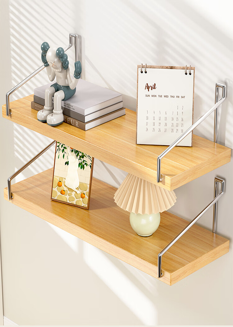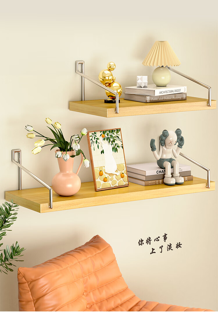 All without punching holes, wall storage rack, bedside wall-mounted partition, living room wall projector, router shelf, wall-mounted bookshelf, solid wood color 40*20 (two pieces)
