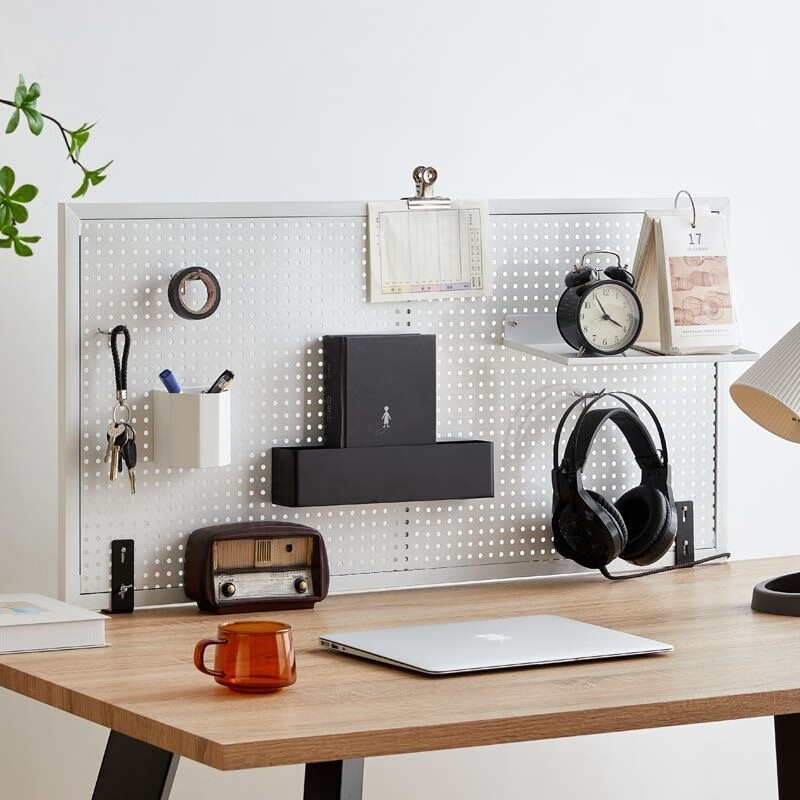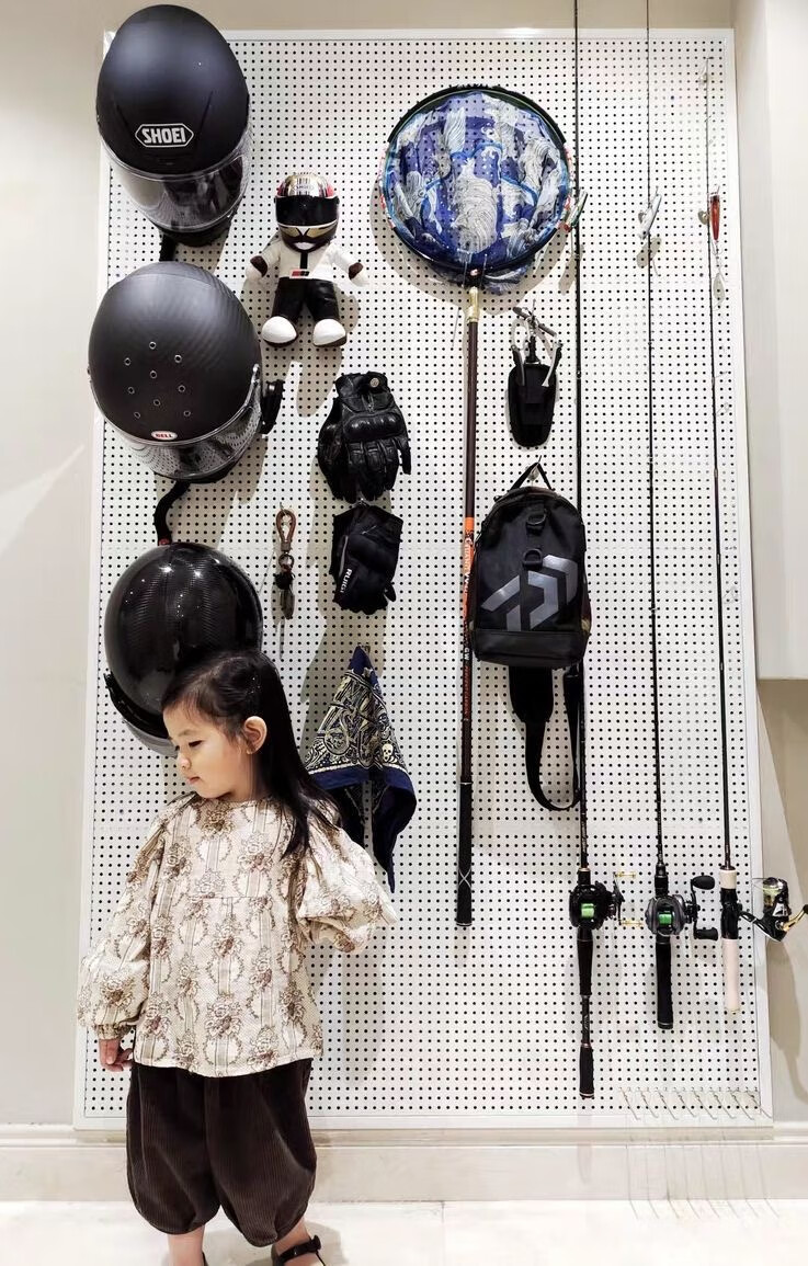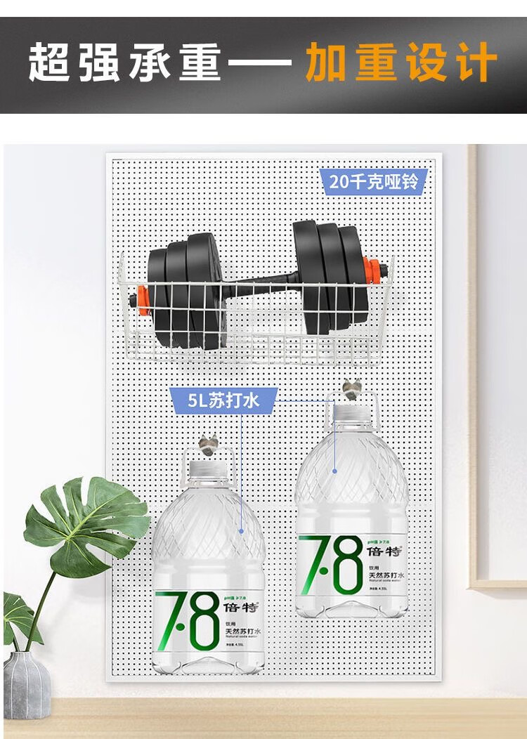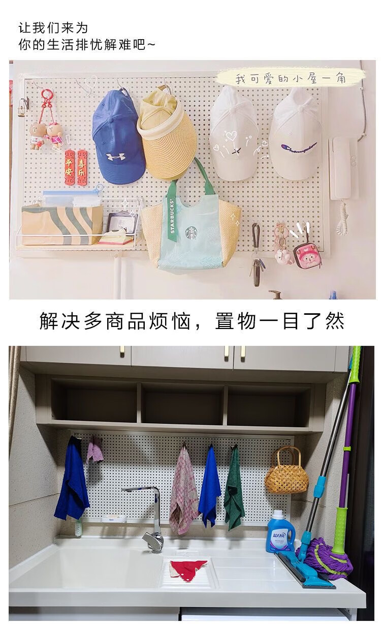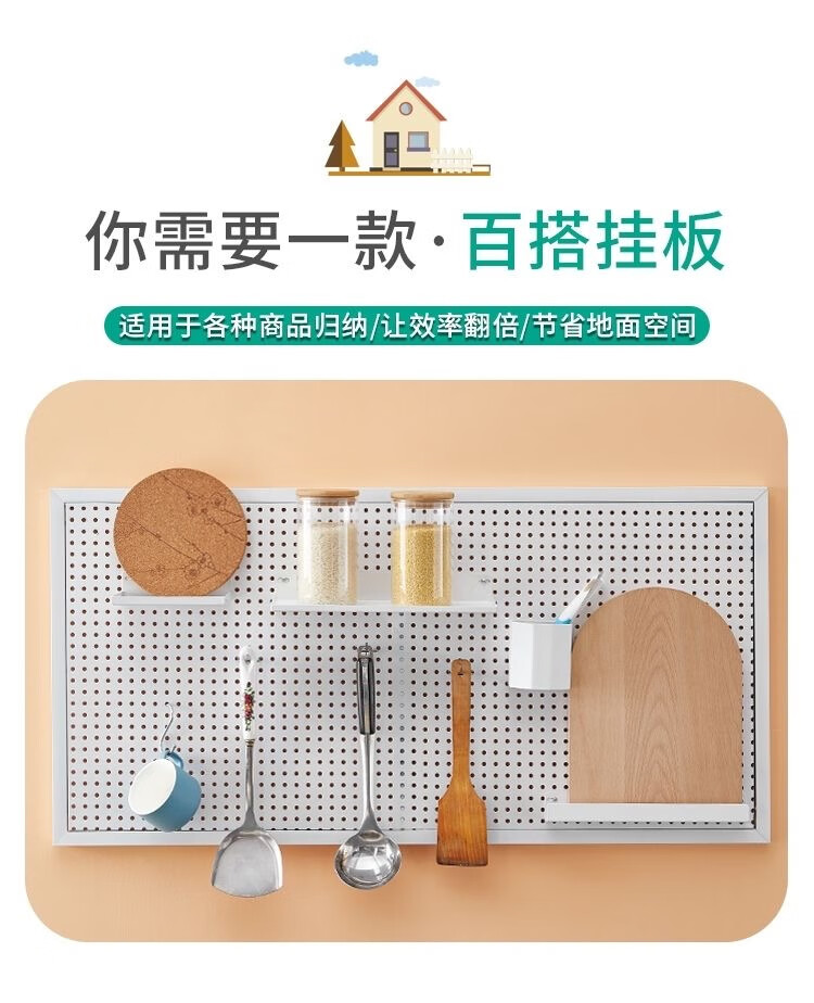 Kashiman round hole hole board storage rack shelf steel multi-functional storage hanging socks jewelry hardware tools hanging board wall 40*60 thickened version (free 10 10cm hooks) white