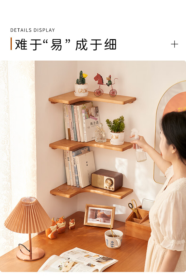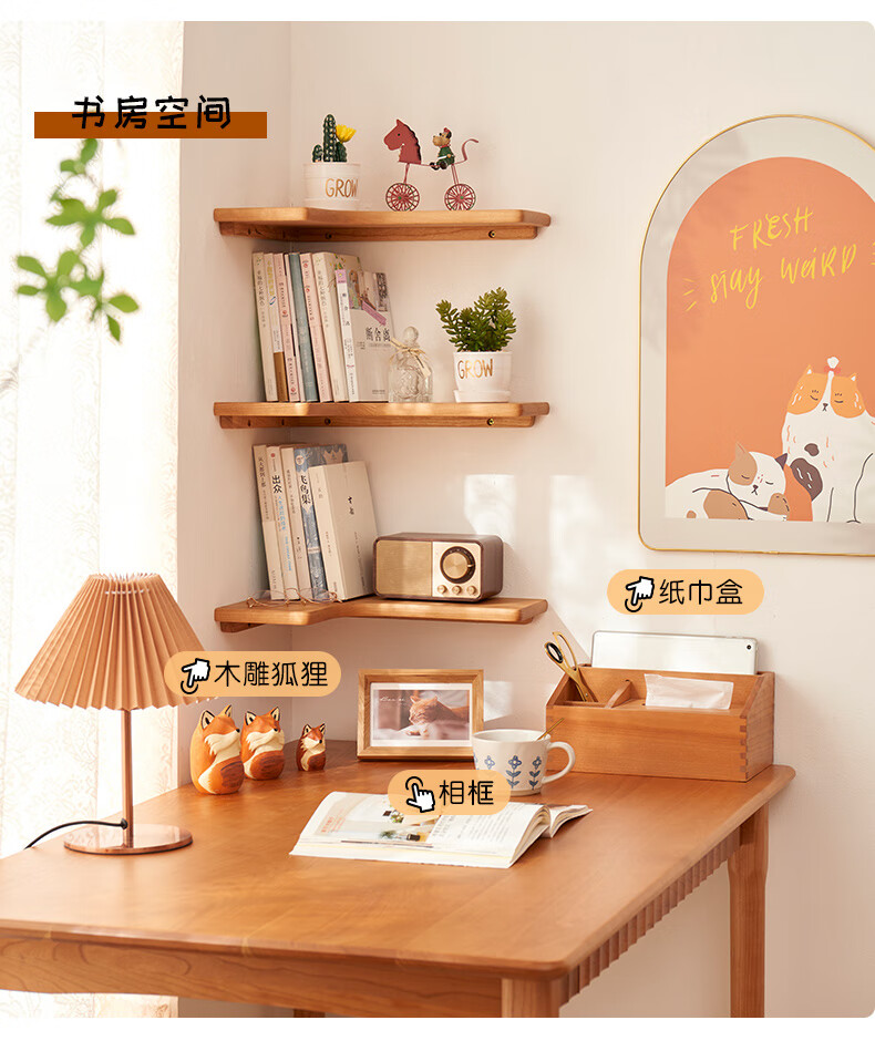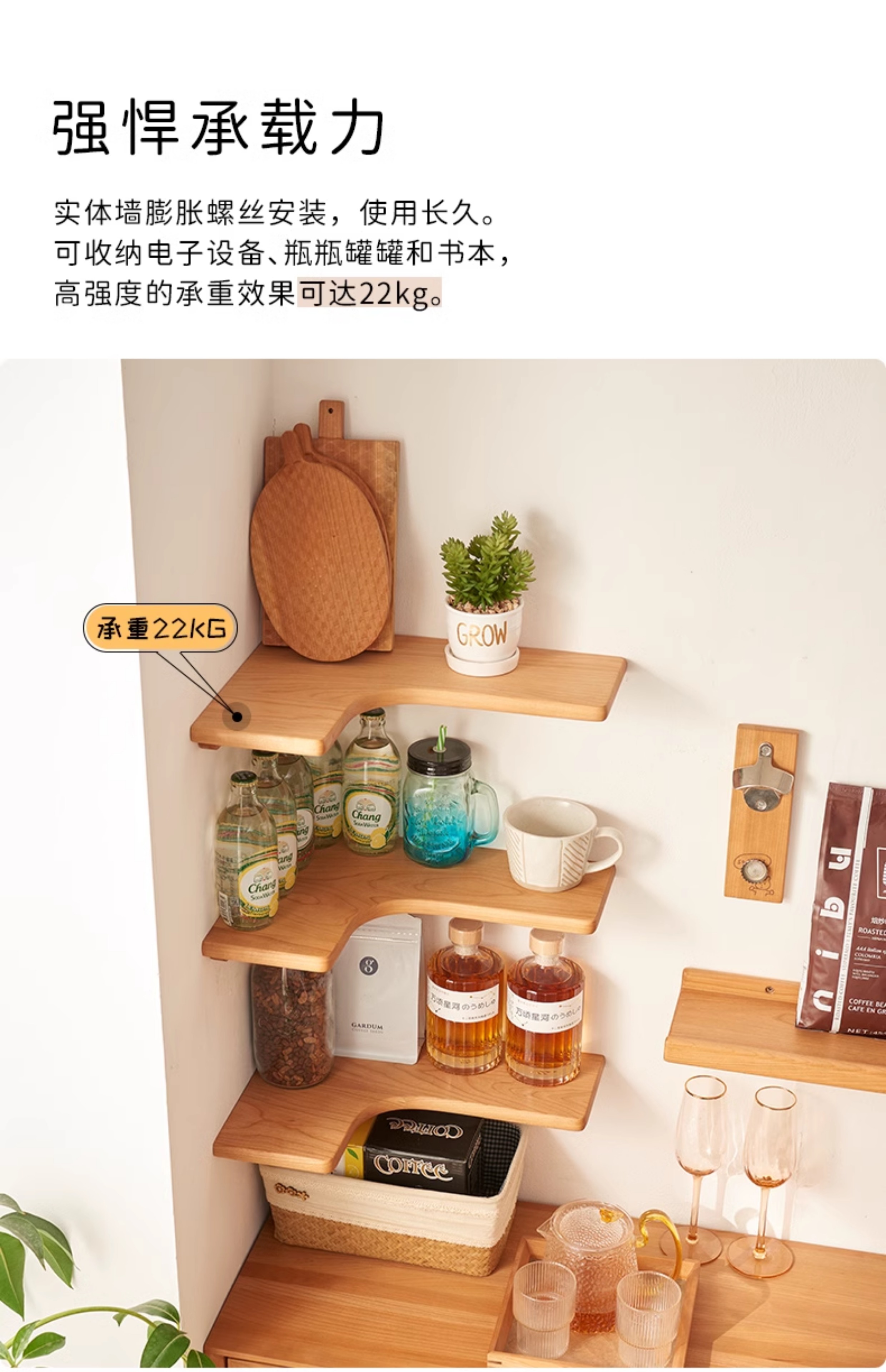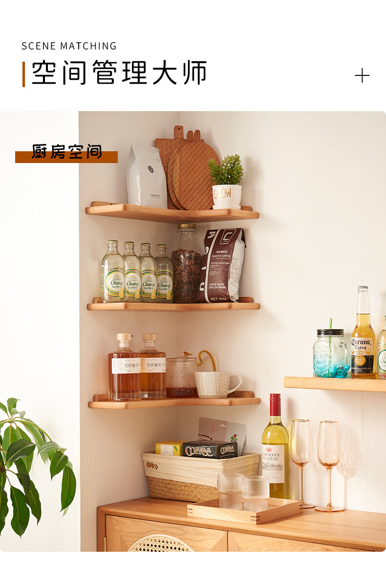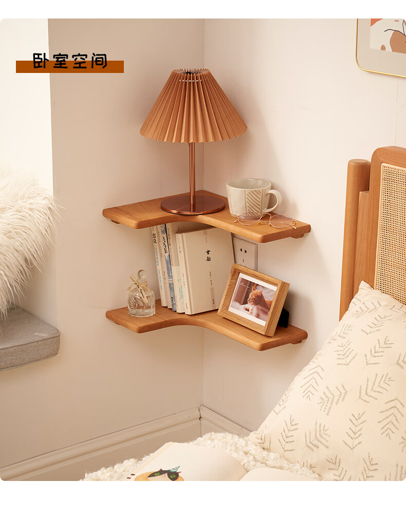 Zhixinmuwang solid wood corner shelf storage rack cherry wood punch-free bedroom corner shelf study wall tripod bookshelf corner shelf short left and long right, single layer, 390mm