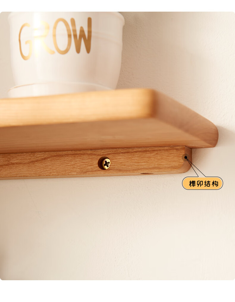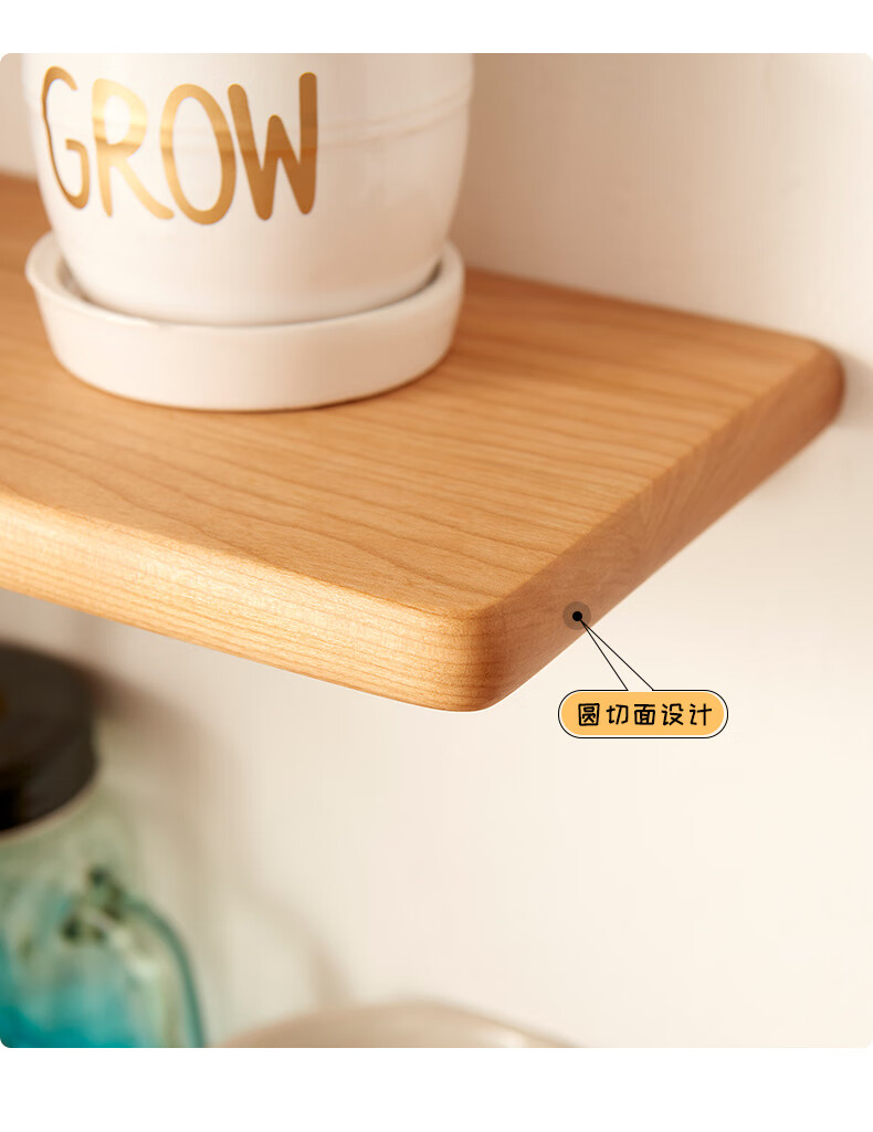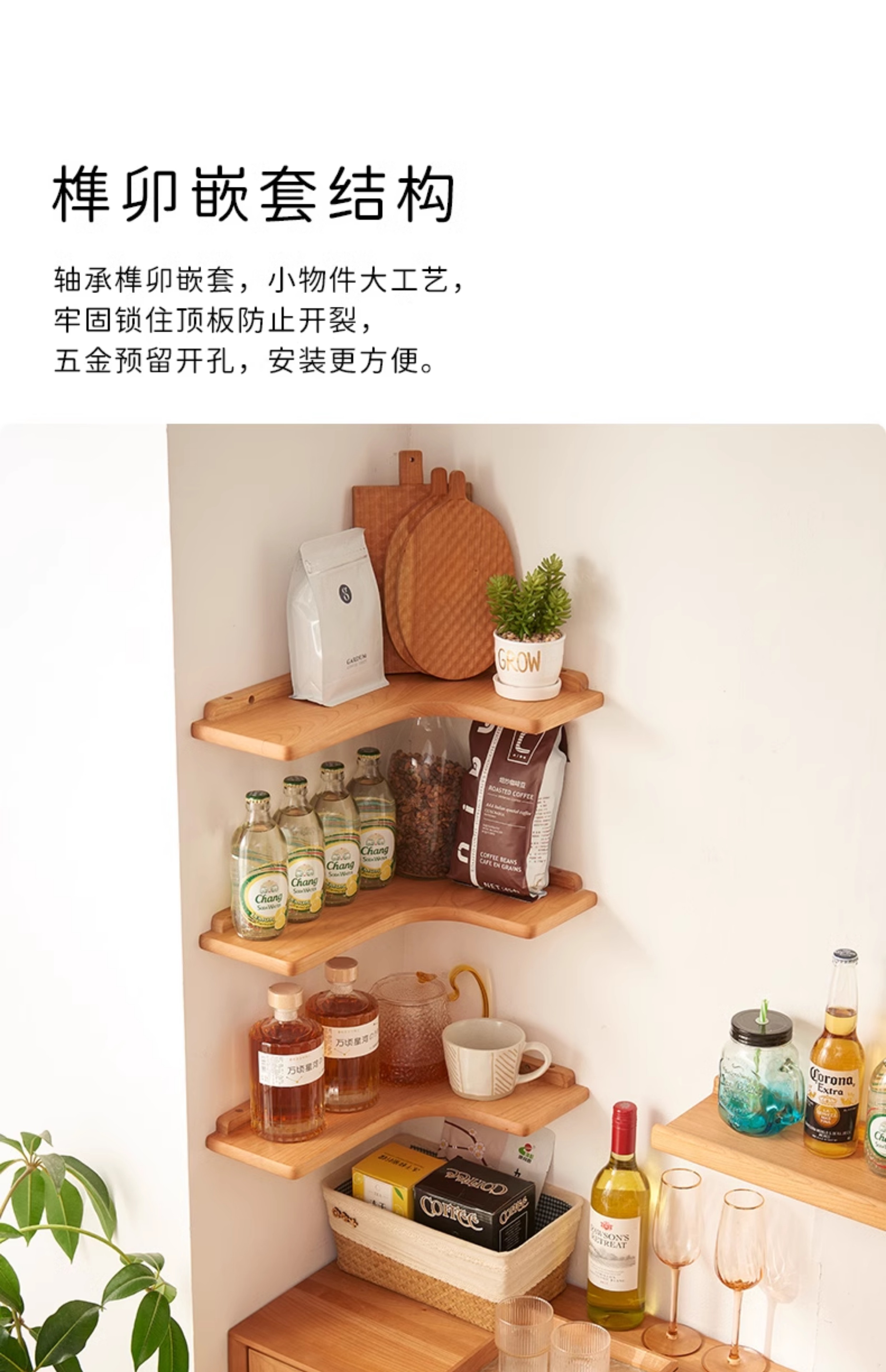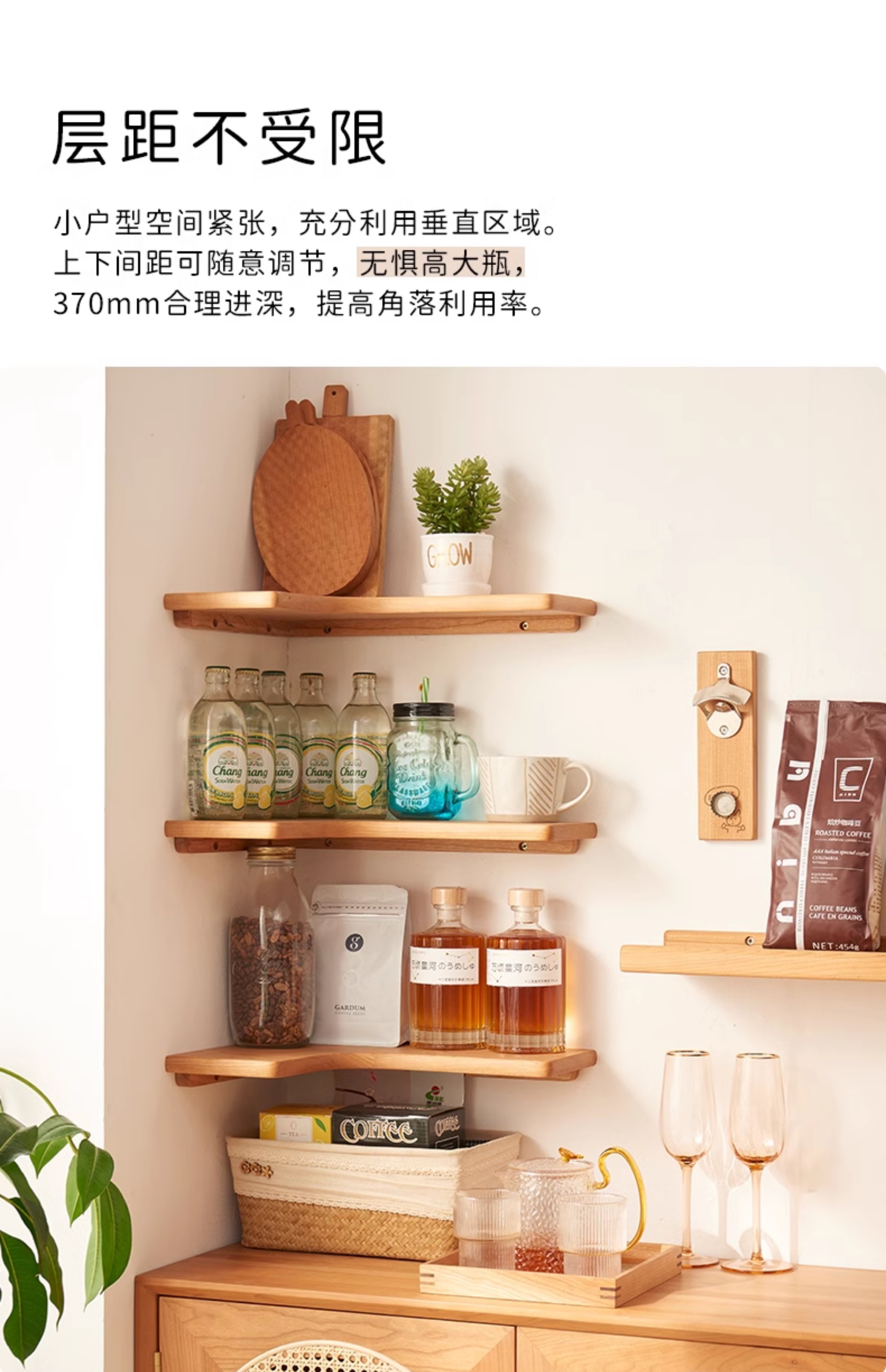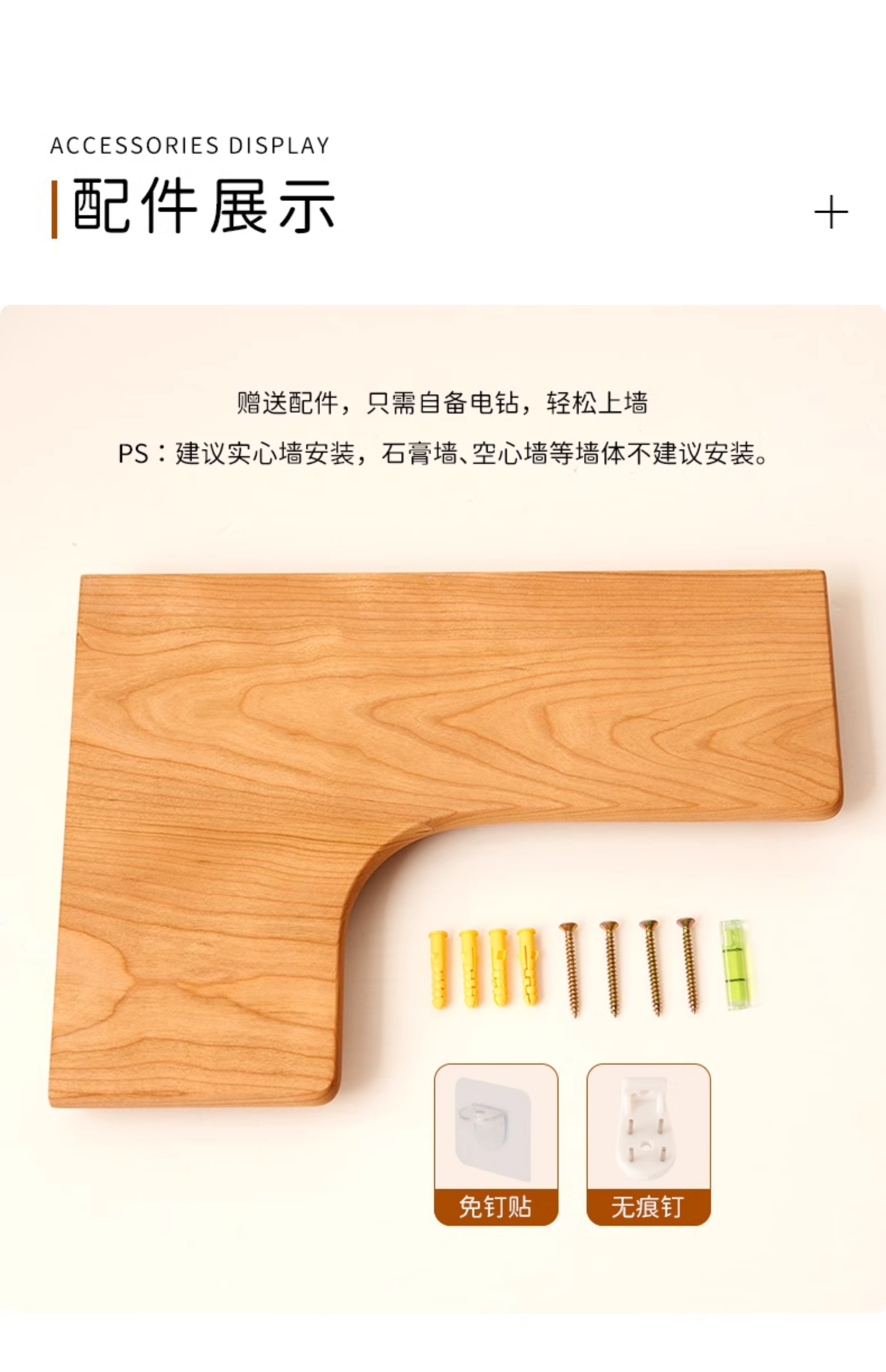 Zhixinmuwang solid wood corner shelf storage rack cherry wood punch-free bedroom corner shelf study wall tripod bookshelf corner shelf short left and long right, single layer, 390mm