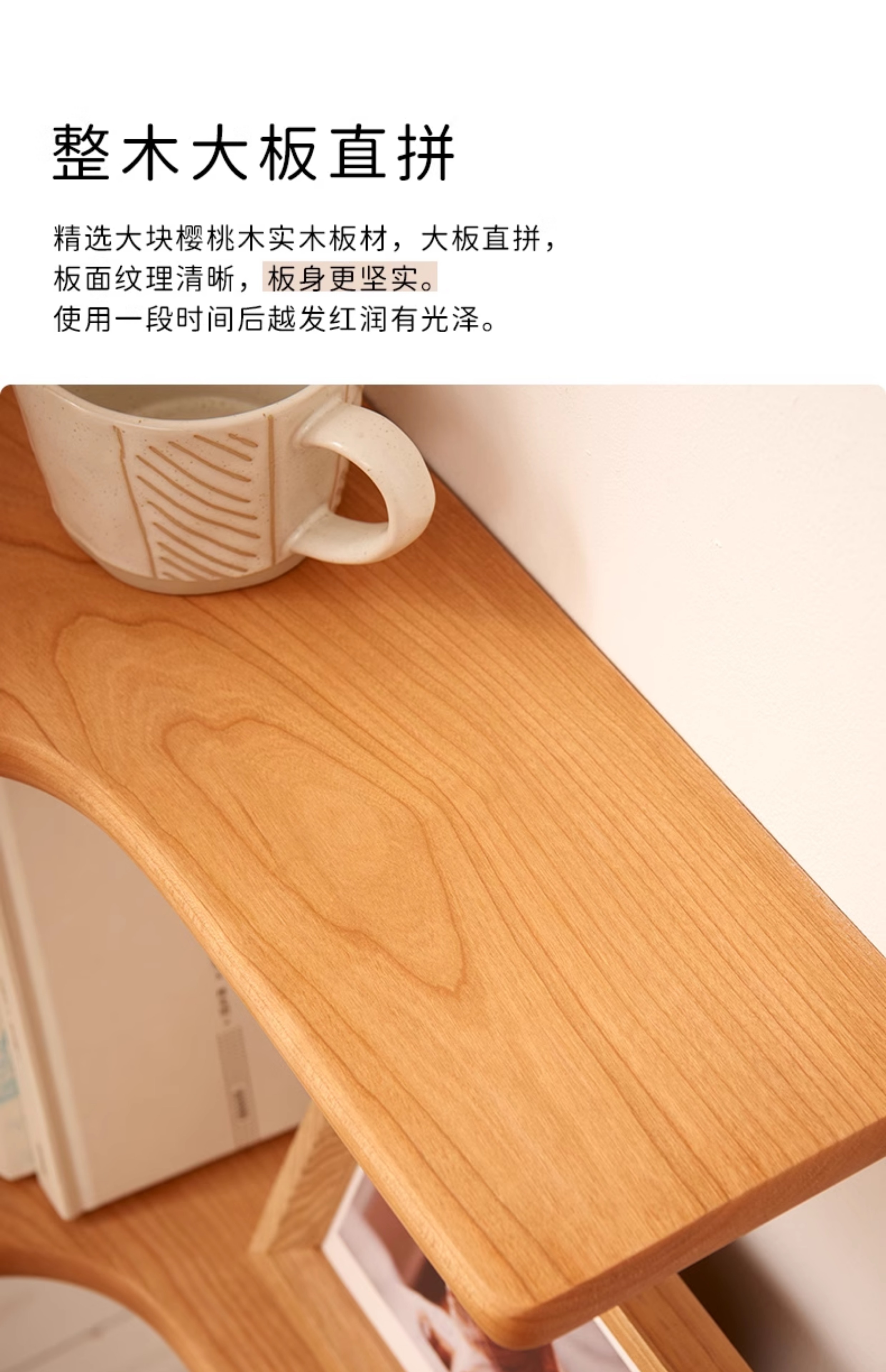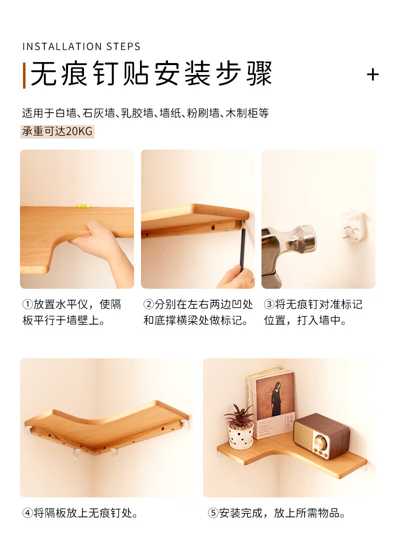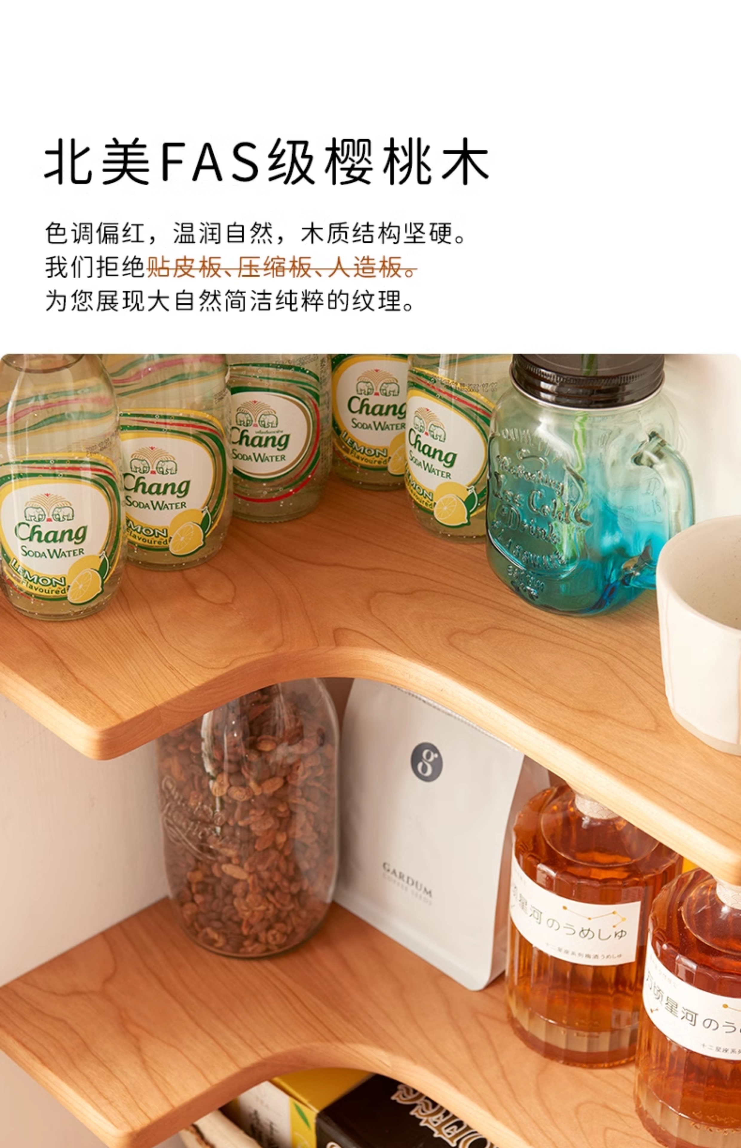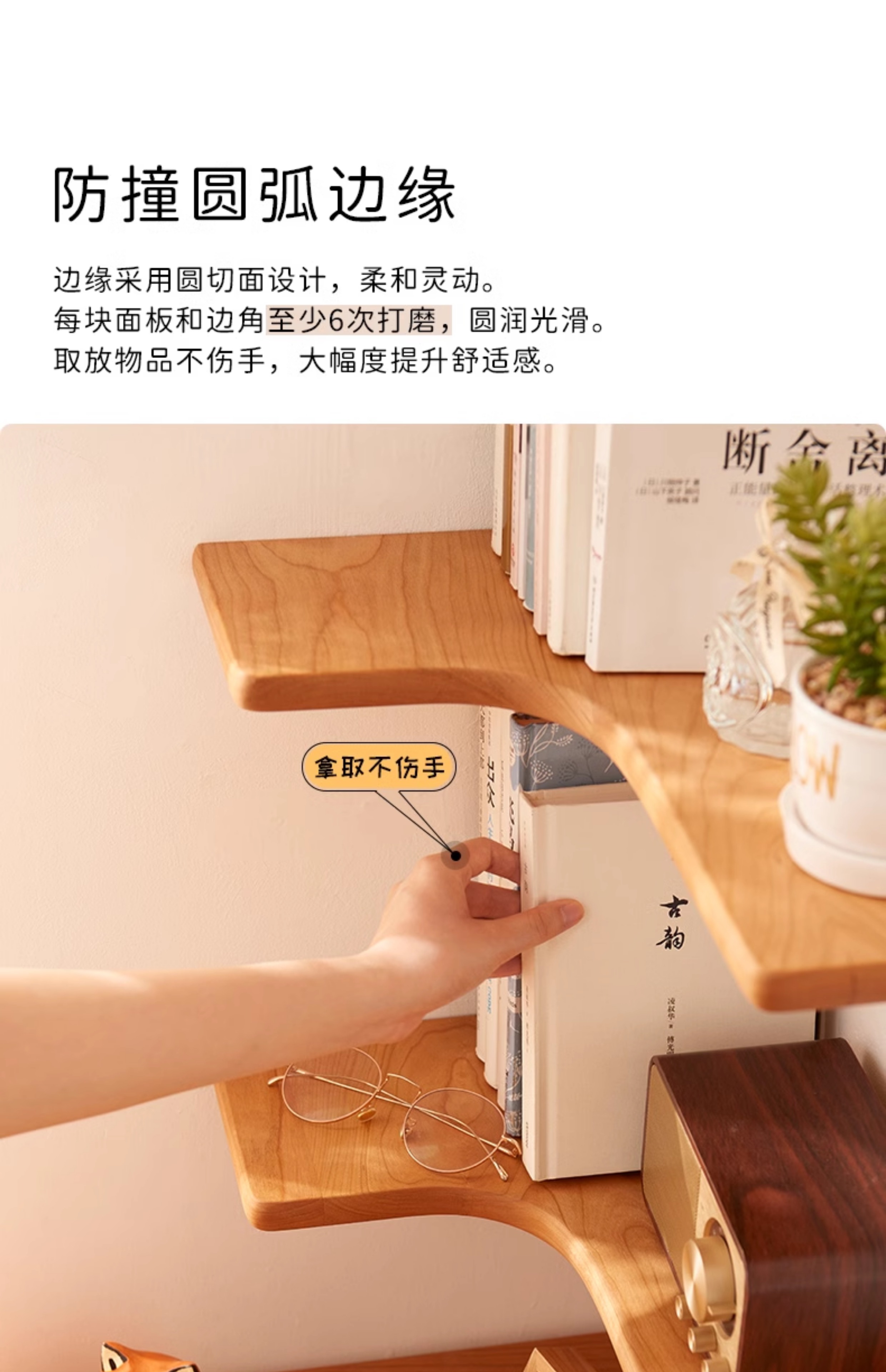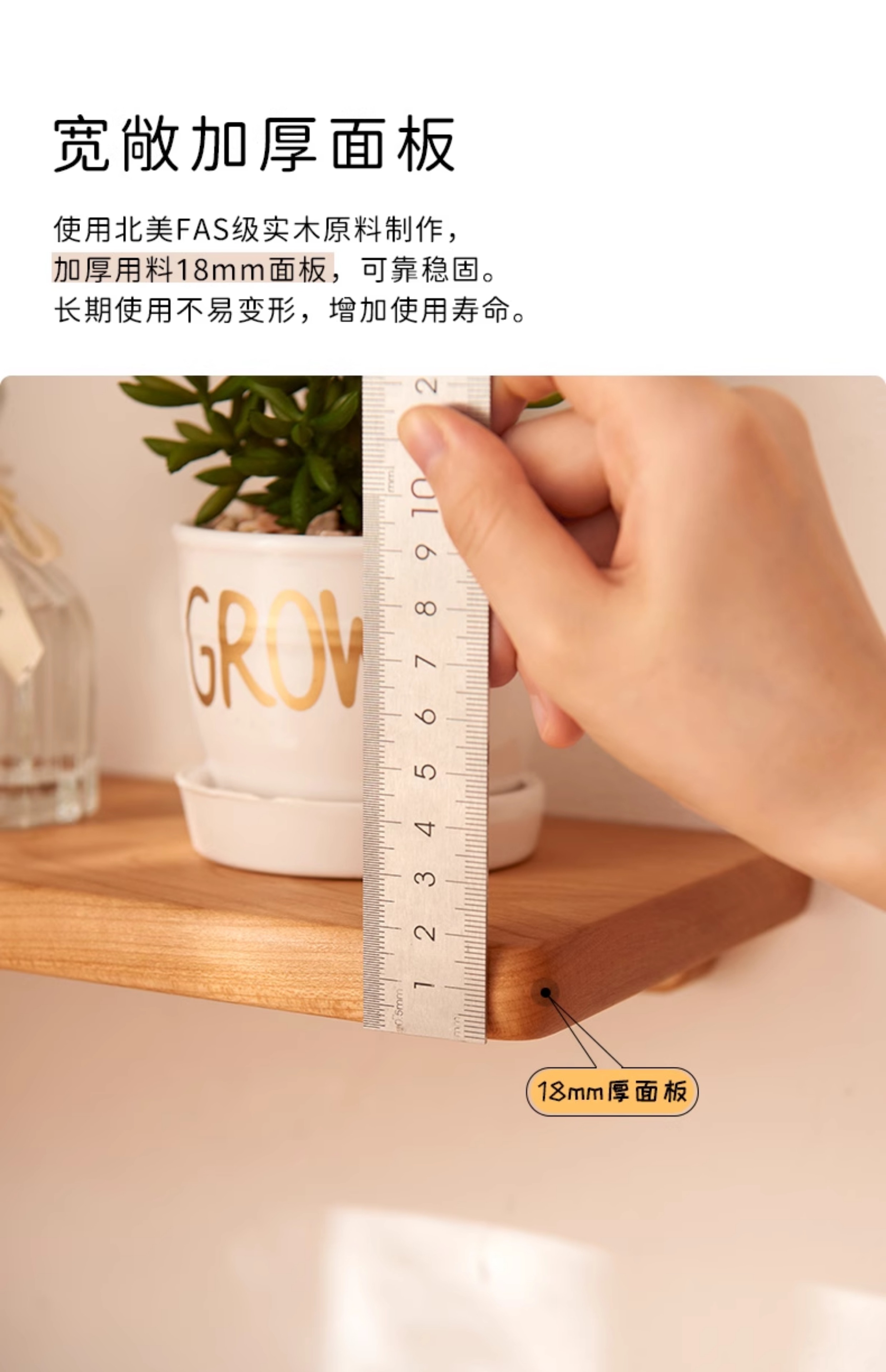 Zhixinmuwang solid wood corner shelf storage rack cherry wood punch-free bedroom corner shelf study wall tripod bookshelf corner shelf short left and long right, single layer, 390mm