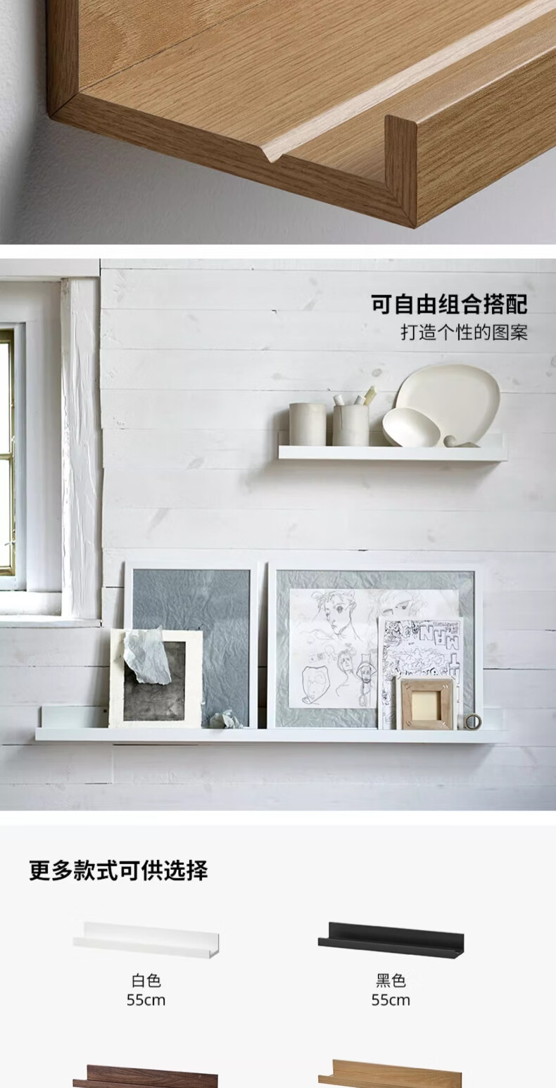 IKEA (IKEA) MOSSLANDA Moranda wall-mounted picture rack shelf storage rack saves space and can be freely matched. Wall-mounted picture rack white