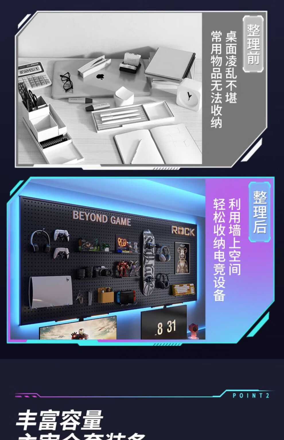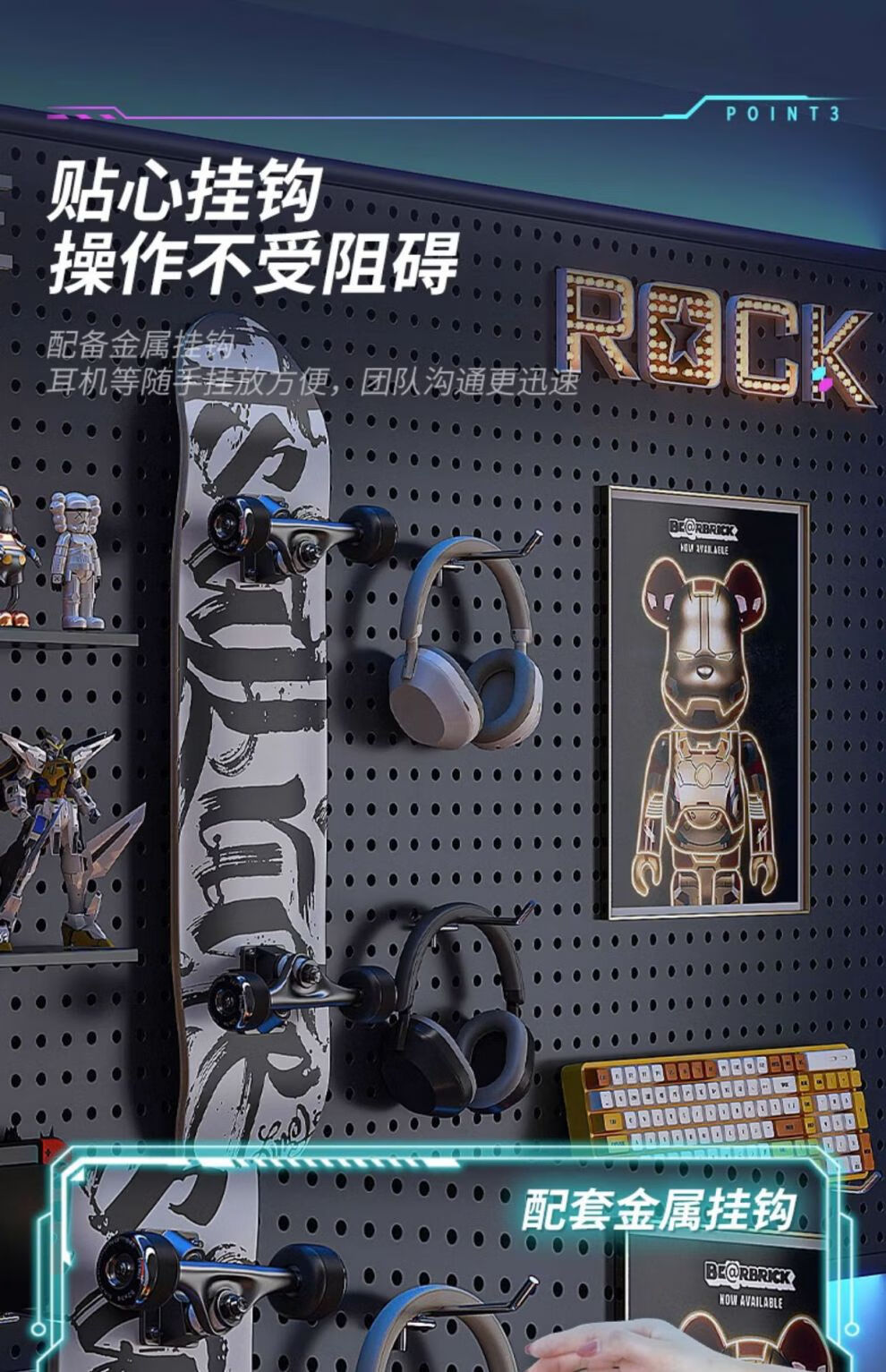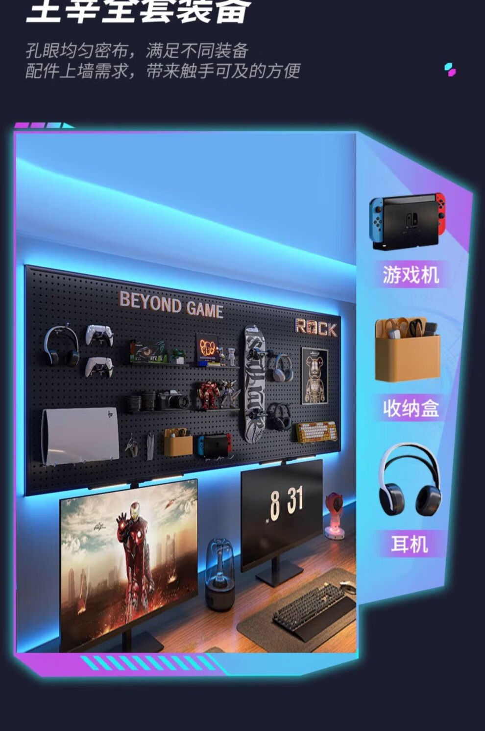 E-sports room hole board black wall shelf above the study room computer desk wall hanging board storage iron decoration with frame thickened version 40 60cm - white comes with 10 hooks, versatile matching, free combination