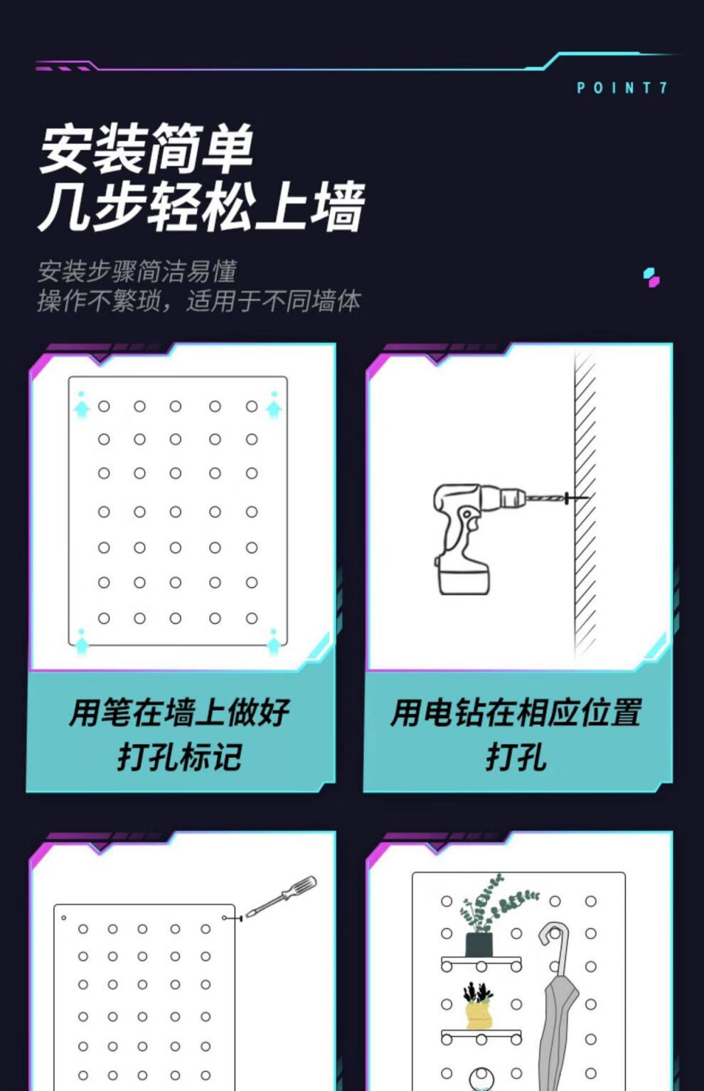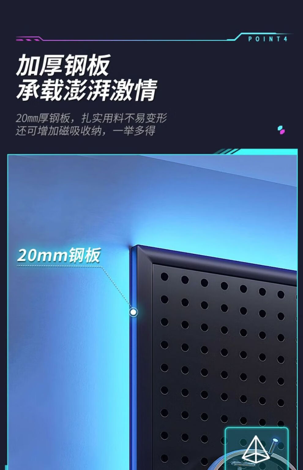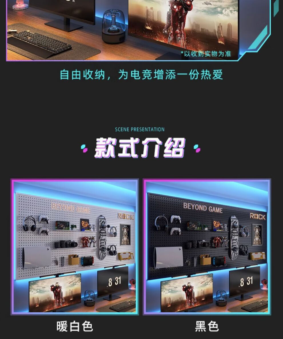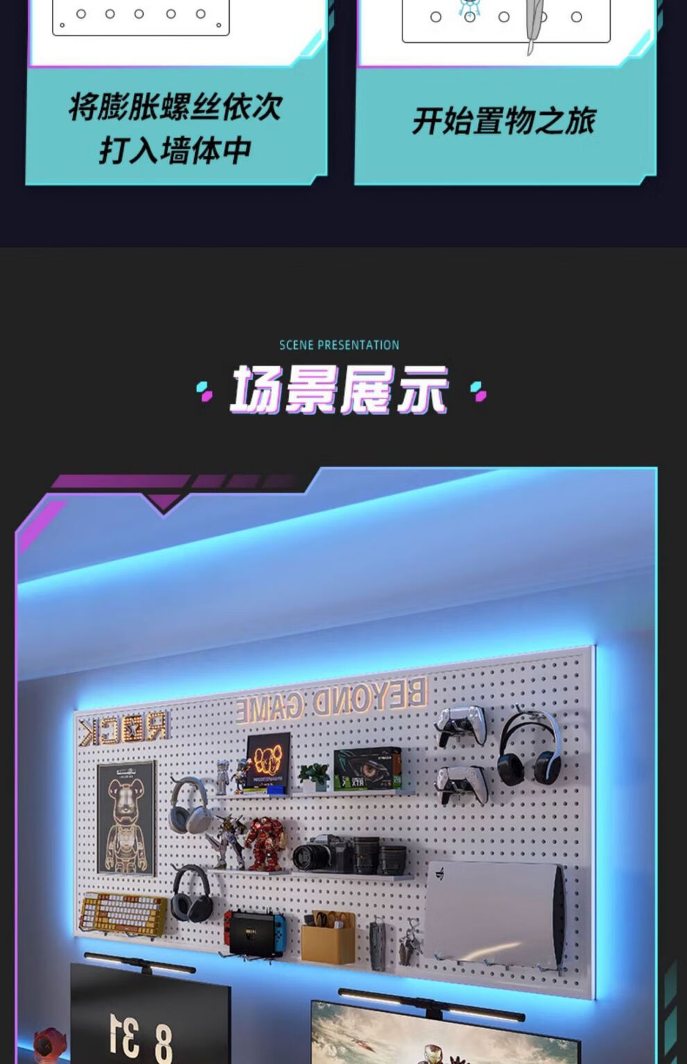 E-sports room hole board black wall shelf above the study room computer desk wall hanging board storage iron decoration with frame thickened version 40 60cm - white comes with 10 hooks, versatile matching, free combination
