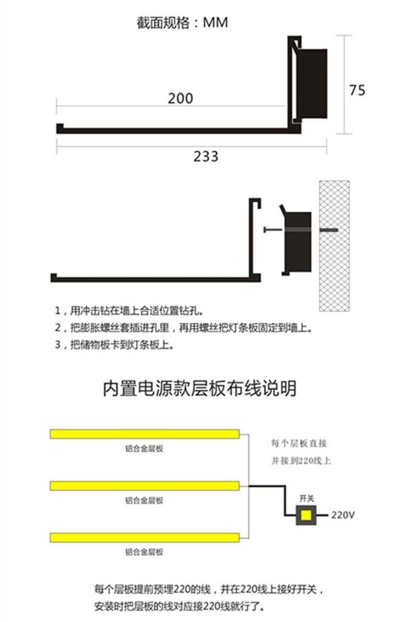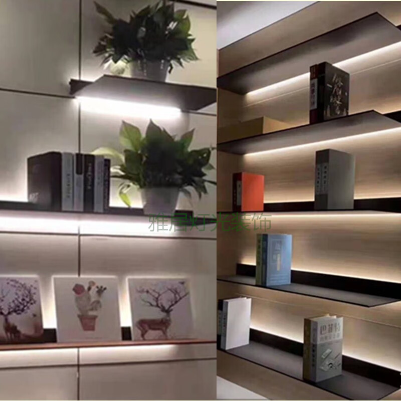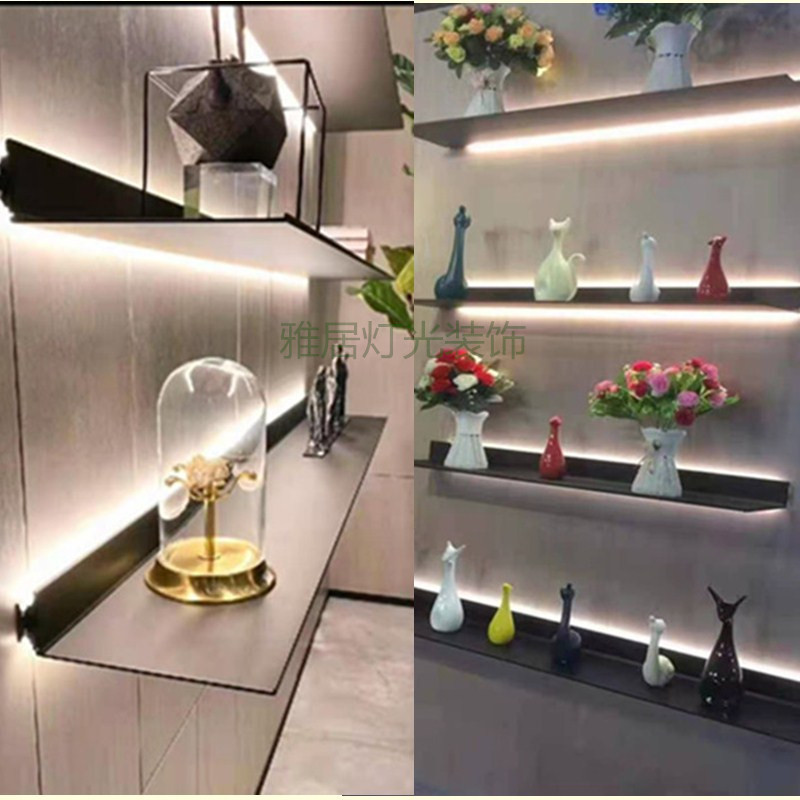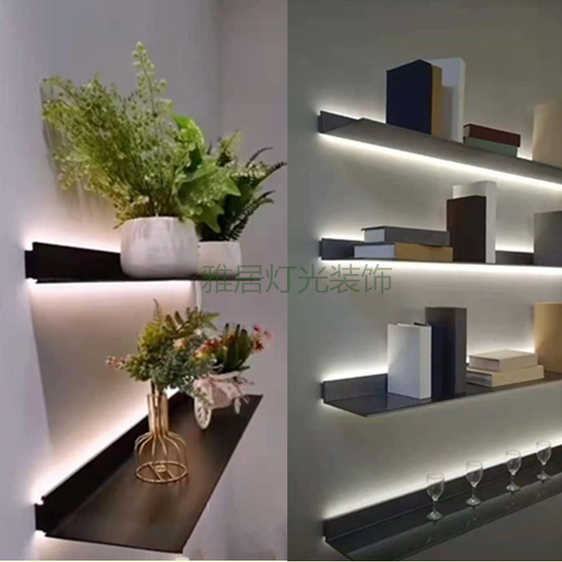 Creative wall rack aluminum alloy LED light luminous shelf storage rack hanging wall creative with light built-in book and wine rack gold black 800MM external power supply