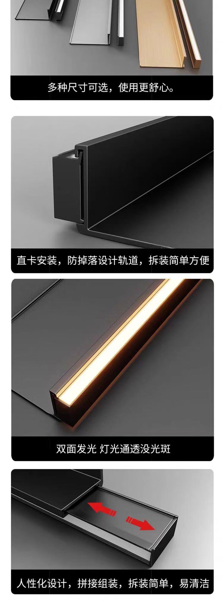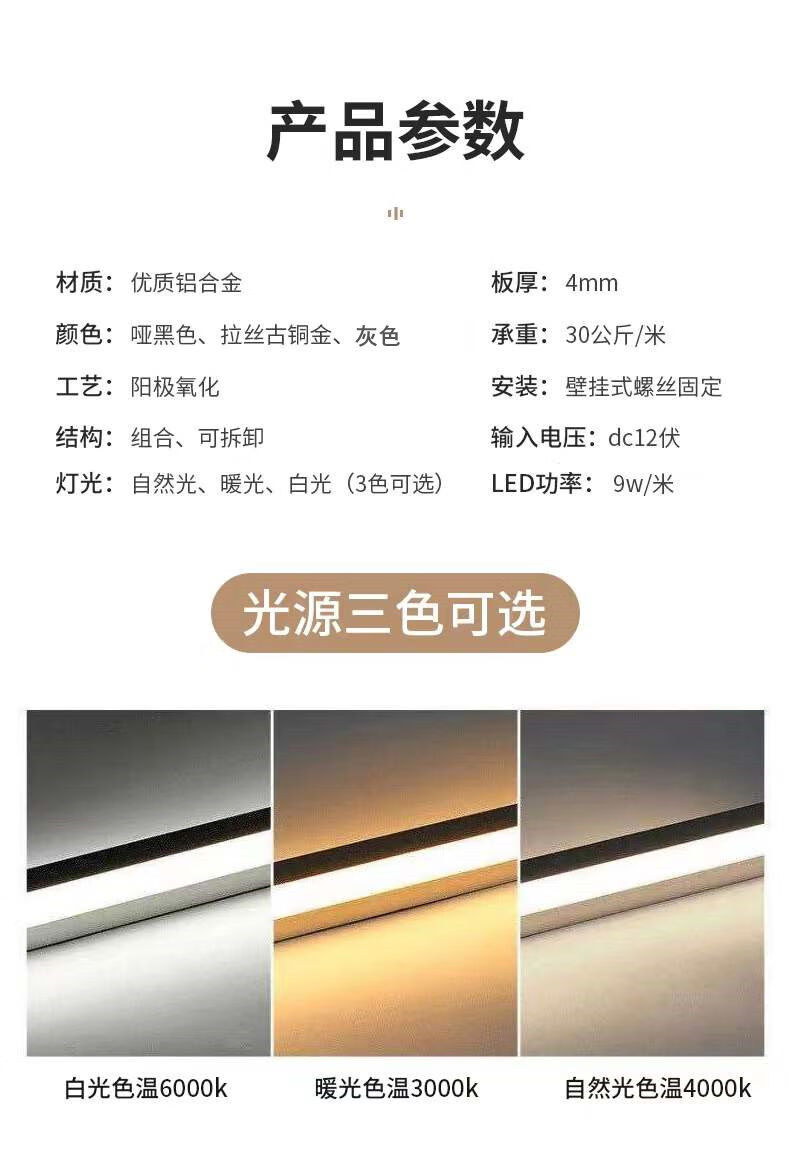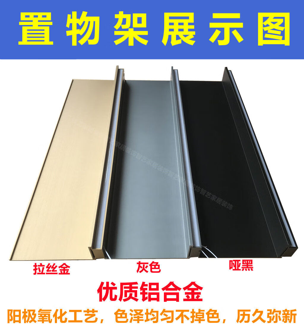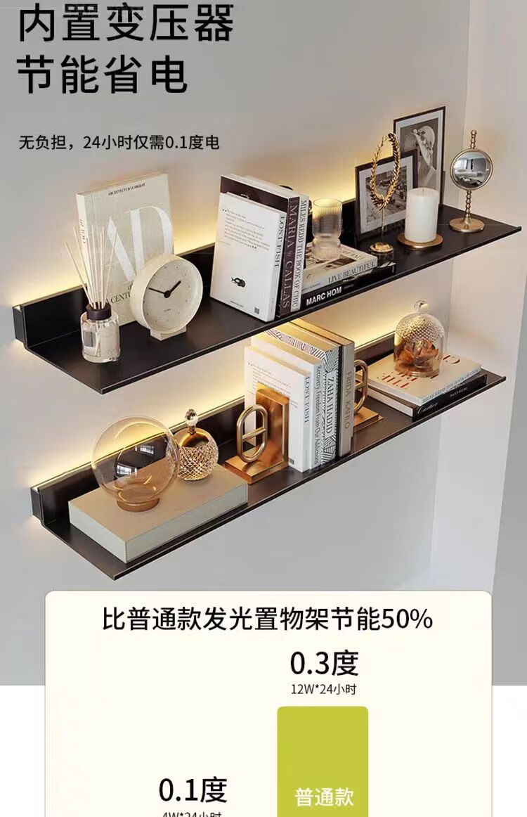 Yusenyi aluminum alloy storage rack with built-in light-emitting LED with light partition shelf wall-mounted metal storage board simple bookshelf matte black length 180m built-in transformer 00