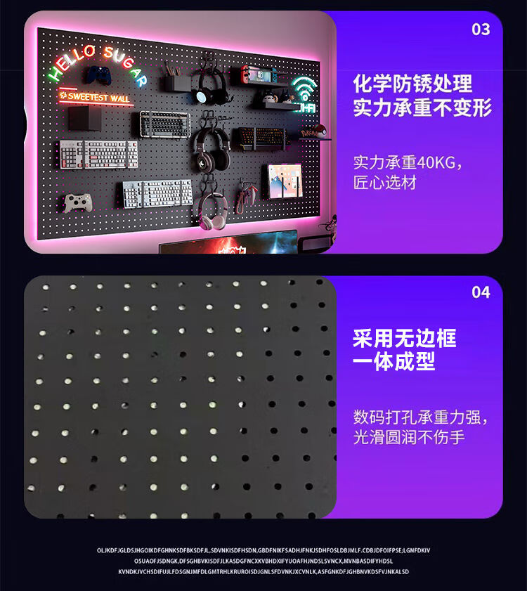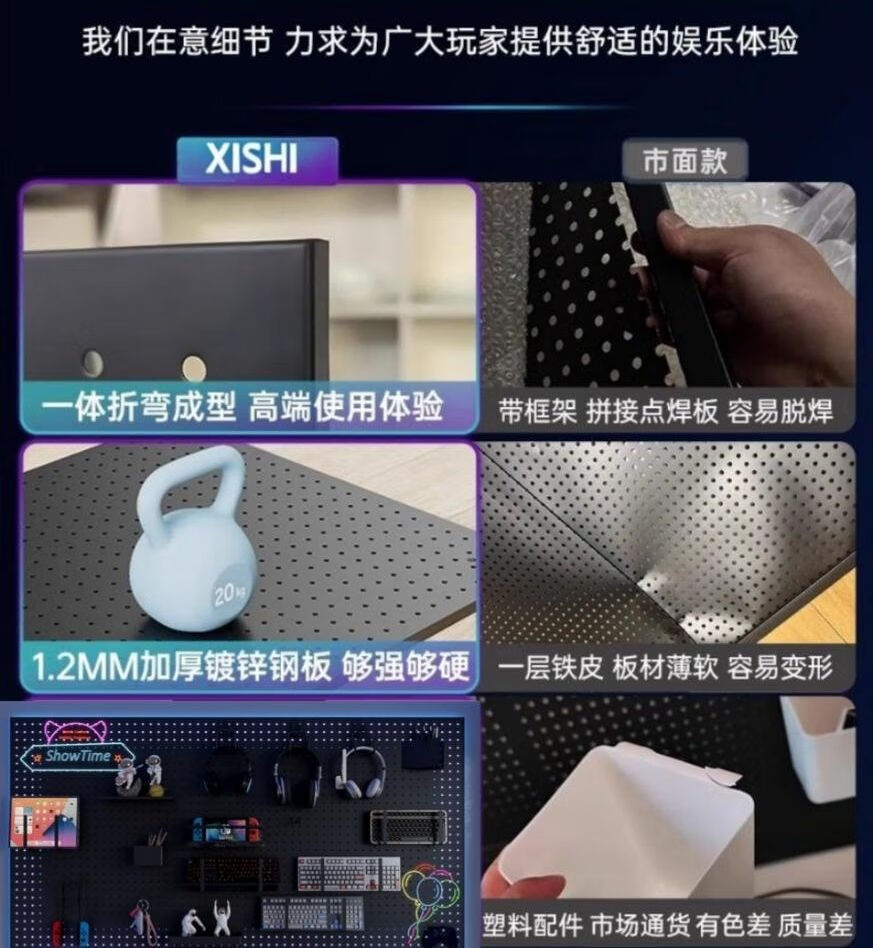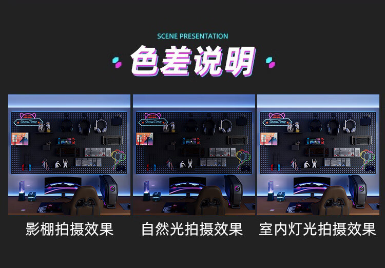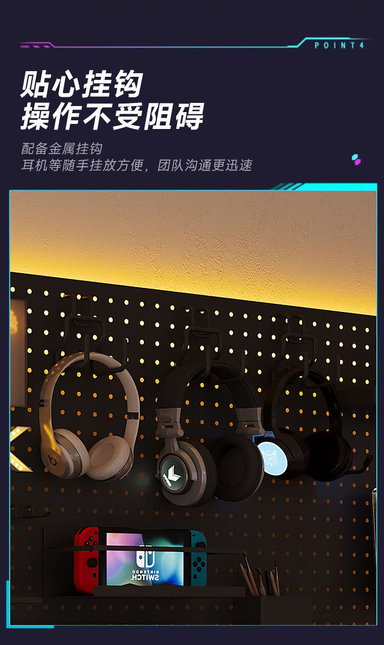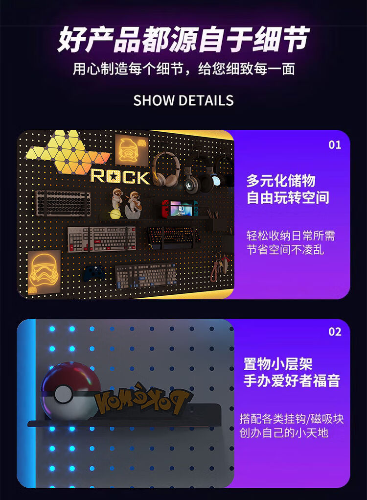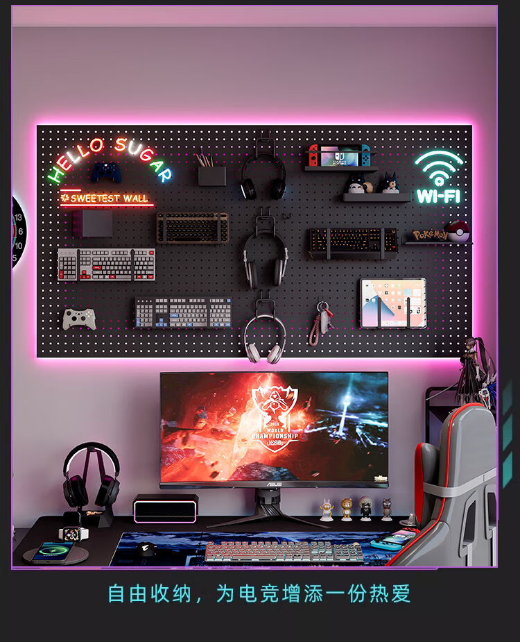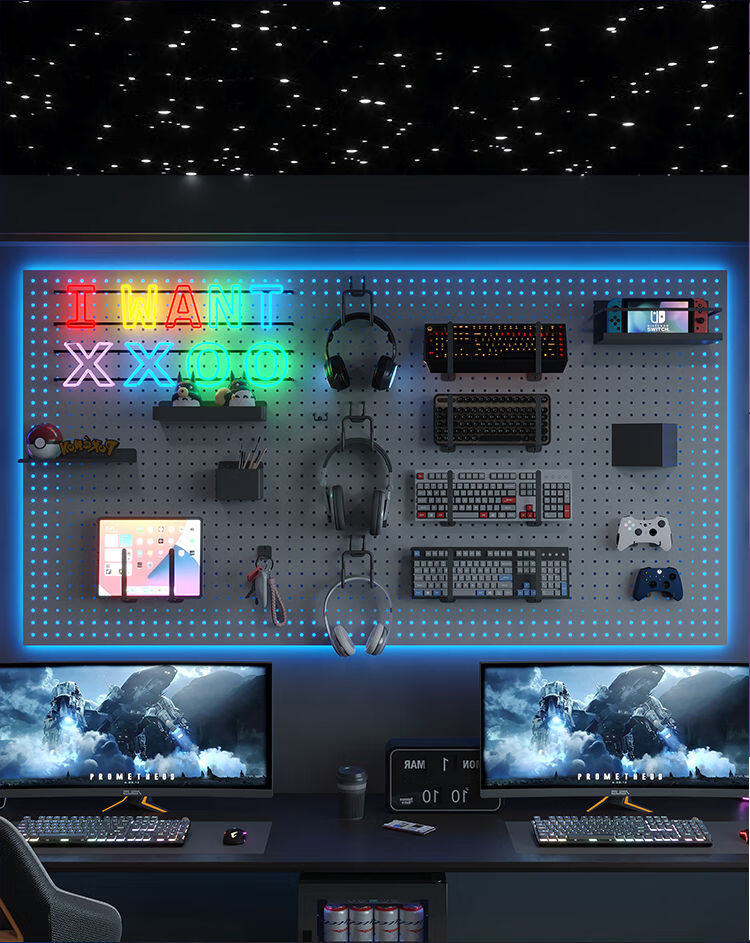 Shantou Lincun e-sports room metal hole plate storage rack wall computer desk wall storage atmosphere light with decorative display rack RGB atmosphere light matte black 5080c set