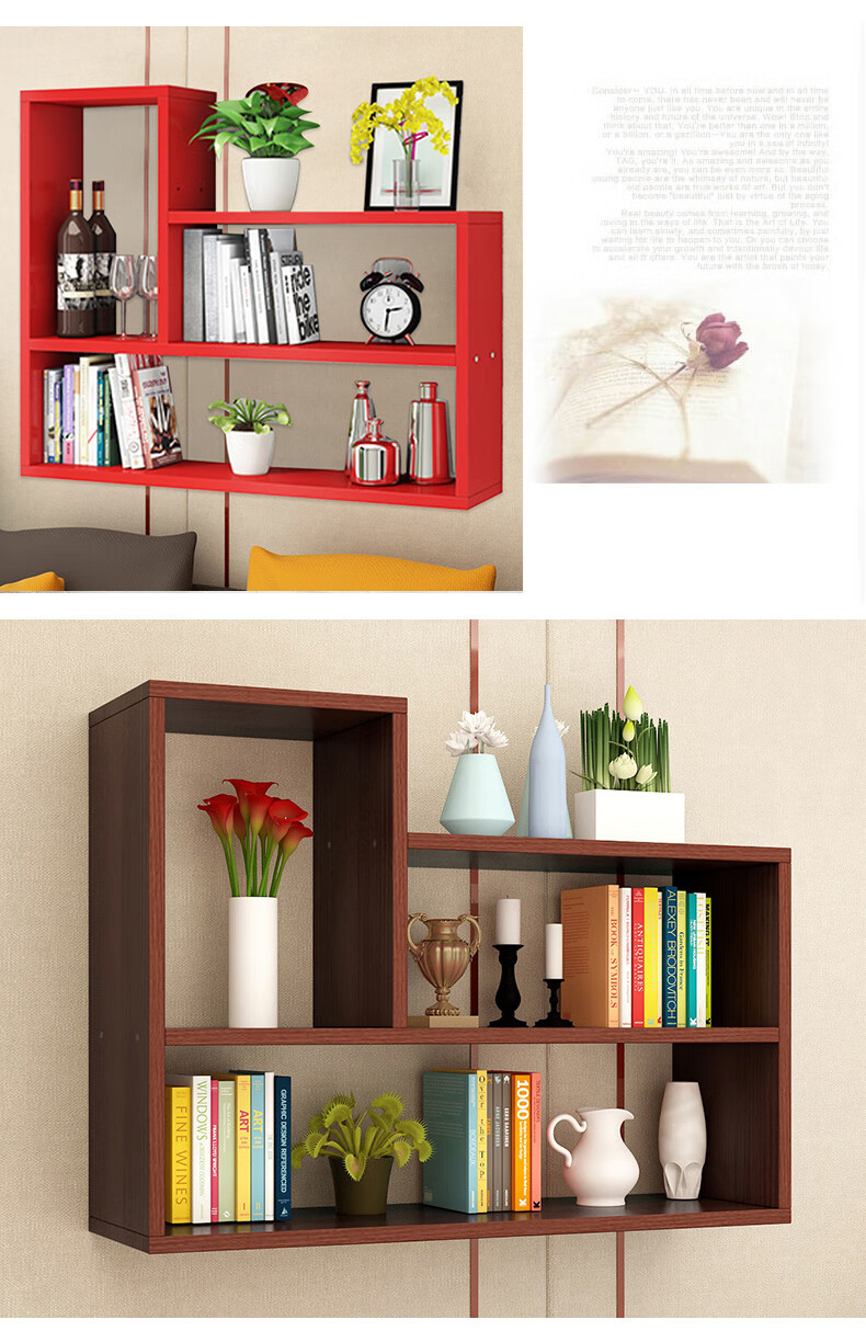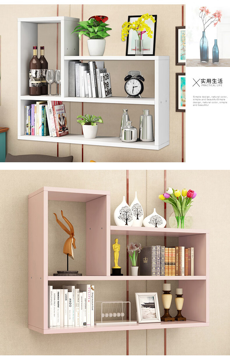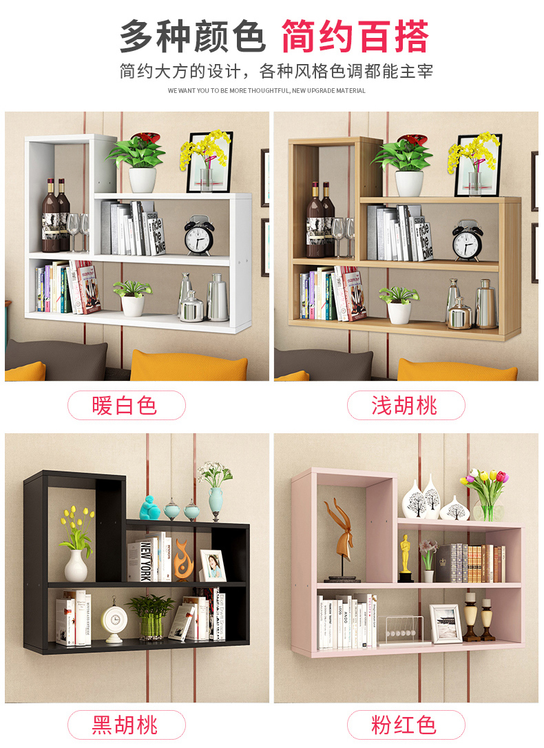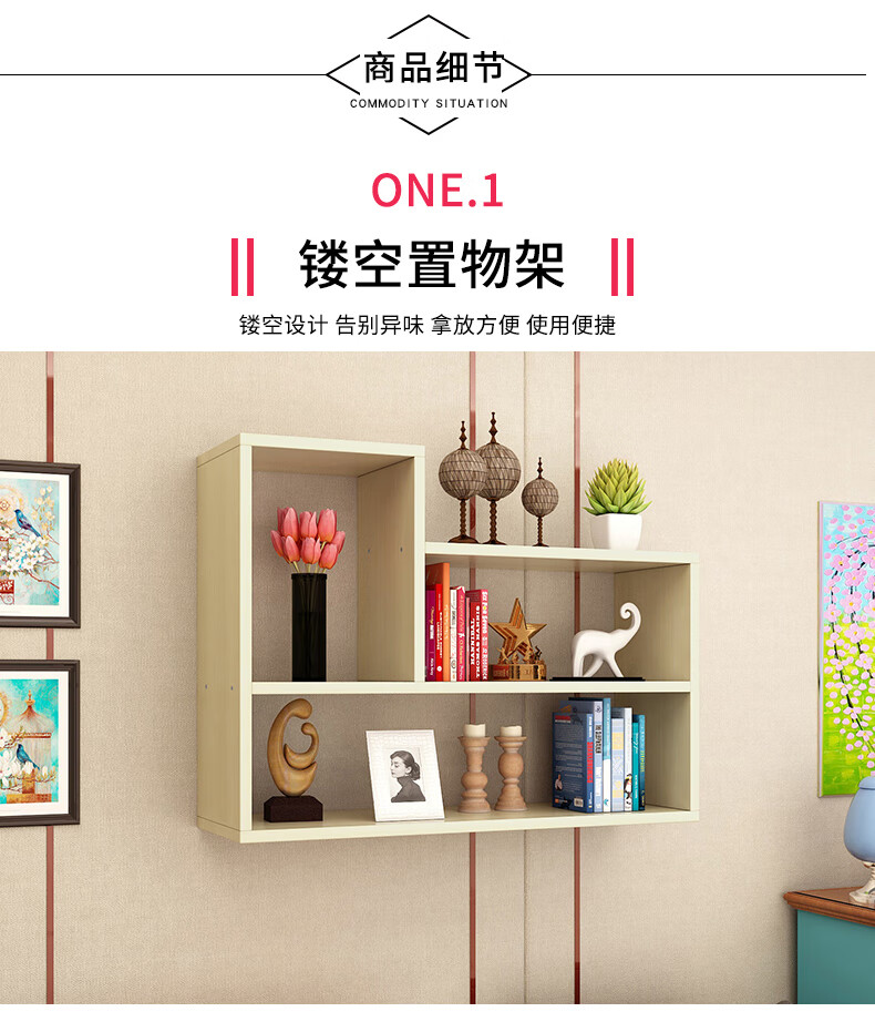Yimei Tianhe wall storage rack without punching wall-mounted storage cabinet bedroom wall closet creative grid wall cabinet home bookshelf extended version length 80 width 15 height 60 teak color