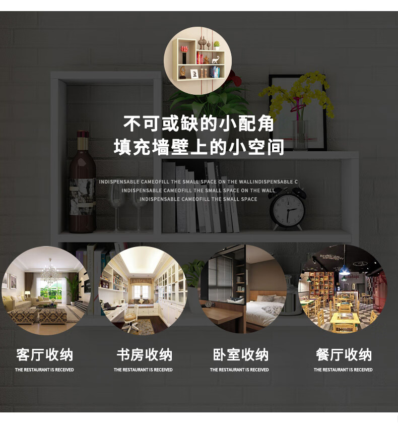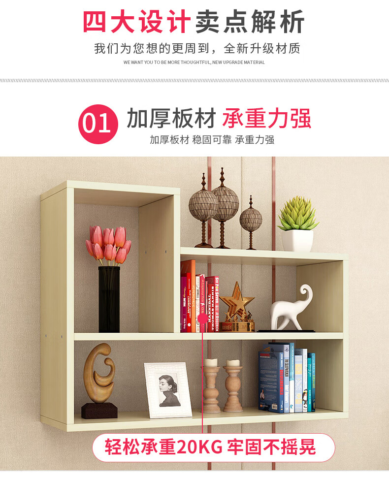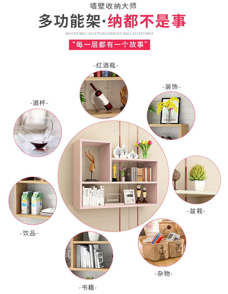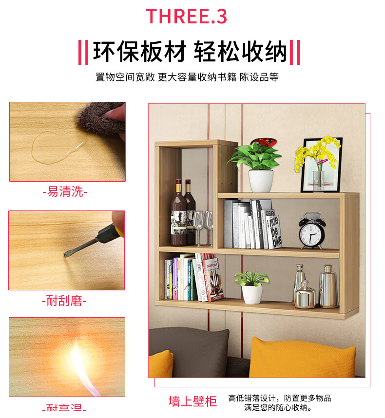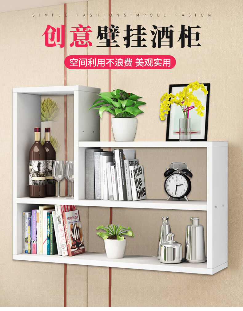 Yimei Tianhe wall storage rack without punching wall-mounted storage cabinet bedroom wall closet creative grid wall cabinet home bookshelf extended version length 80 width 15 height 60 teak color