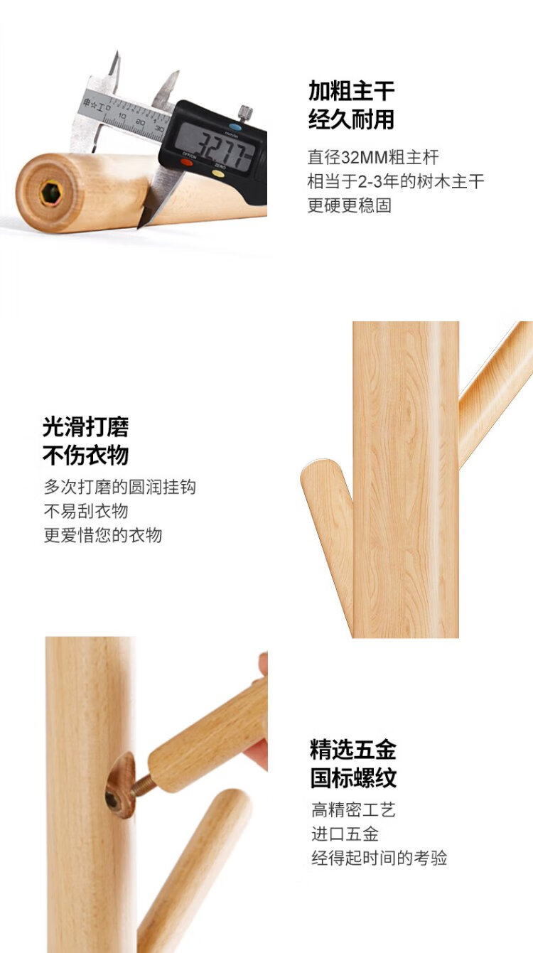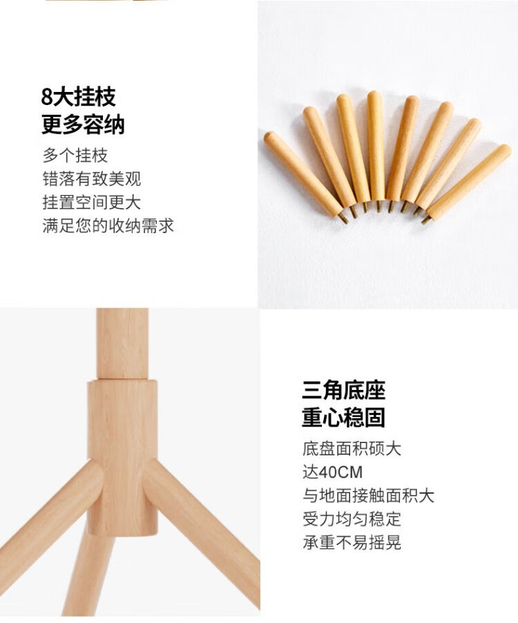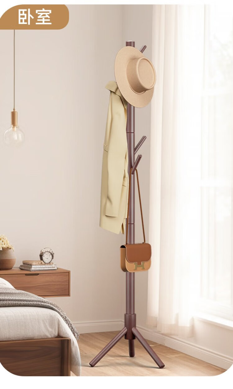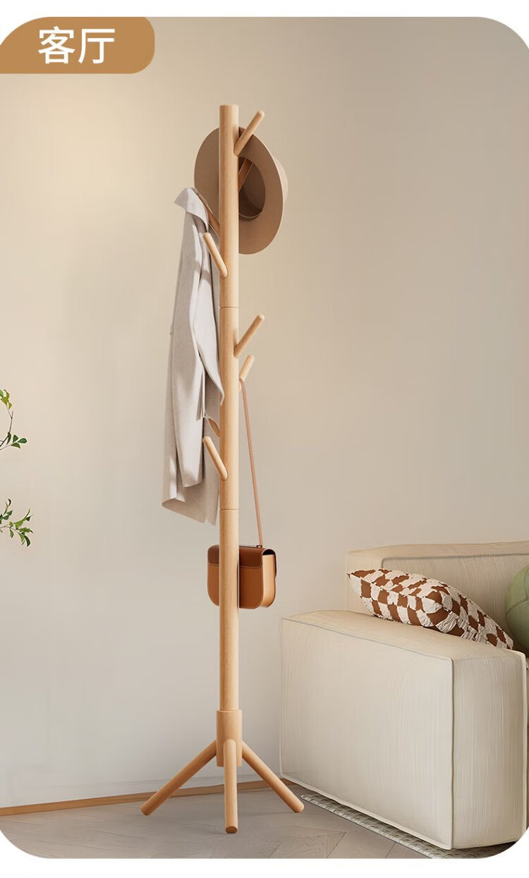 Wenna coat rack, floor-standing clothes hanger, solid wood clothes hanger, balcony bedroom clothes rack, solid wood color three-legged model 3176