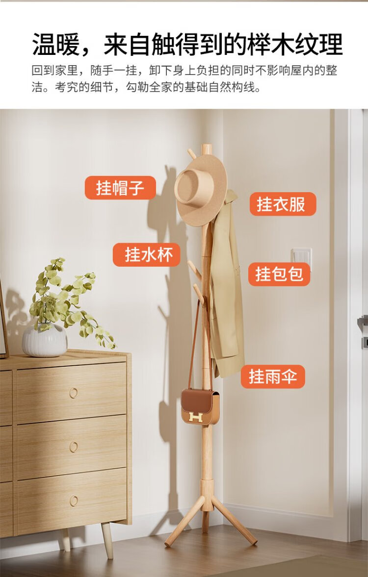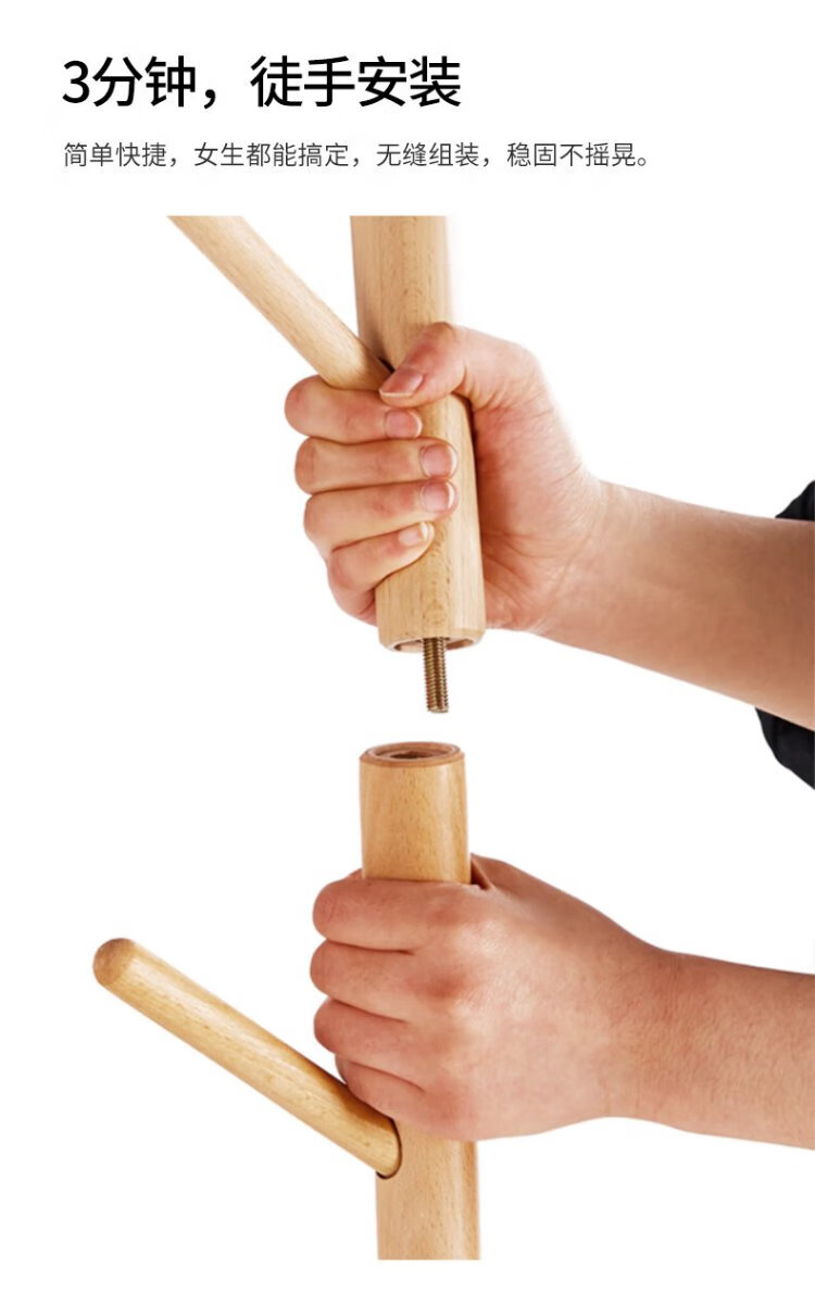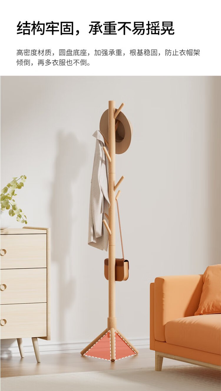 Wenna coat rack, floor-standing clothes hanger, solid wood clothes hanger, balcony bedroom clothes rack, solid wood color three-legged model 3176