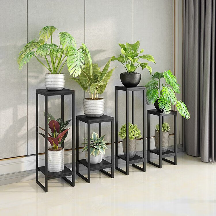 Shuaili Iron Flower Stand Balcony Outdoor Flower Pot Stand Double-layer Storage Rack Pothos Bonsai Stand SL8228Z White