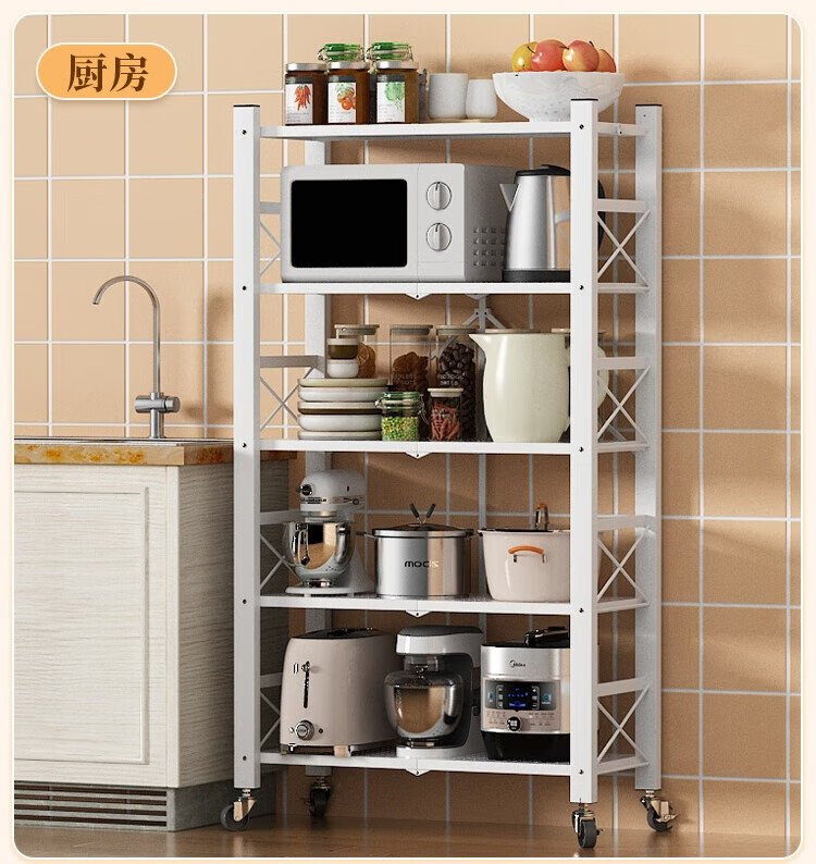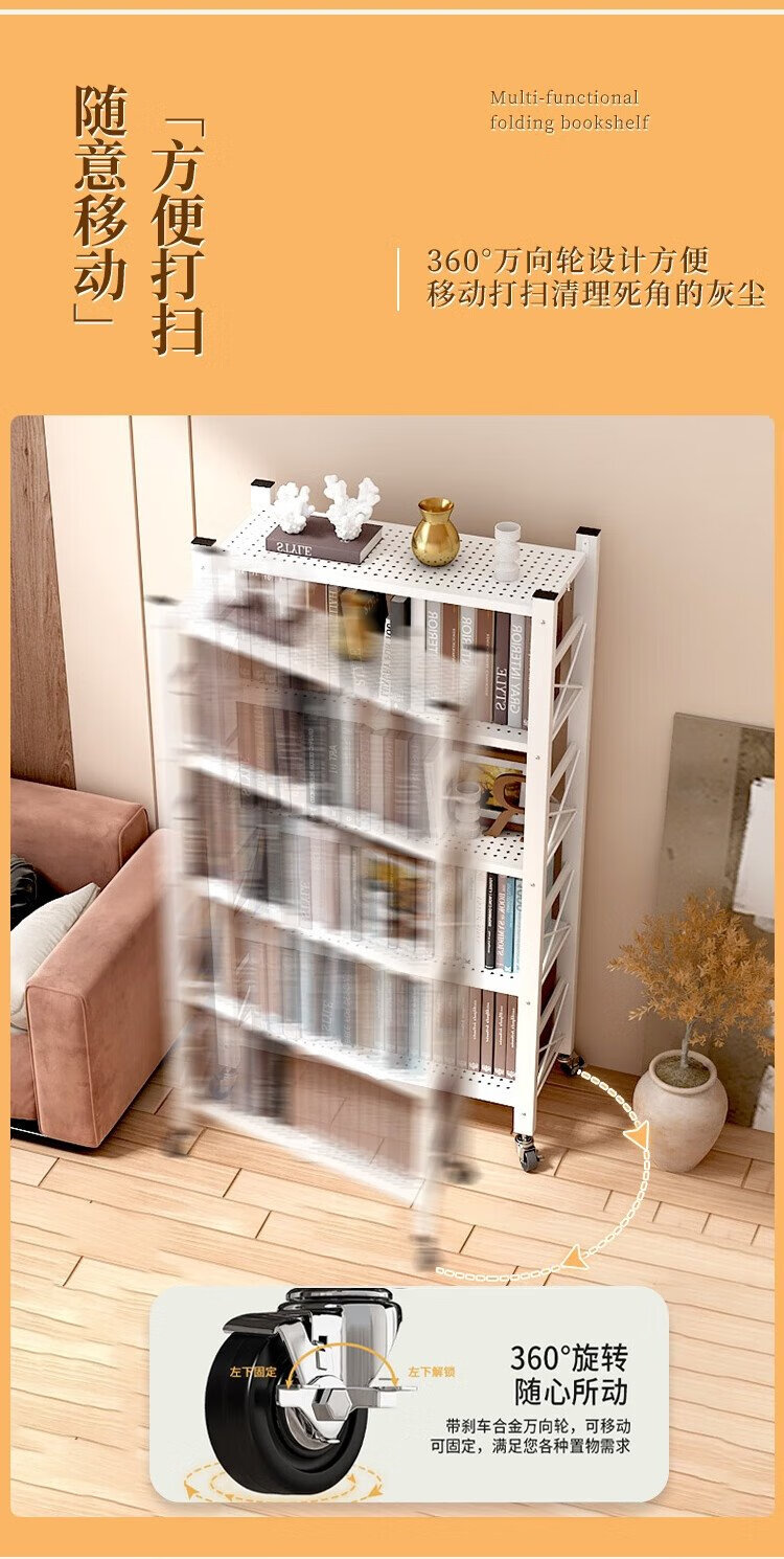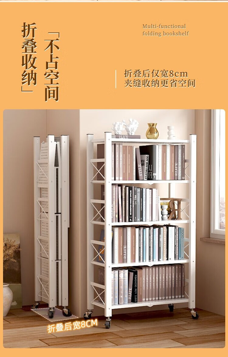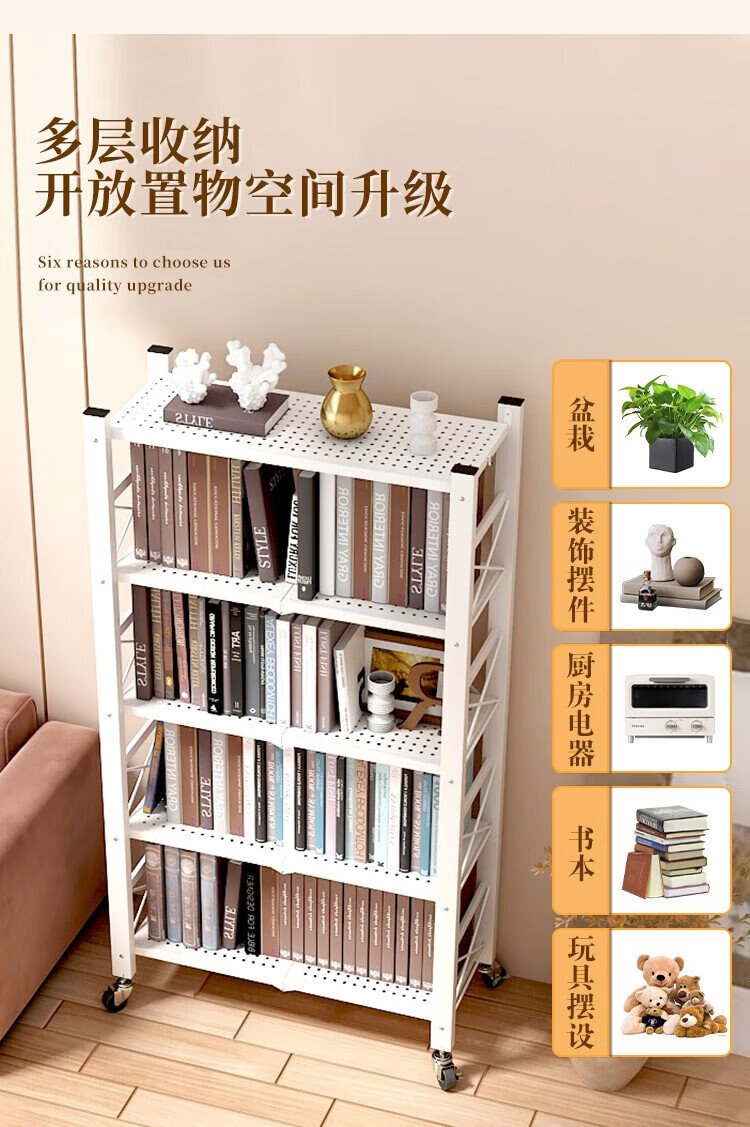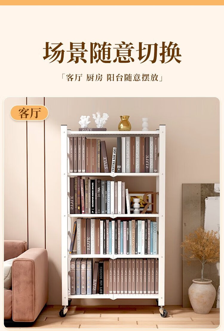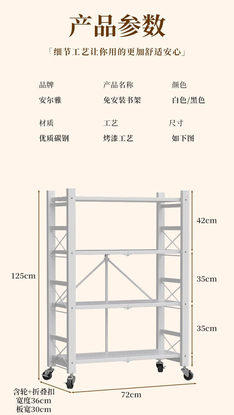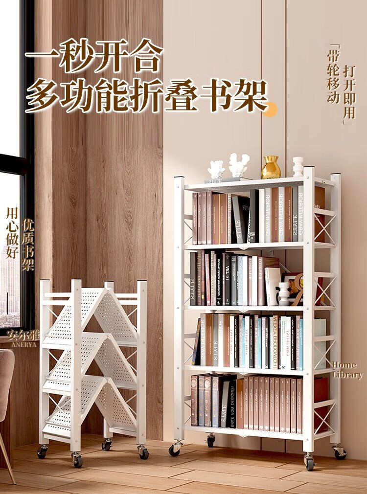 Anya simple bookshelf floor iron removable folding high-security device rack storage rack five-layer carbon steel white